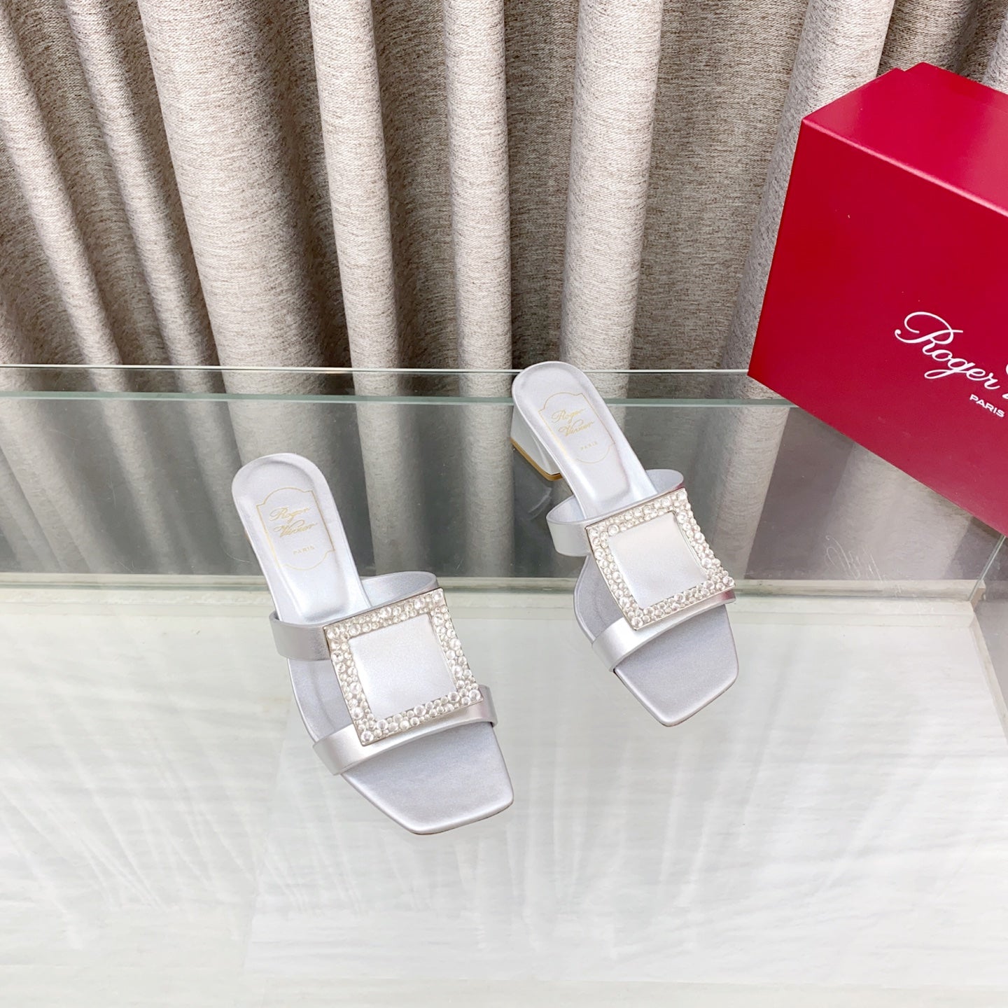 Viv 25 Diamond Mid Heel Slides Silver Cowhide 283037