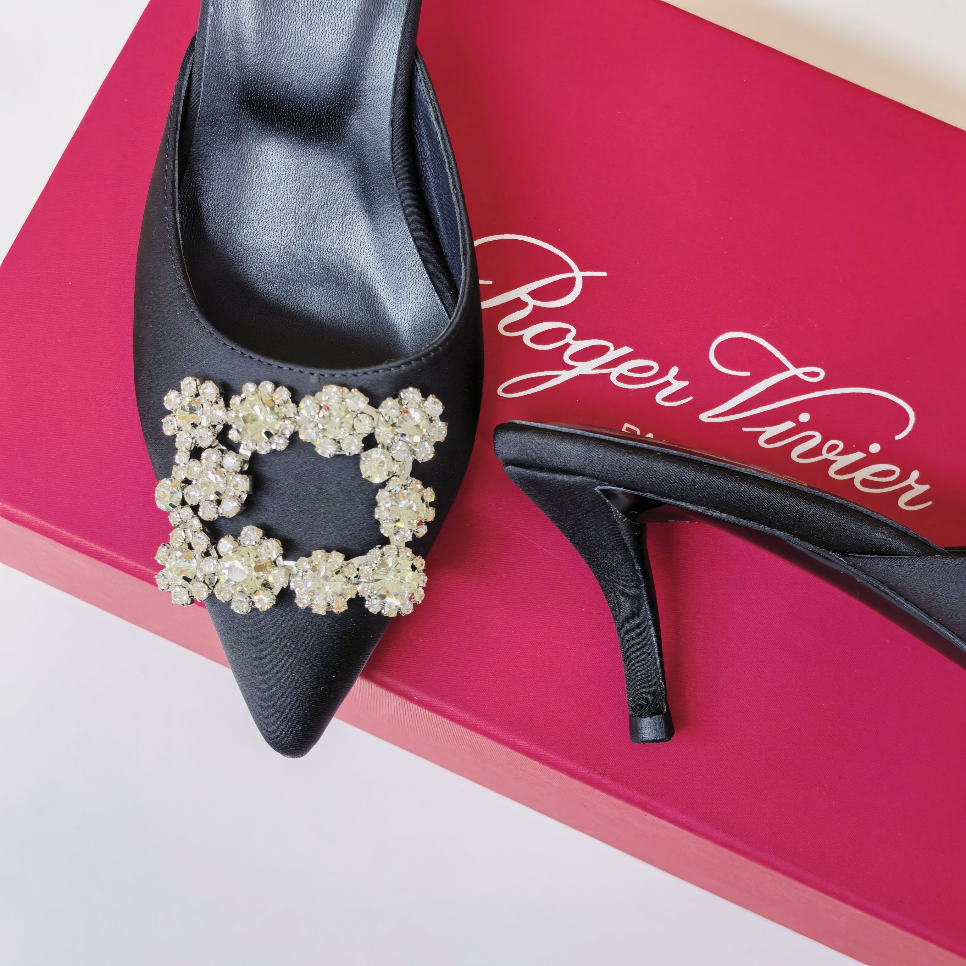 Viv Diamond Mules Black Silk 247394