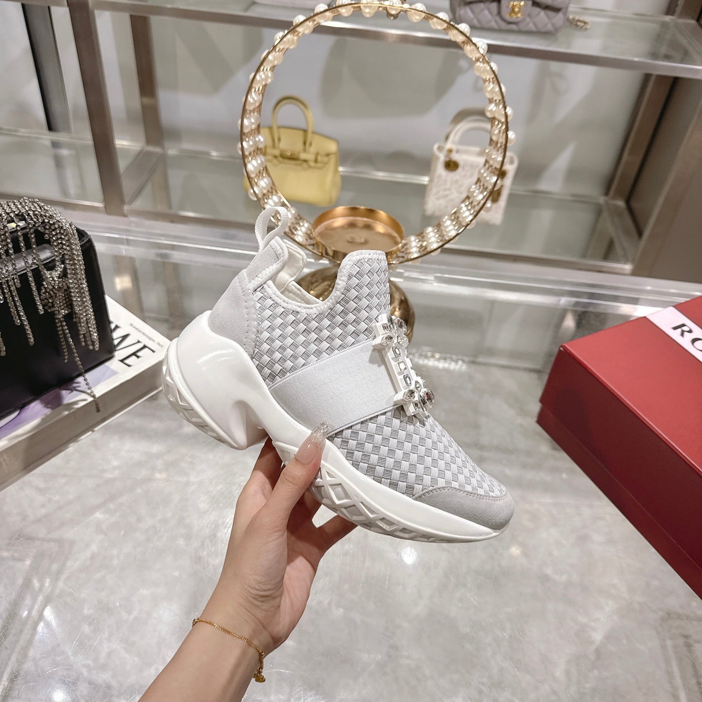 Viv Diamond Sneaker White Custom Woven 262957