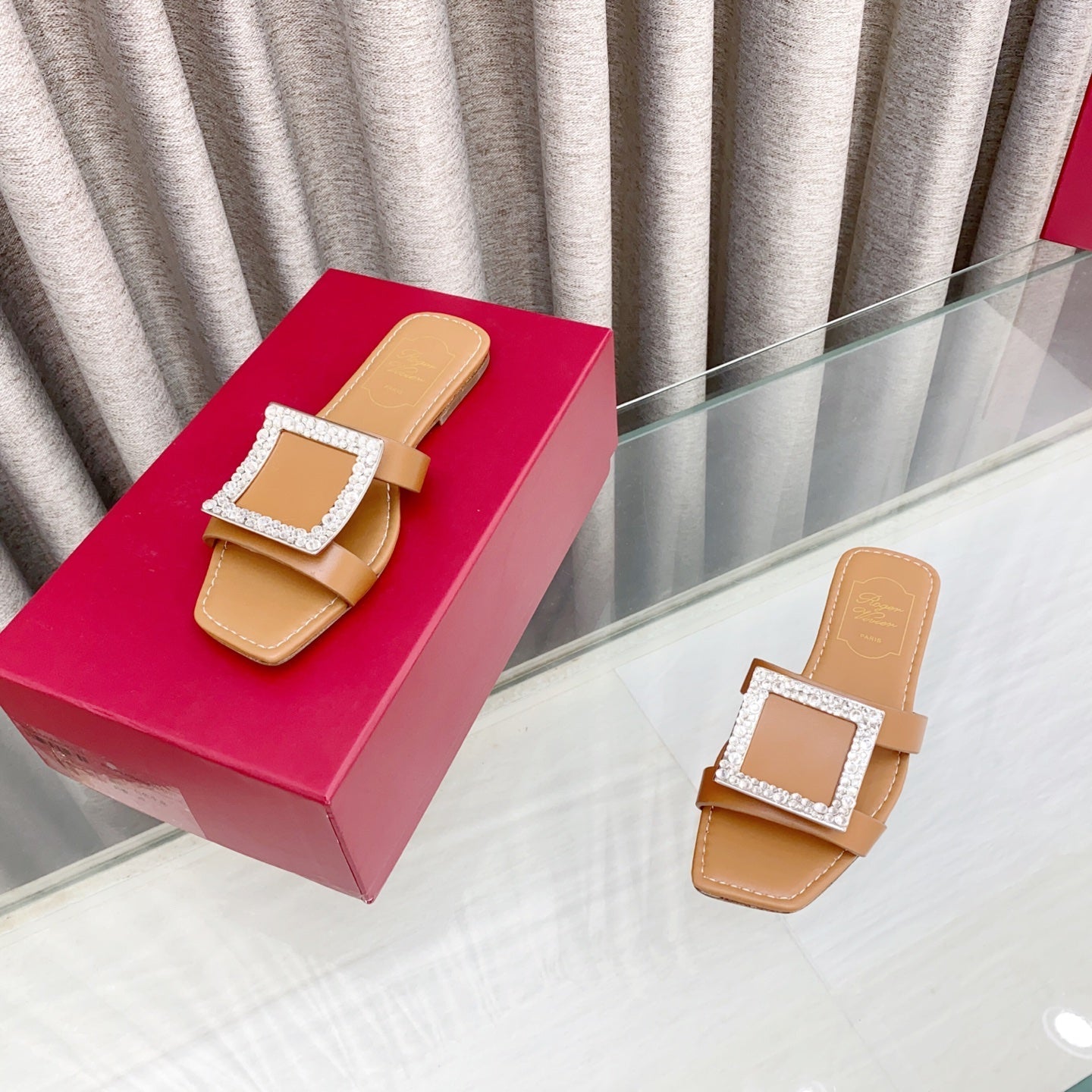 Viv 25 Diamond Flat Slippers Brown Cowhide 283035