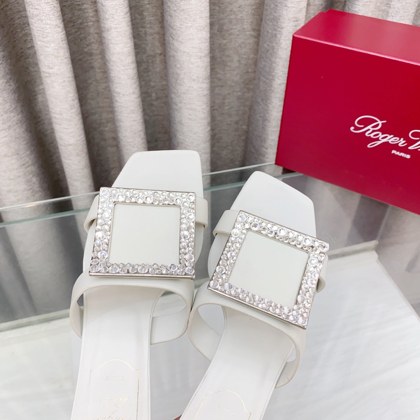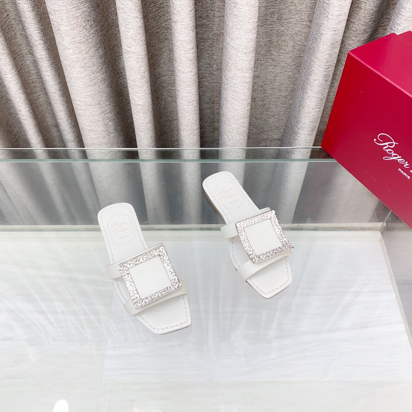 Viv 25 Diamond Flat Slippers White Cowhide 283036