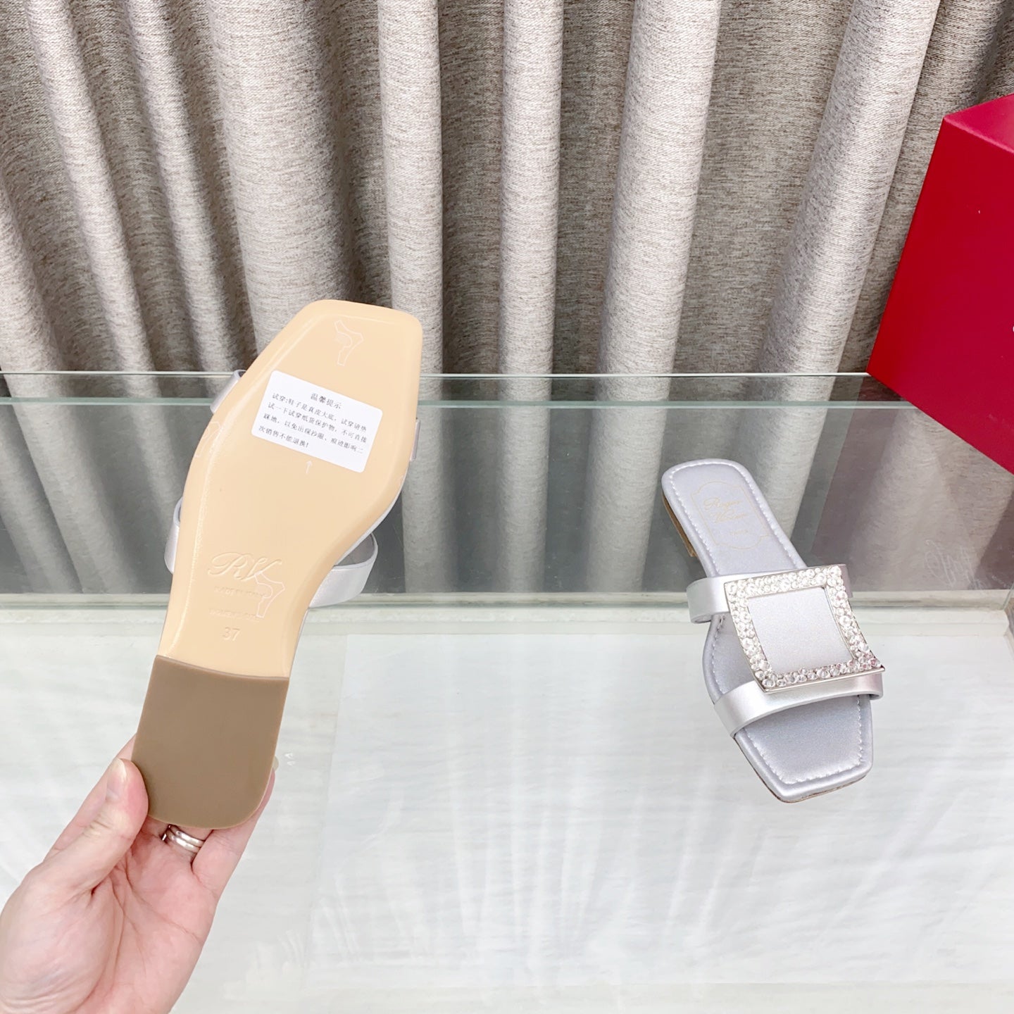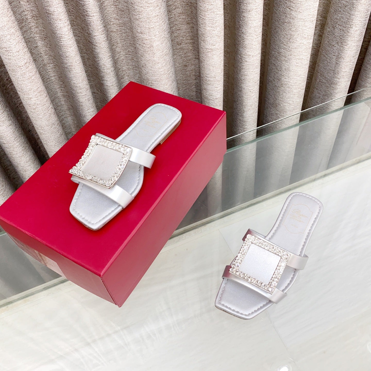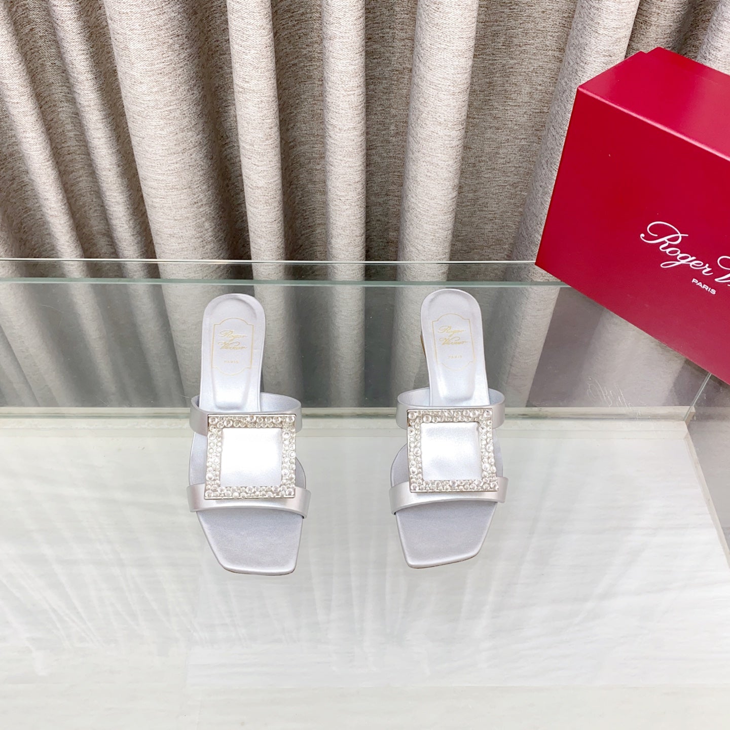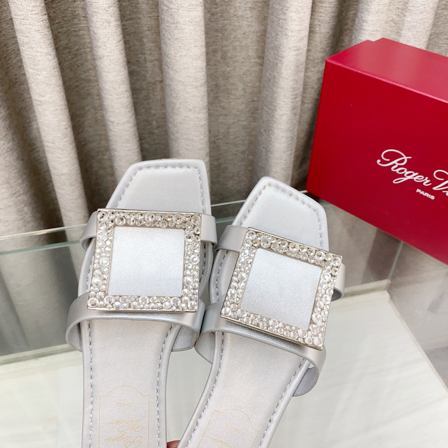Viv 25 Slidy Diamond Slippers Silver PVC Silk Cowhide 259288