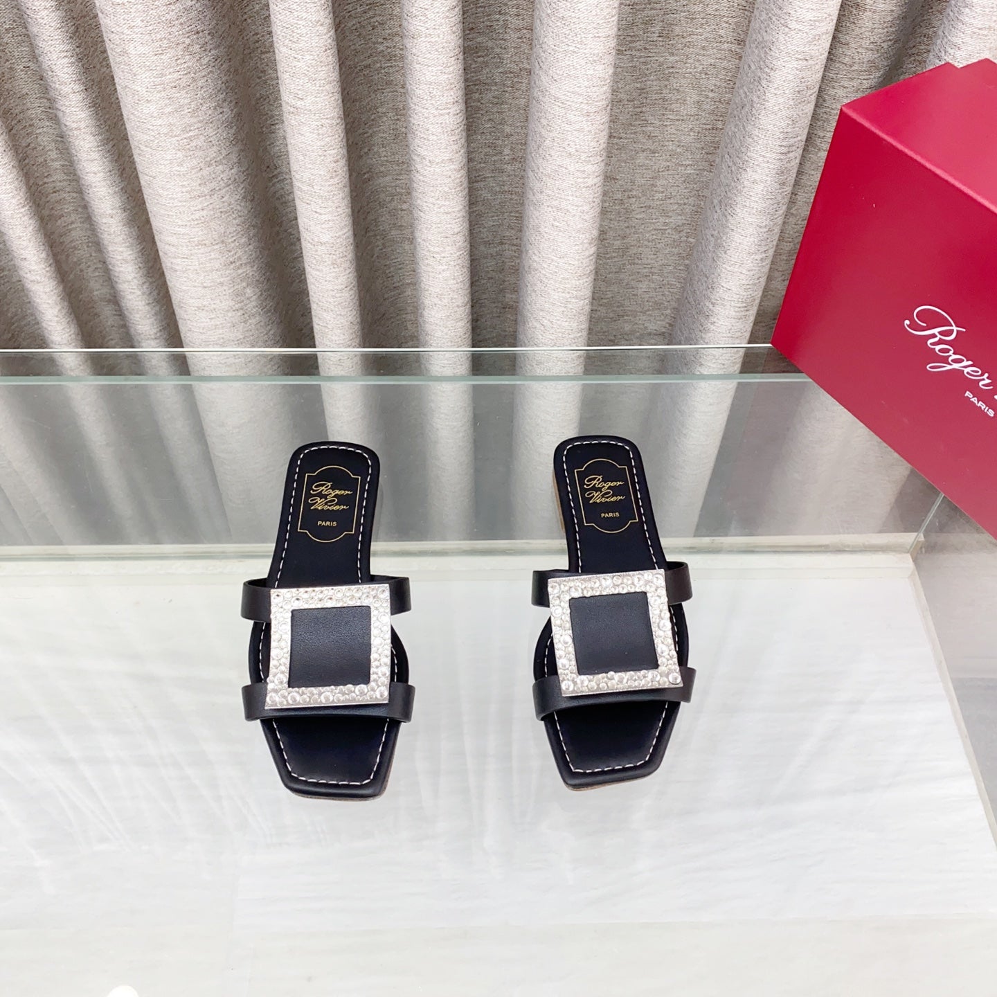 Viv 25 Diamond Flat Slippers Black Cowhide 283038