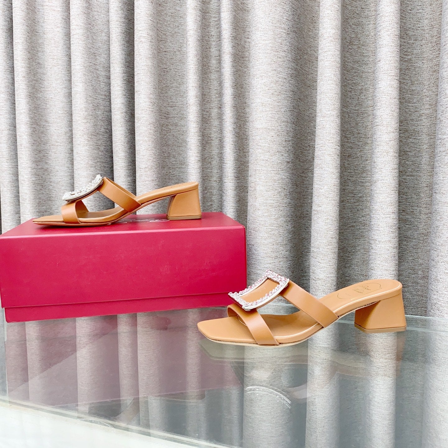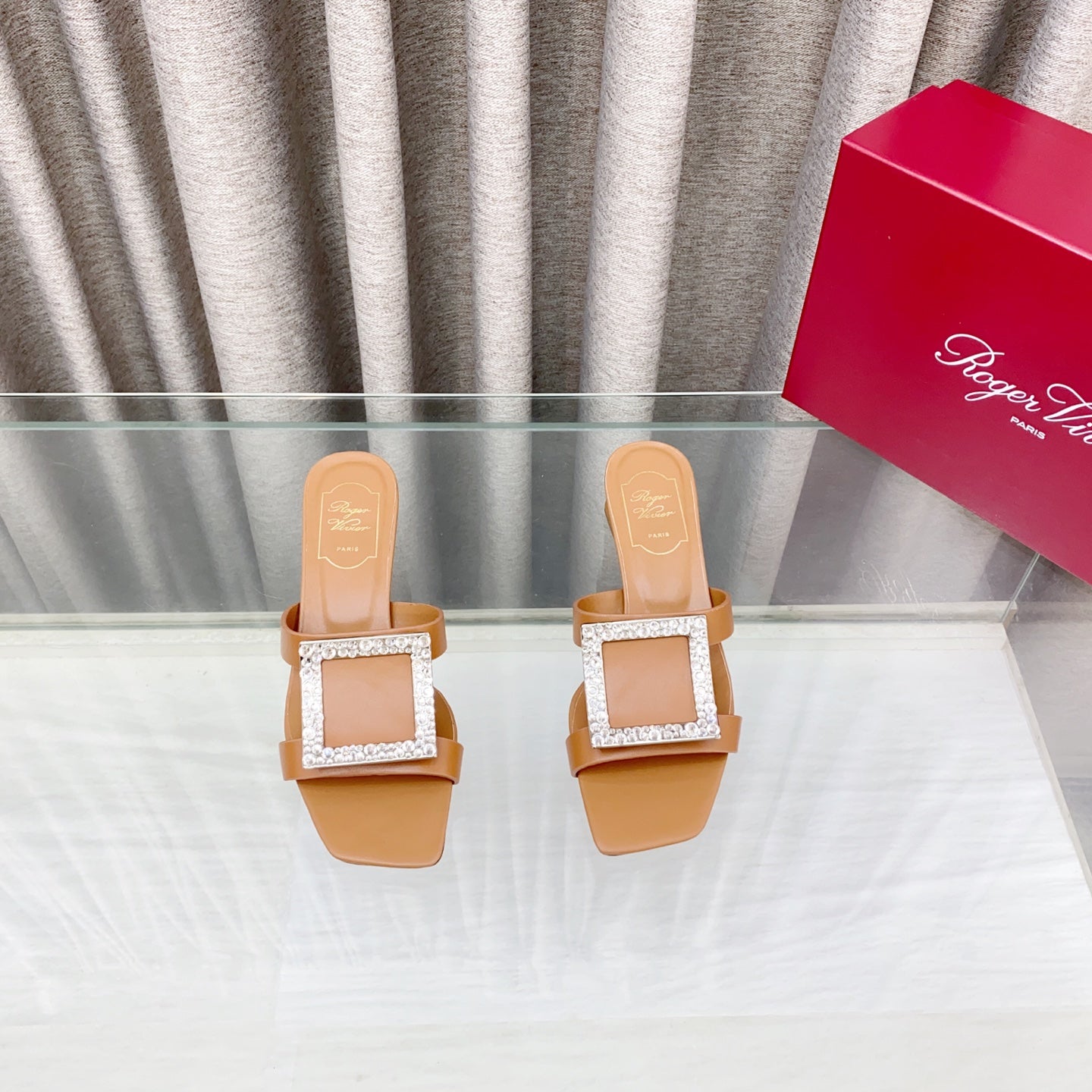 Viv 25 Diamond Mid Heel Slides Brown Cowhide 283039