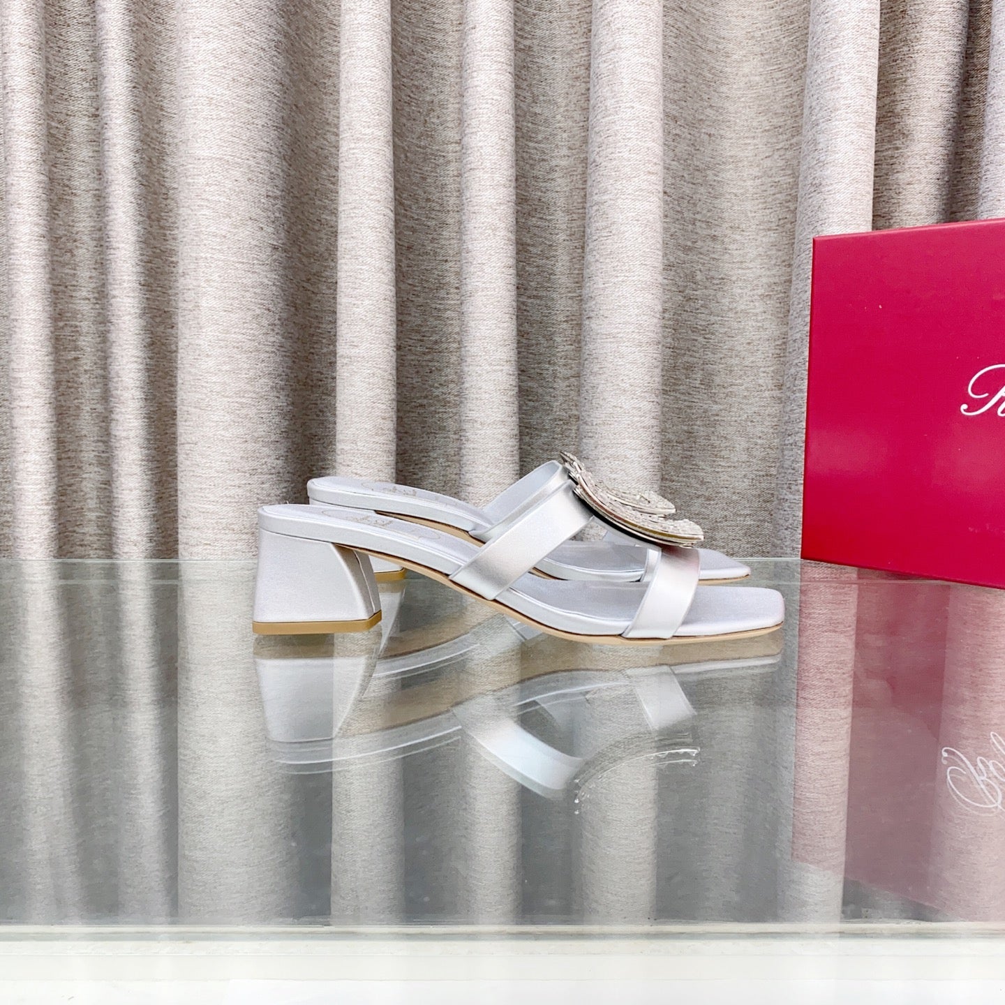 Viv 25 Diamond Mid Heel Slides Silver Cowhide 283037
