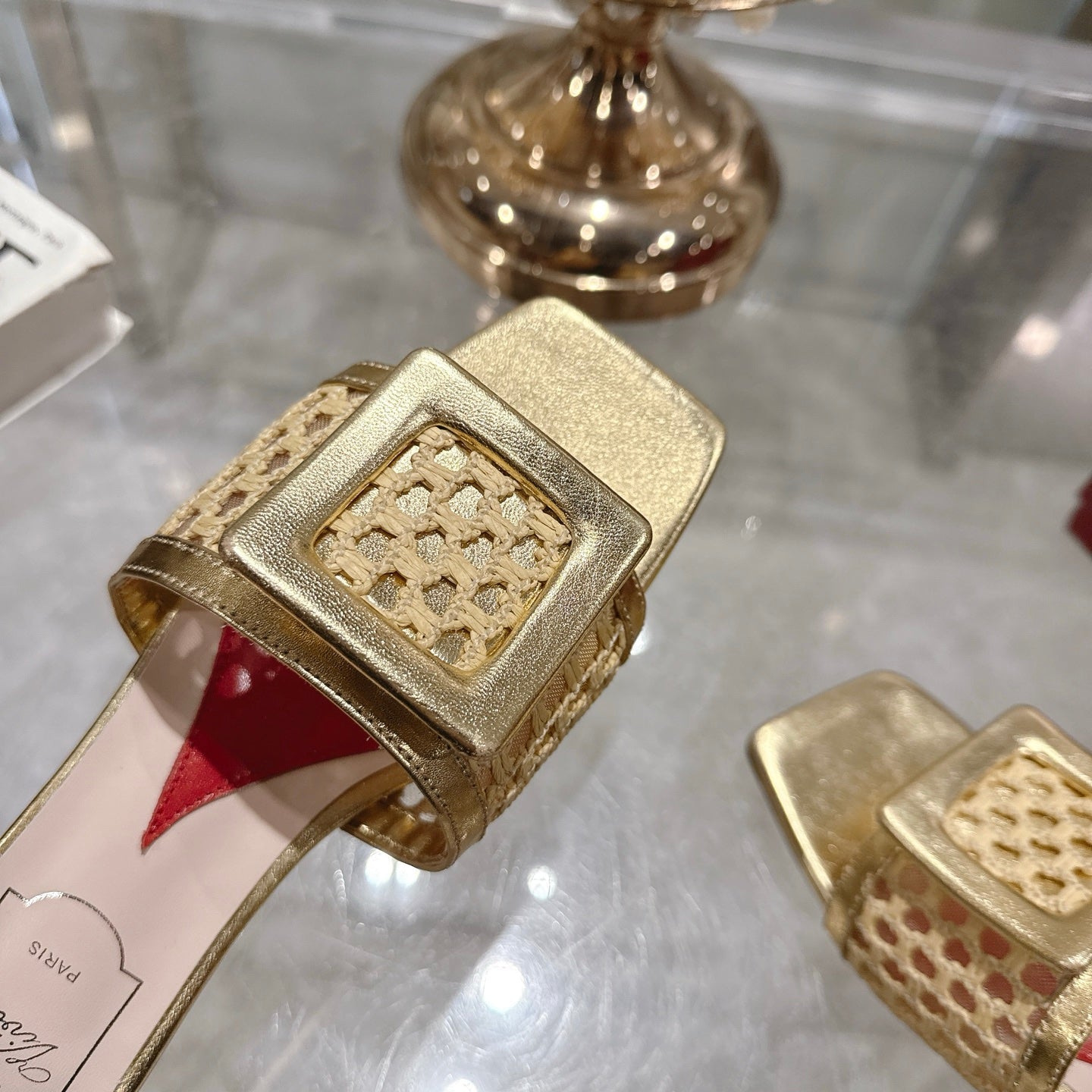 Viv 25 Hollow Square Buckle Slippers Gold Weaving Leather 263001