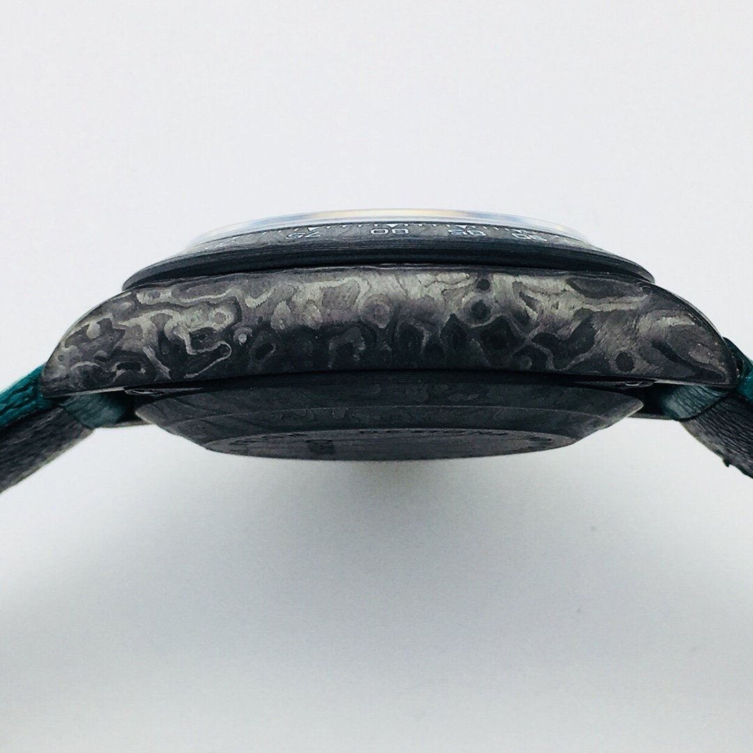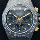 DAYTONA 40MM CUSTOM CARBON FILBER BLACK DIAL NAVY LEATHER