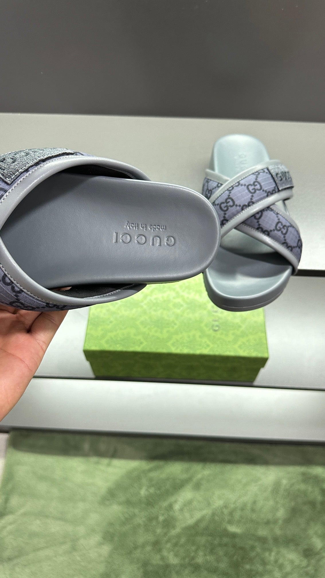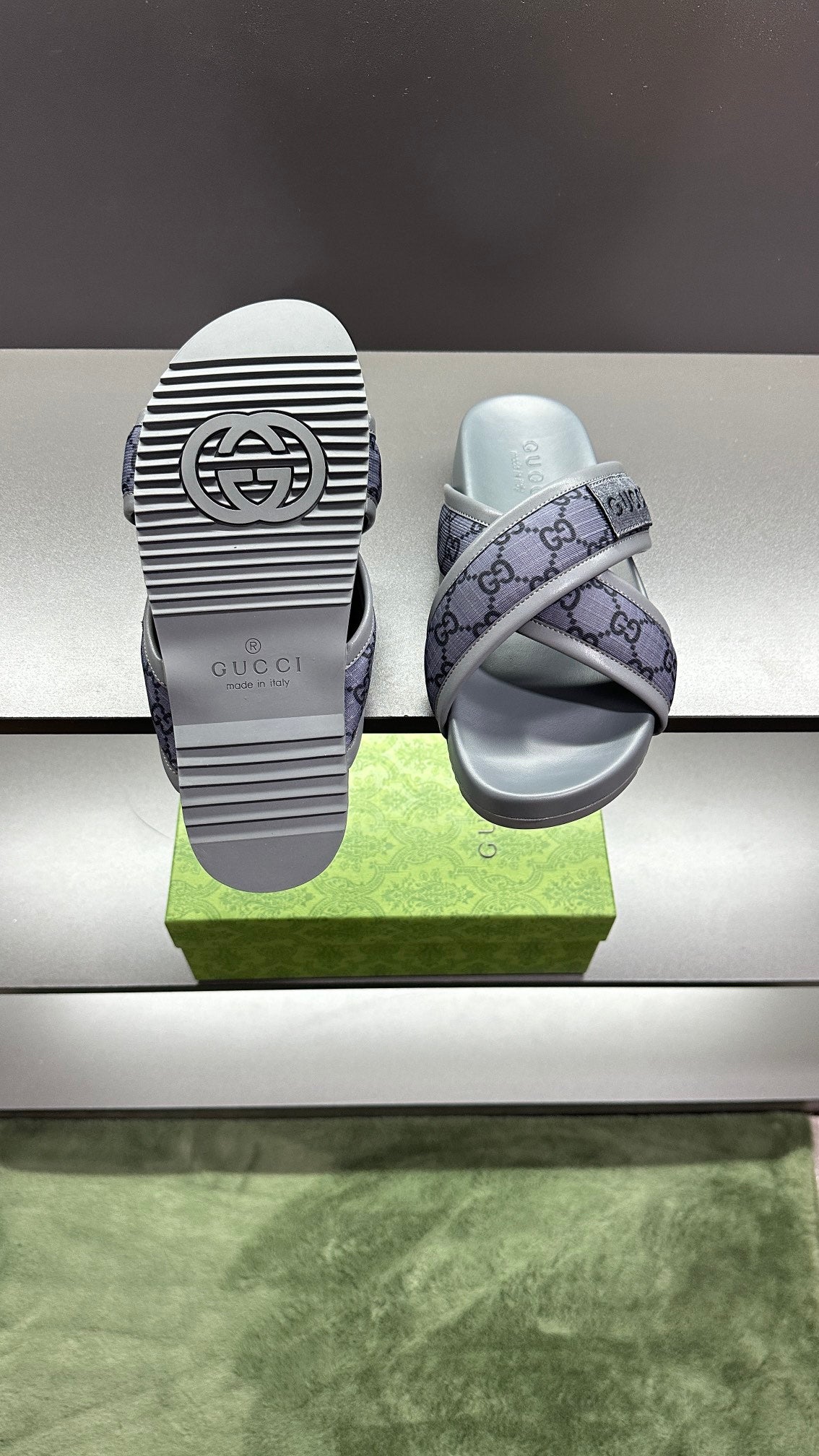 GG Men's Sandals Purple Grey Polyester Leather 547242