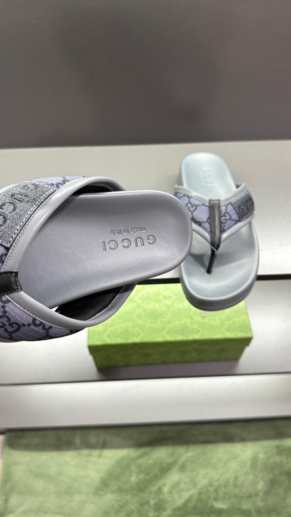 GG Men's Thong Sandals Purple Grey Polyester Leather 547243