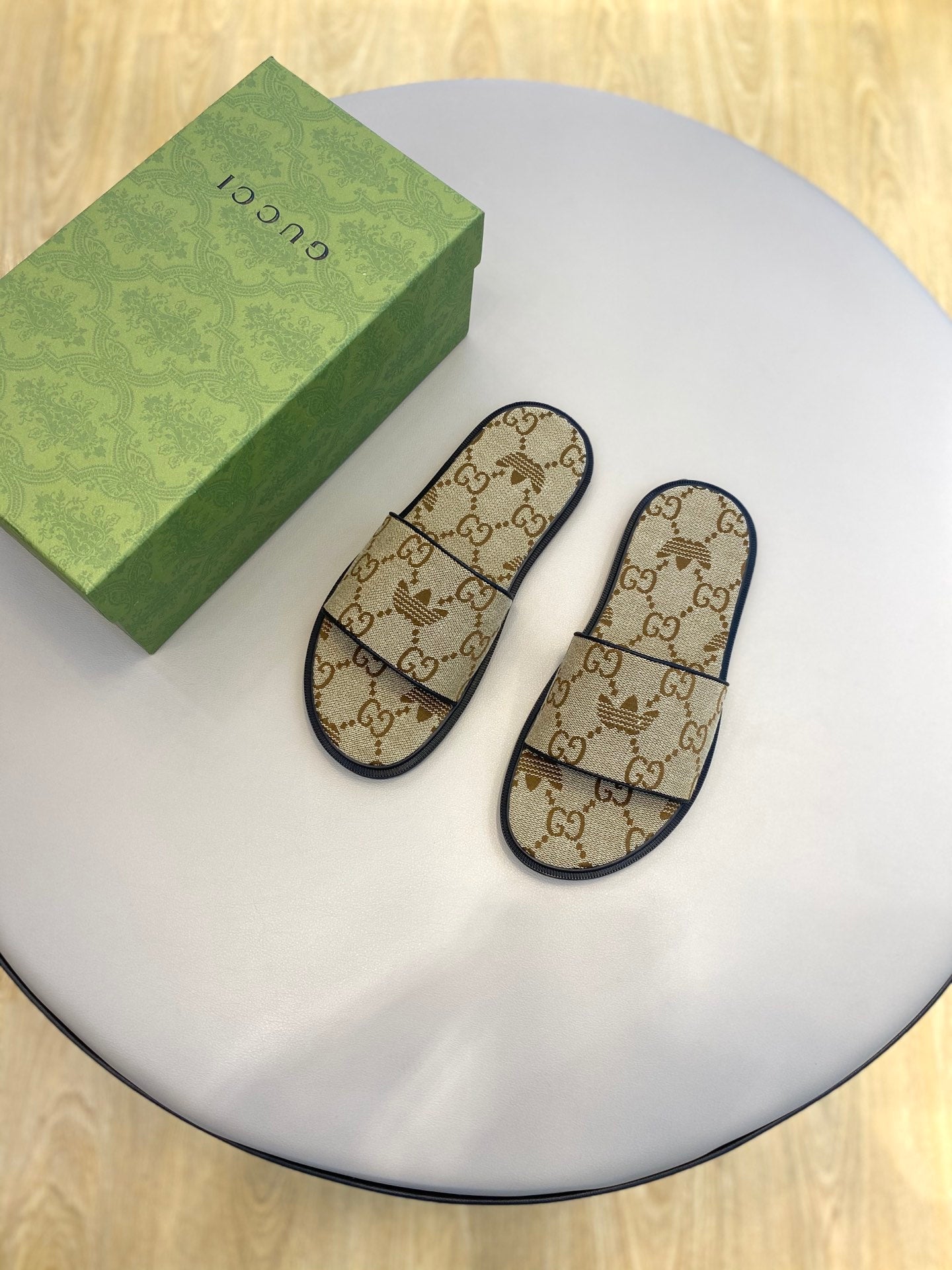 GG x Adidas Men's Sandals Slide Brown Canvas 558907