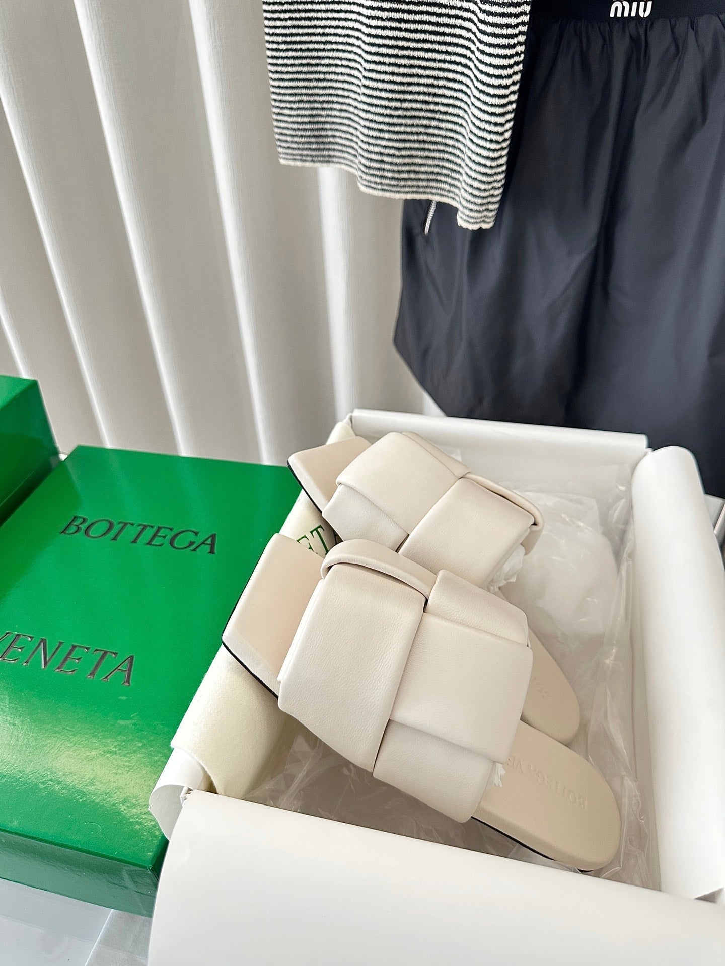 patch mule flat white lambskin