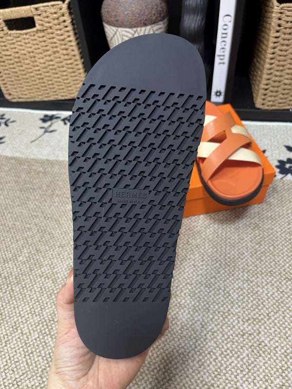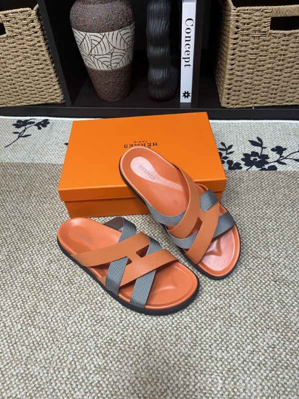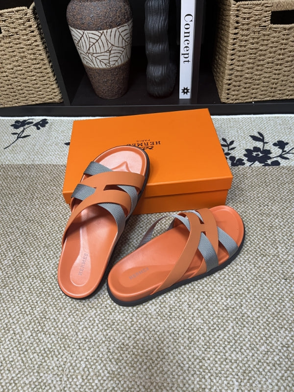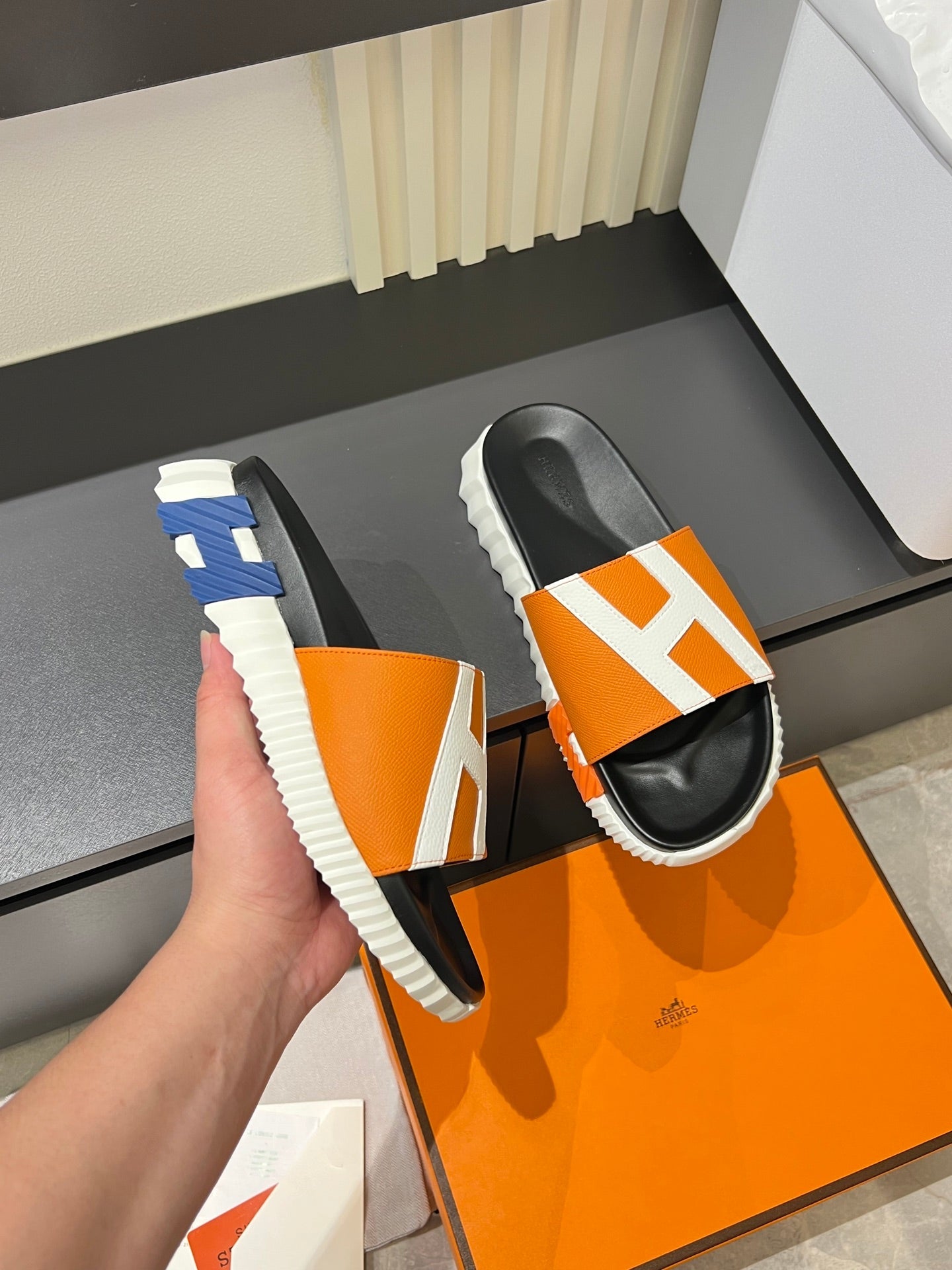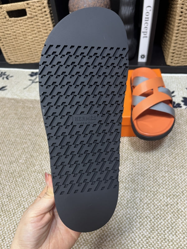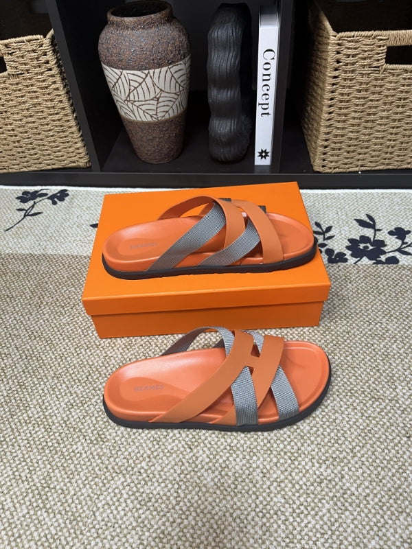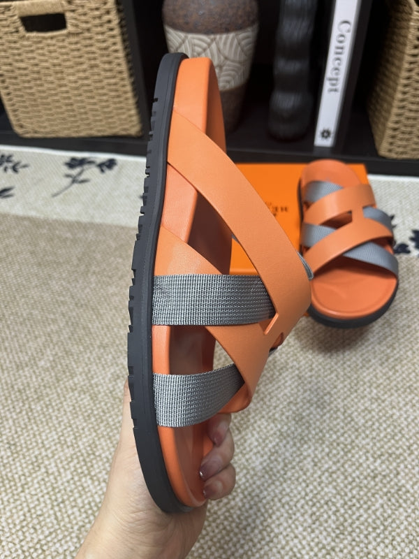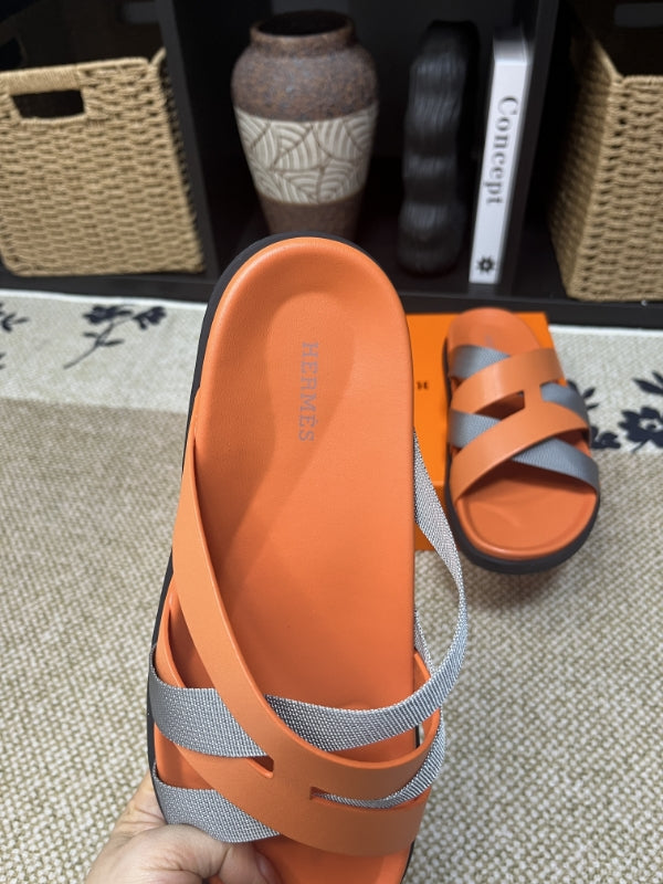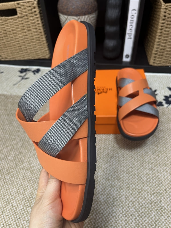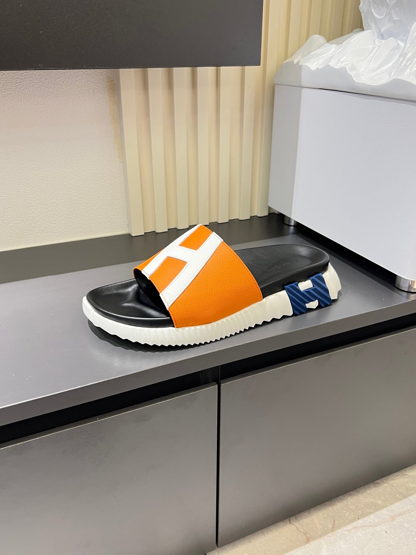 HM Men's Kazimir Slide Black Orange Calfskin 562774