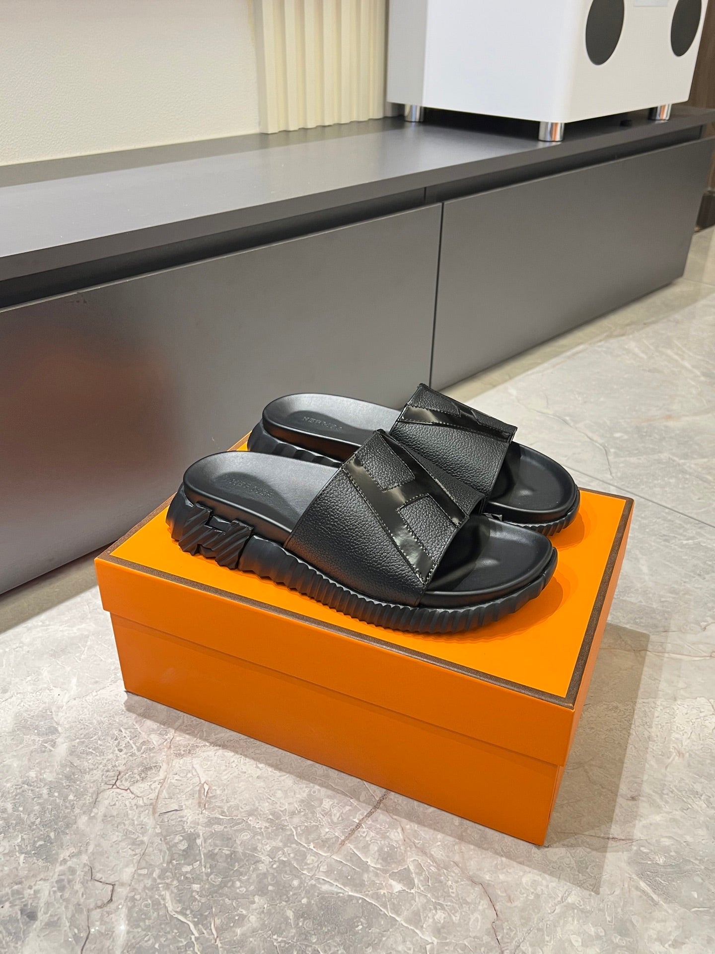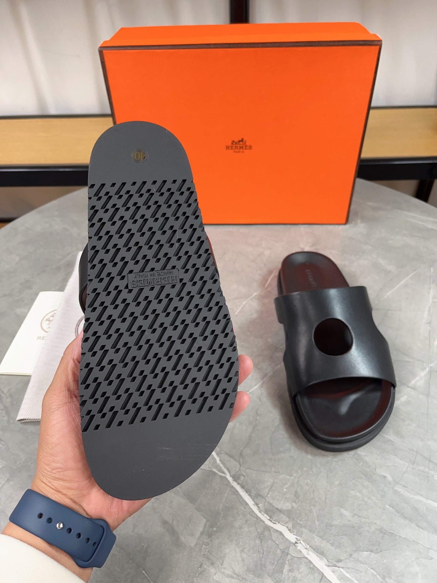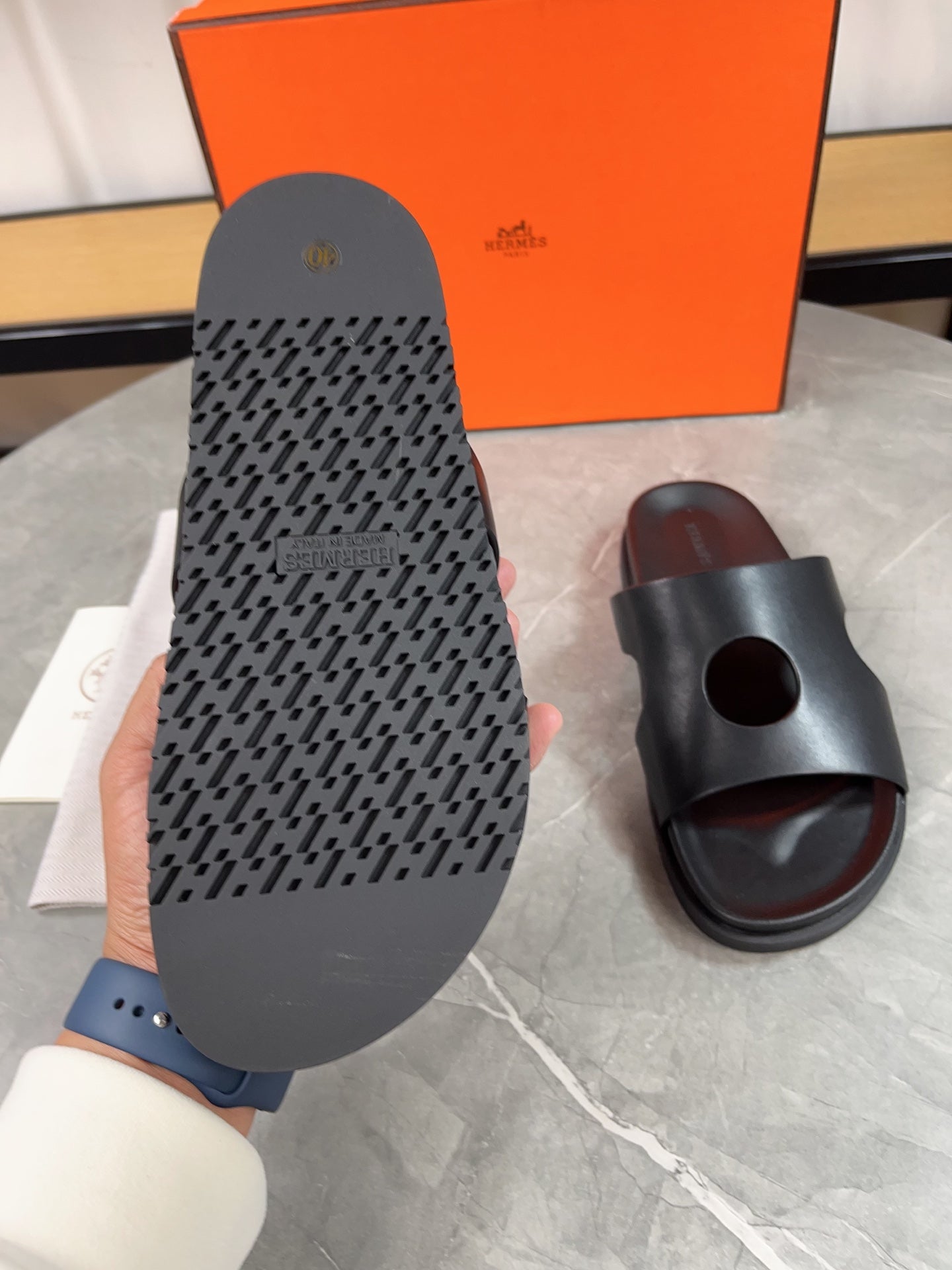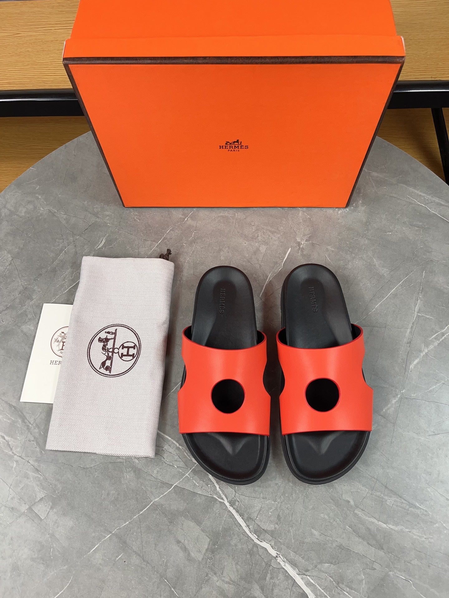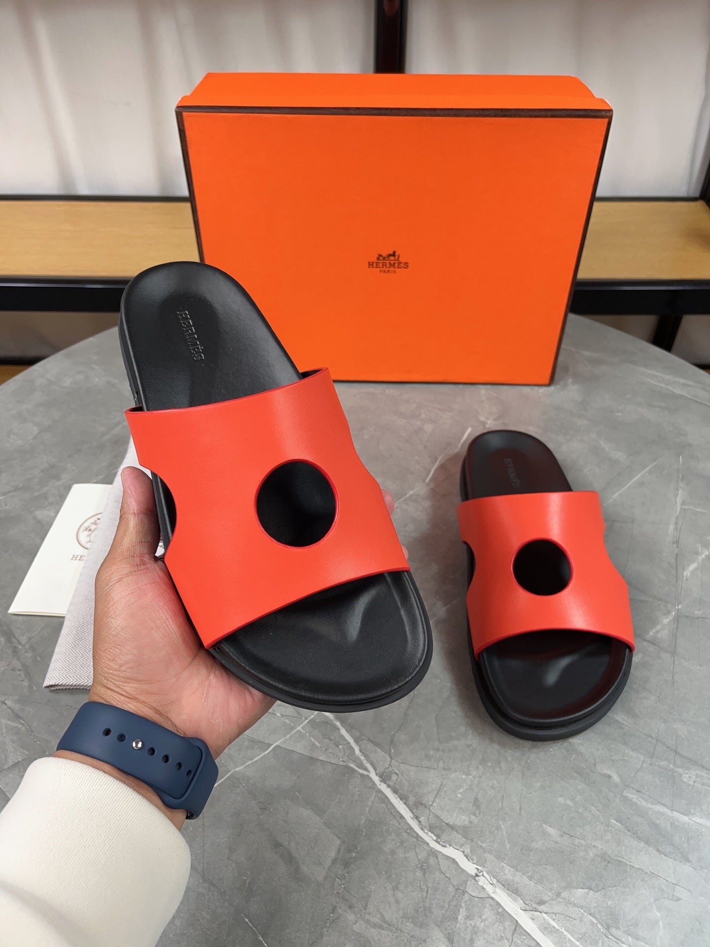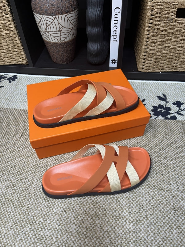HM Men's Kazimir Slide Black Orange Calfskin 562774