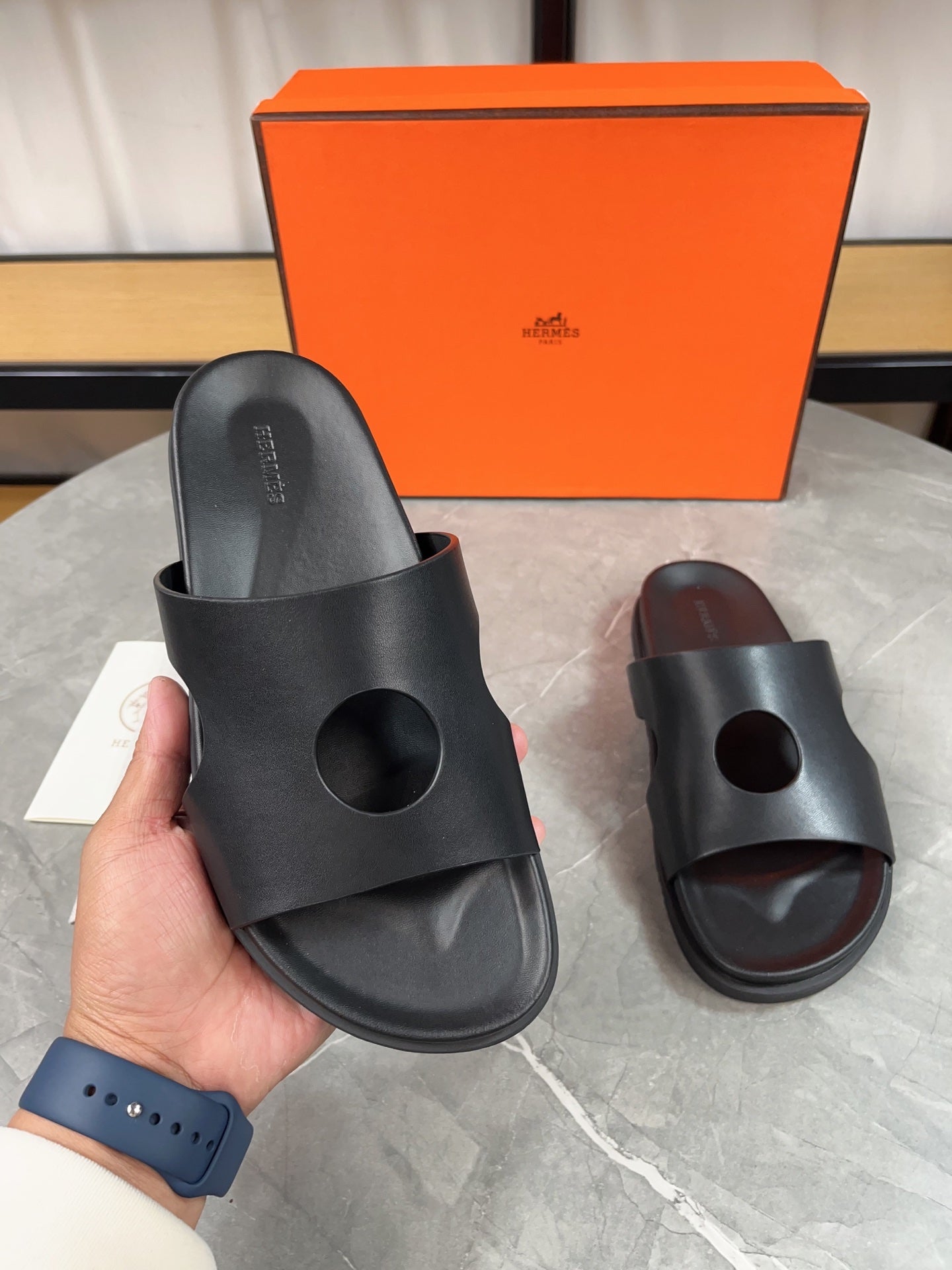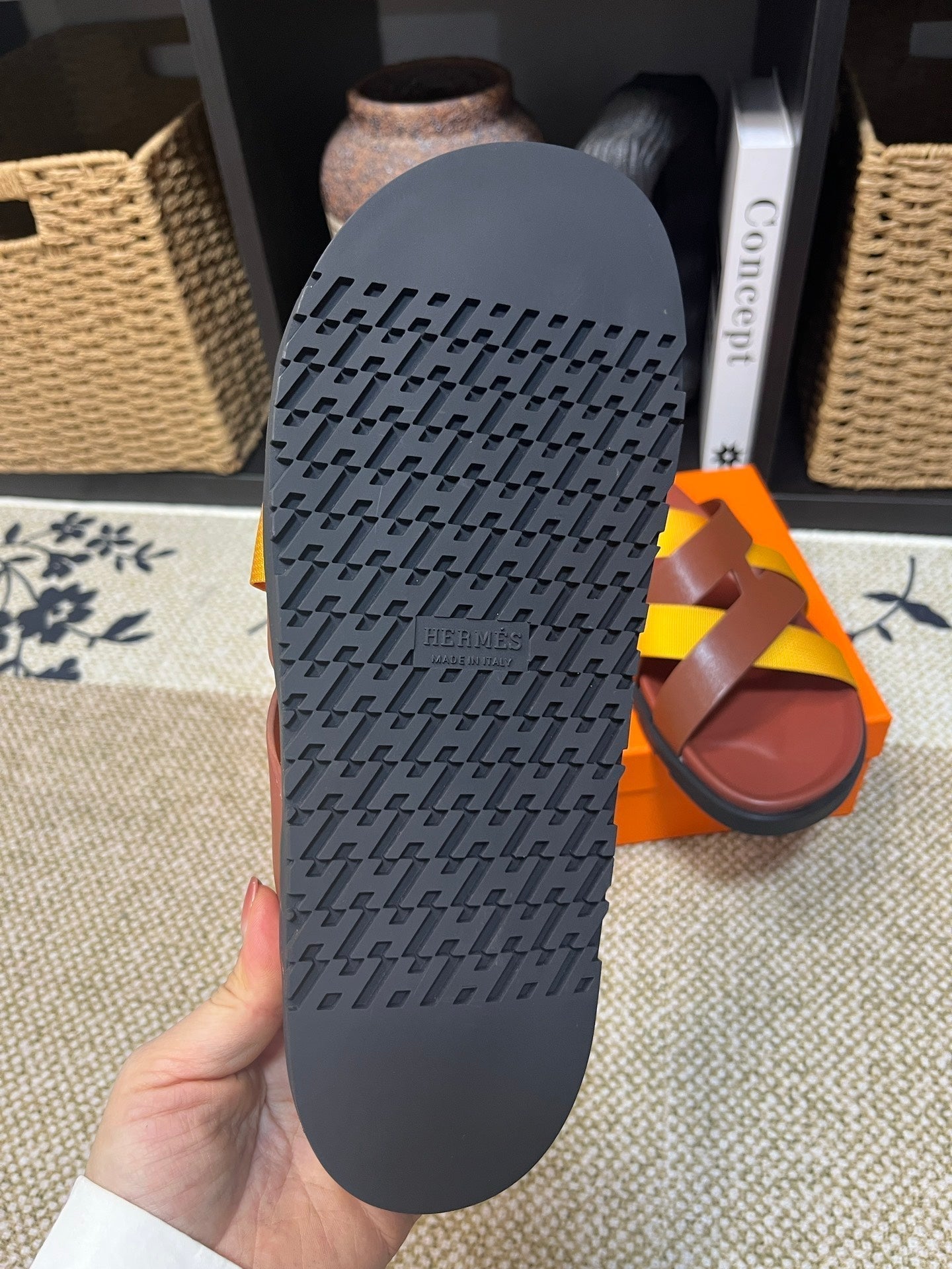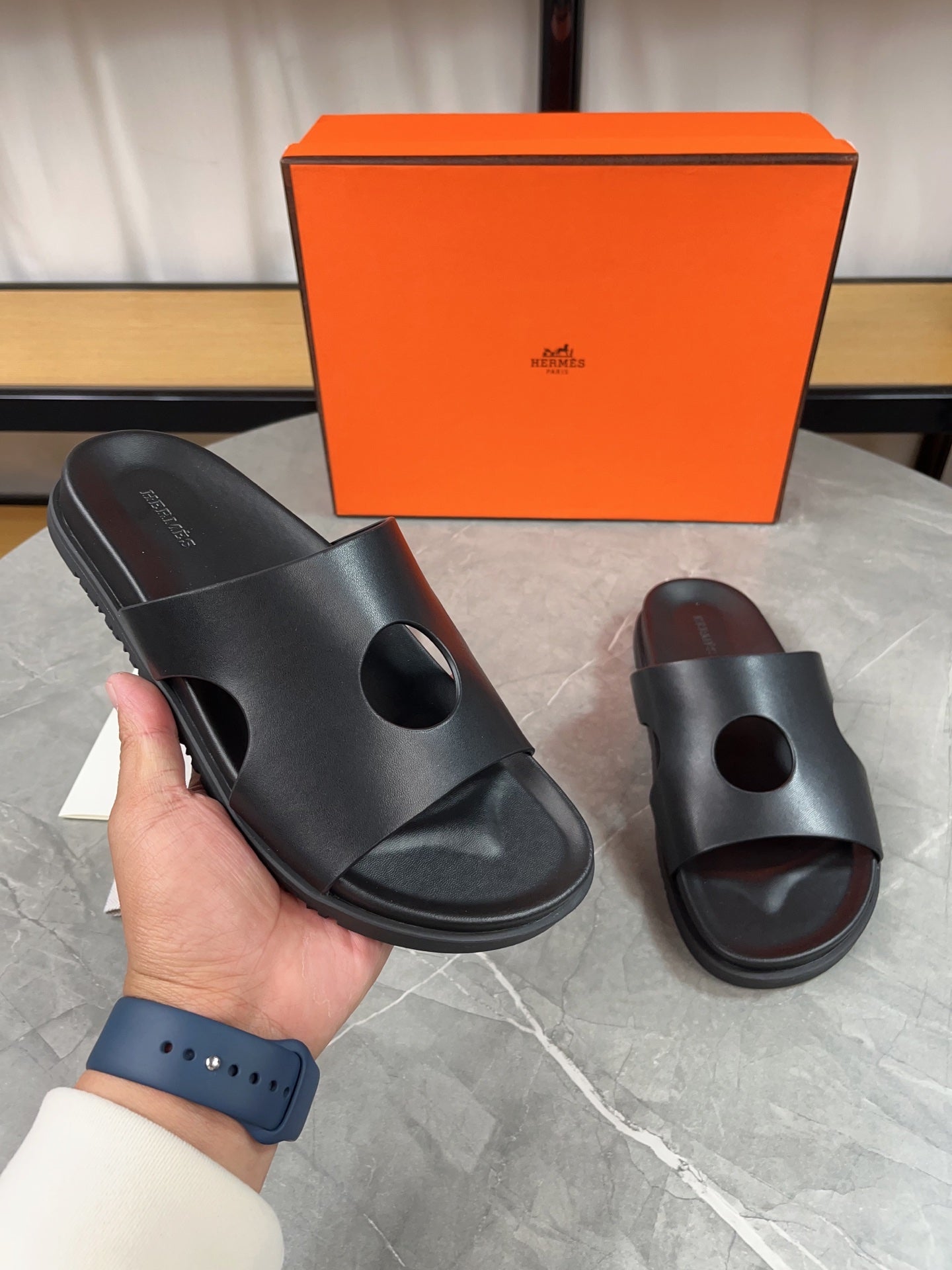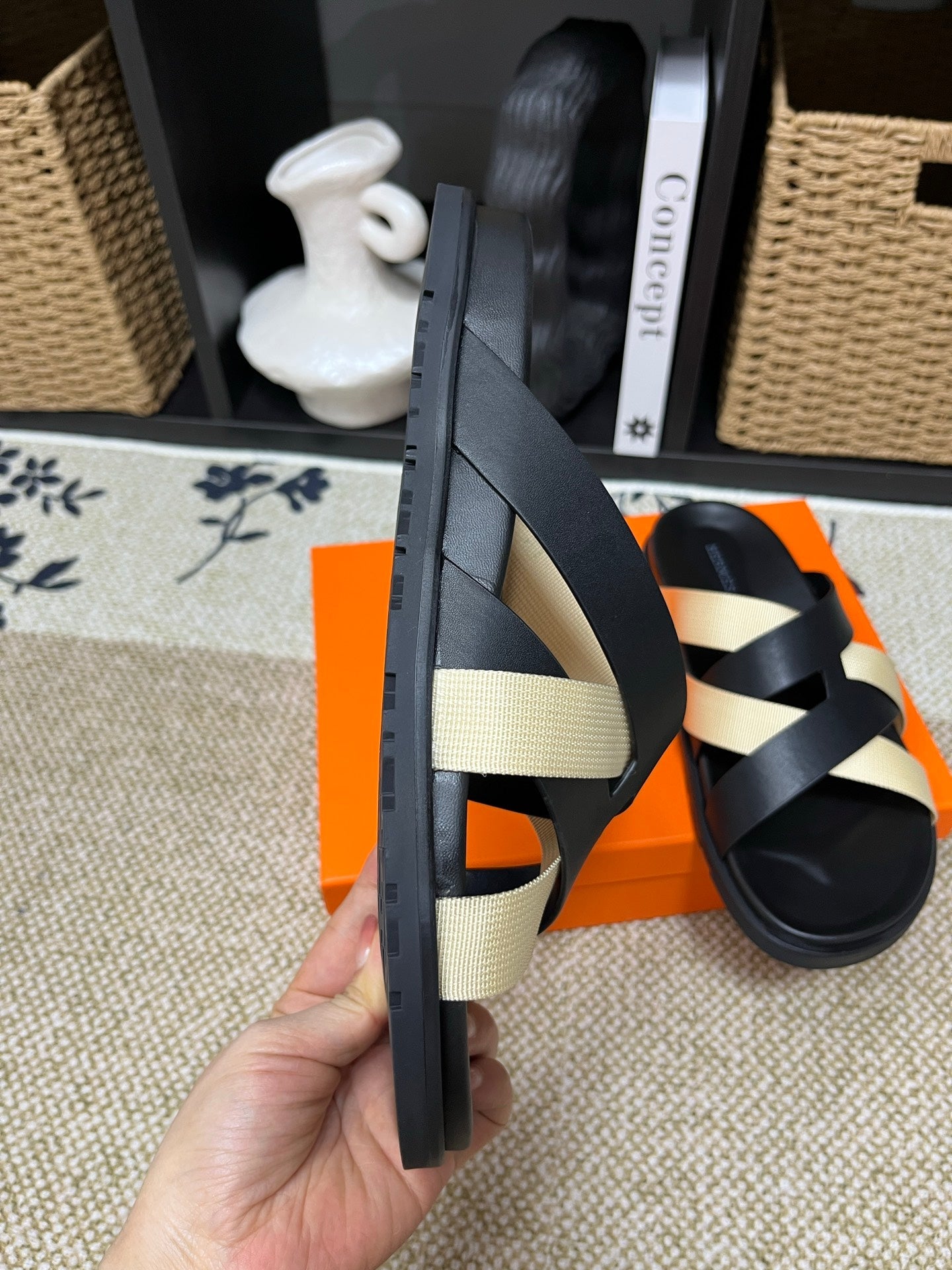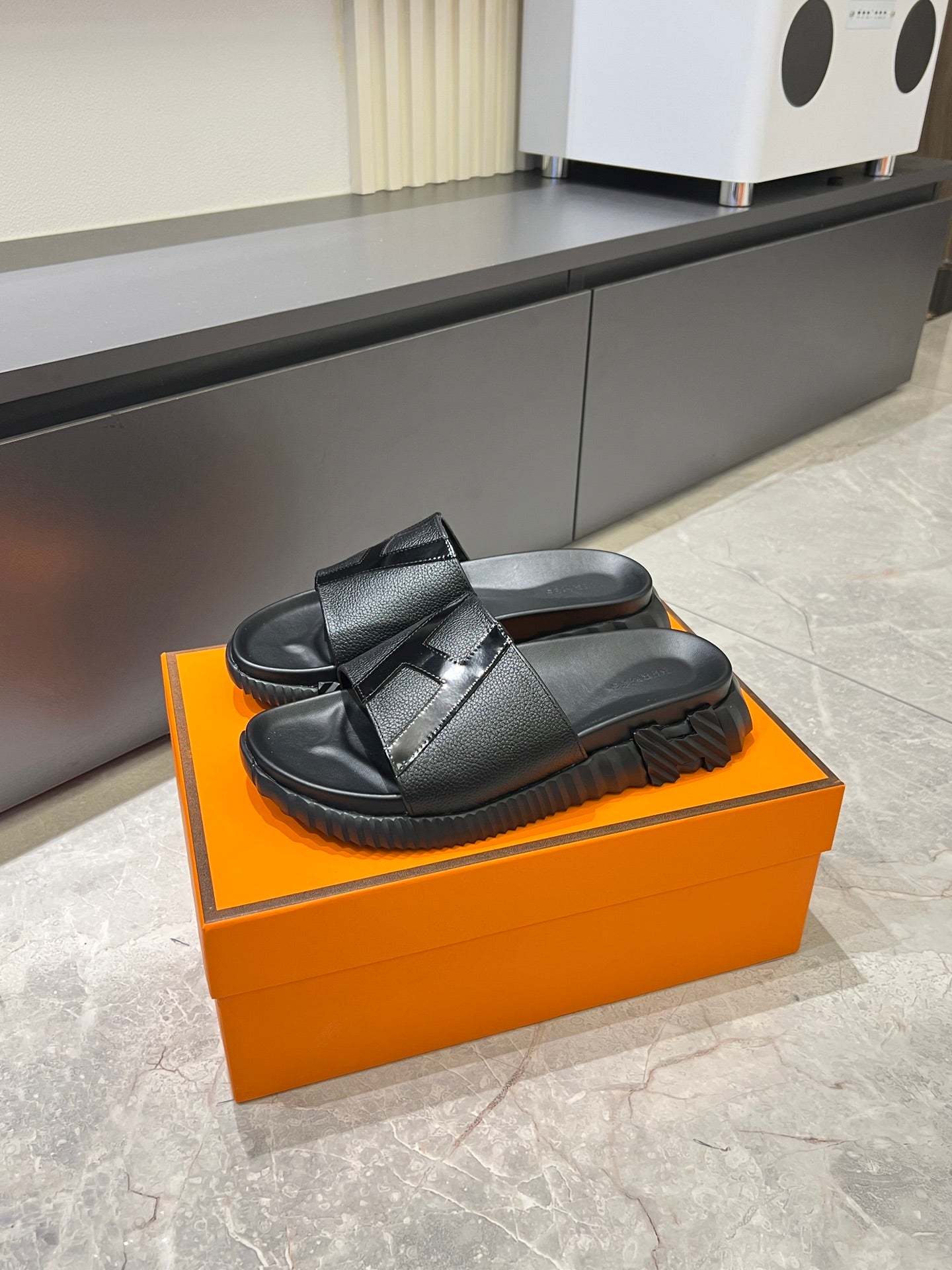 HM Men's Kazimir Slide Black Orange Calfskin 562774