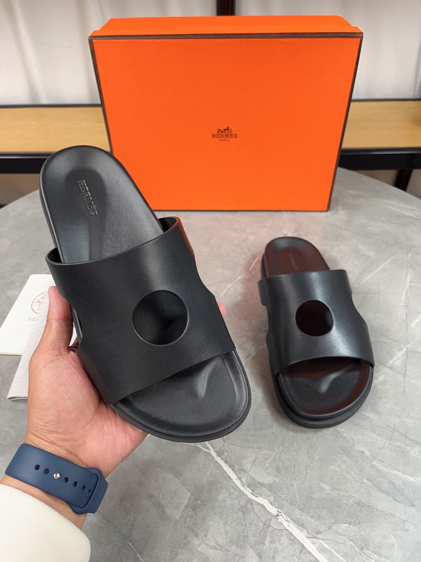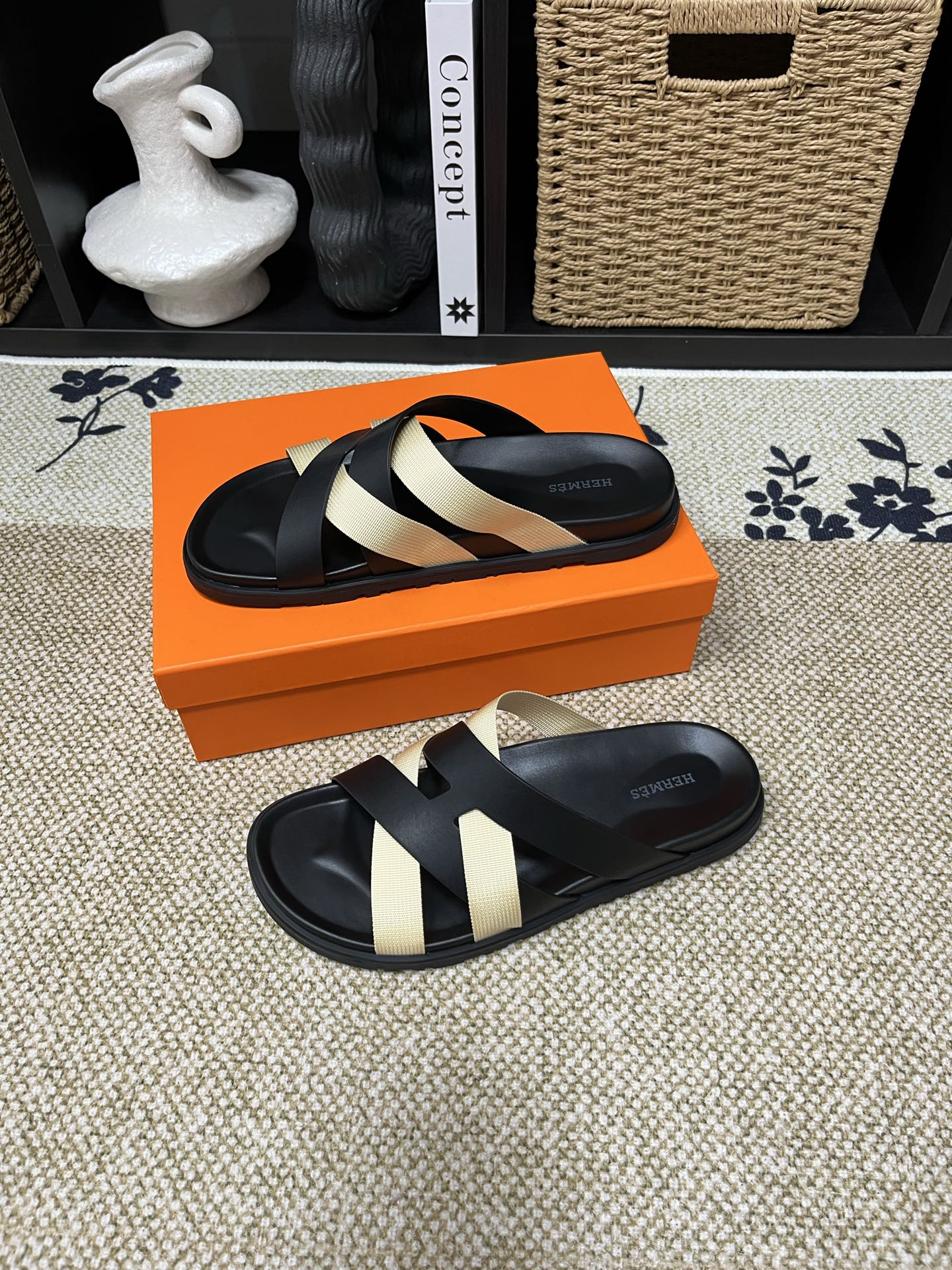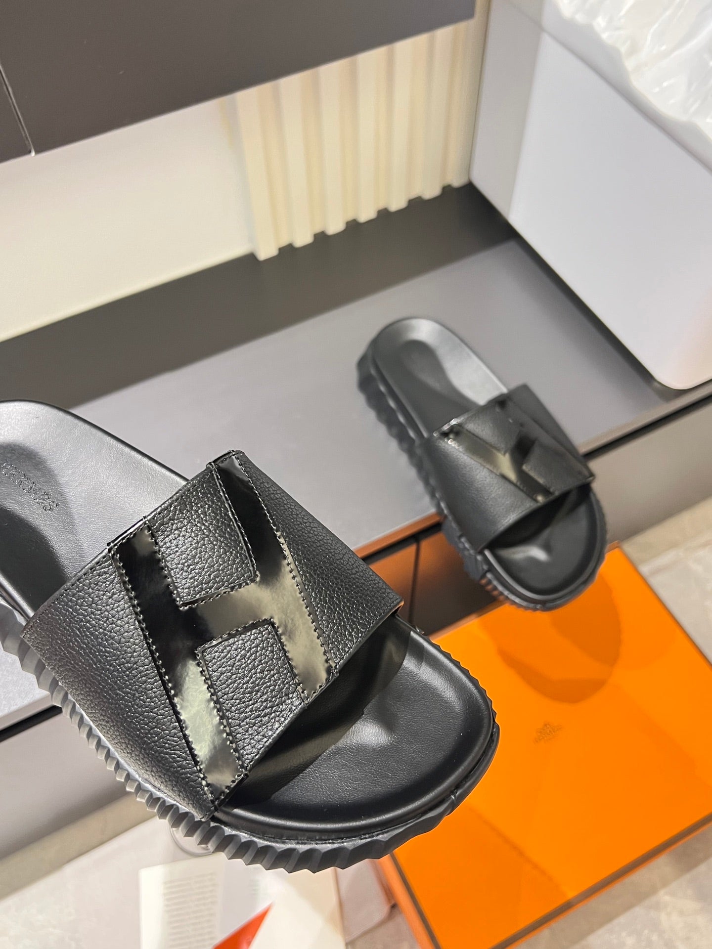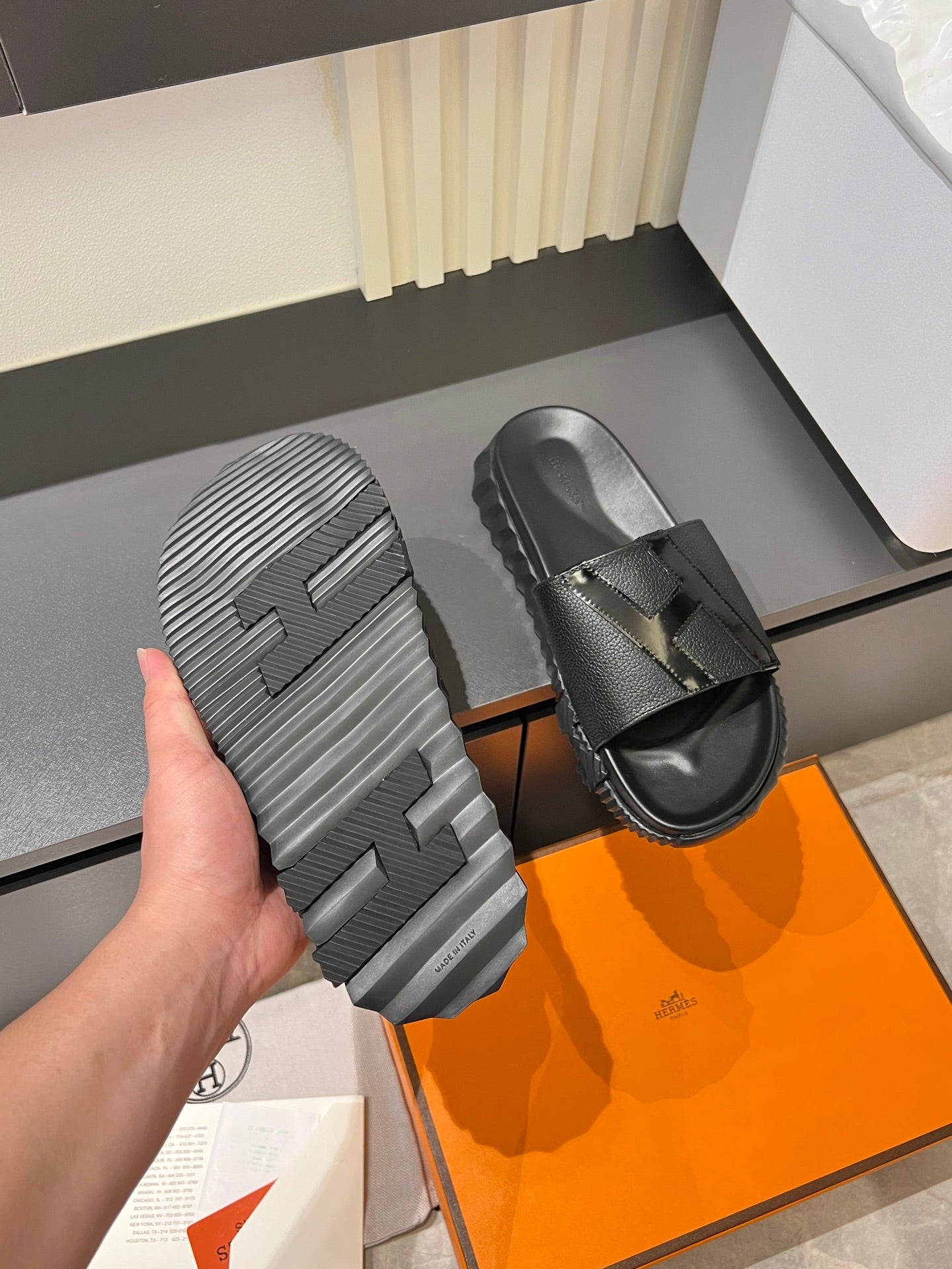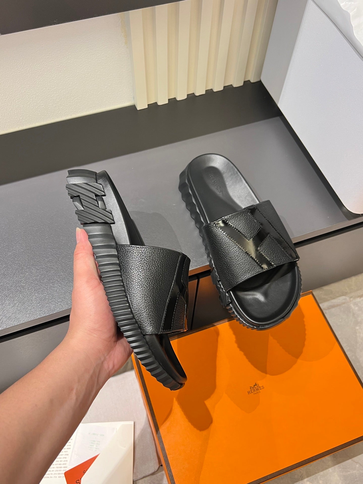 HM Men's Kazimir Slide Black Orange Calfskin 562774