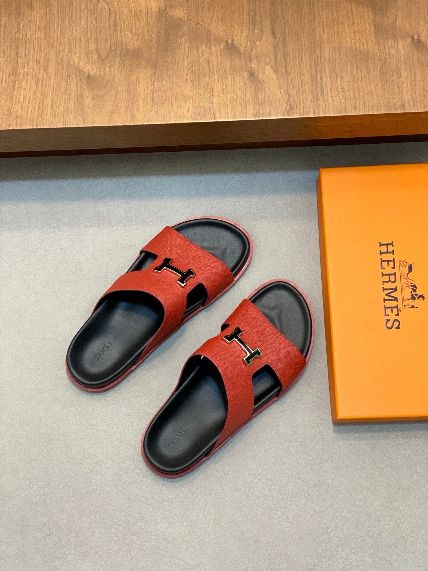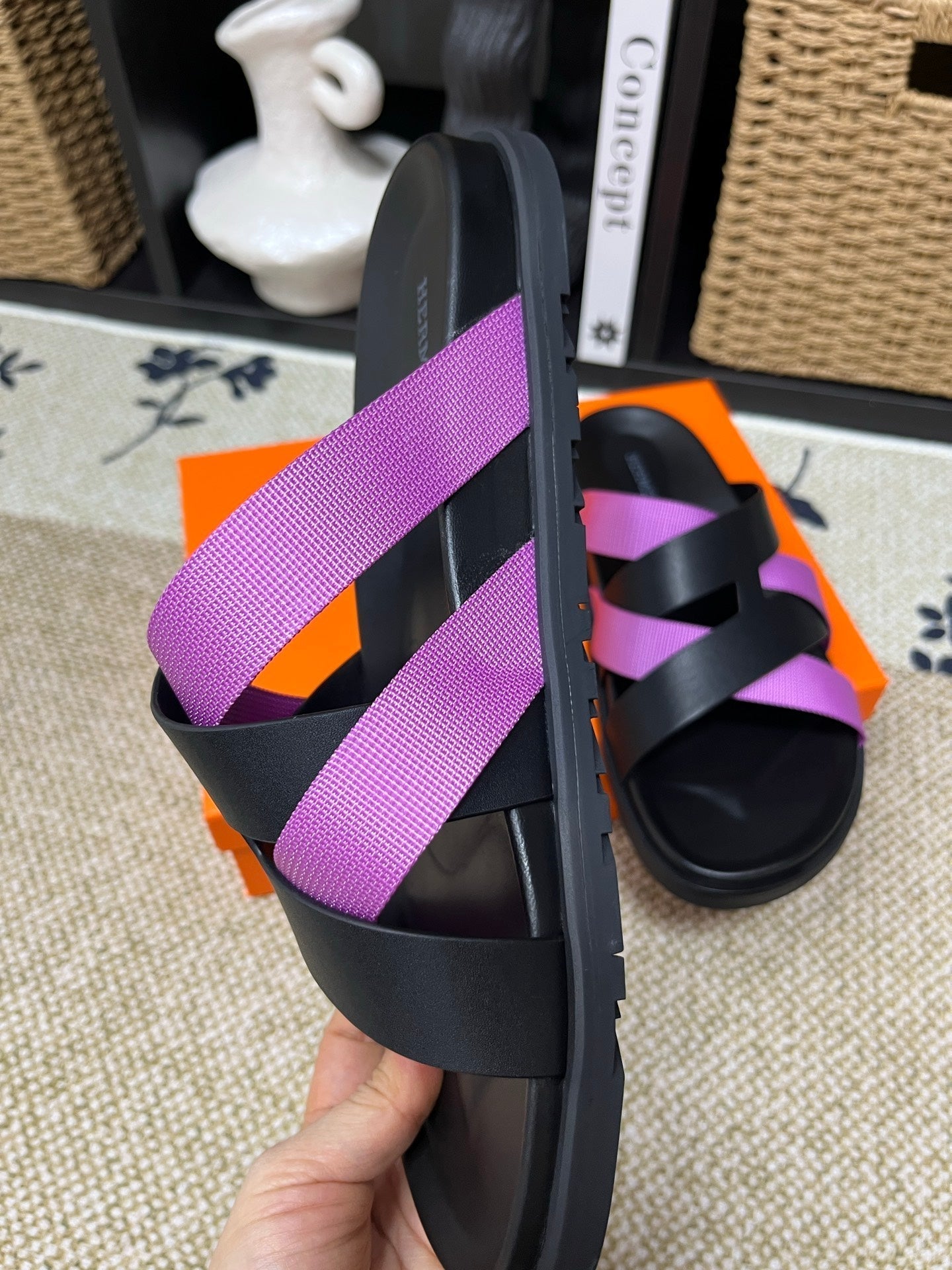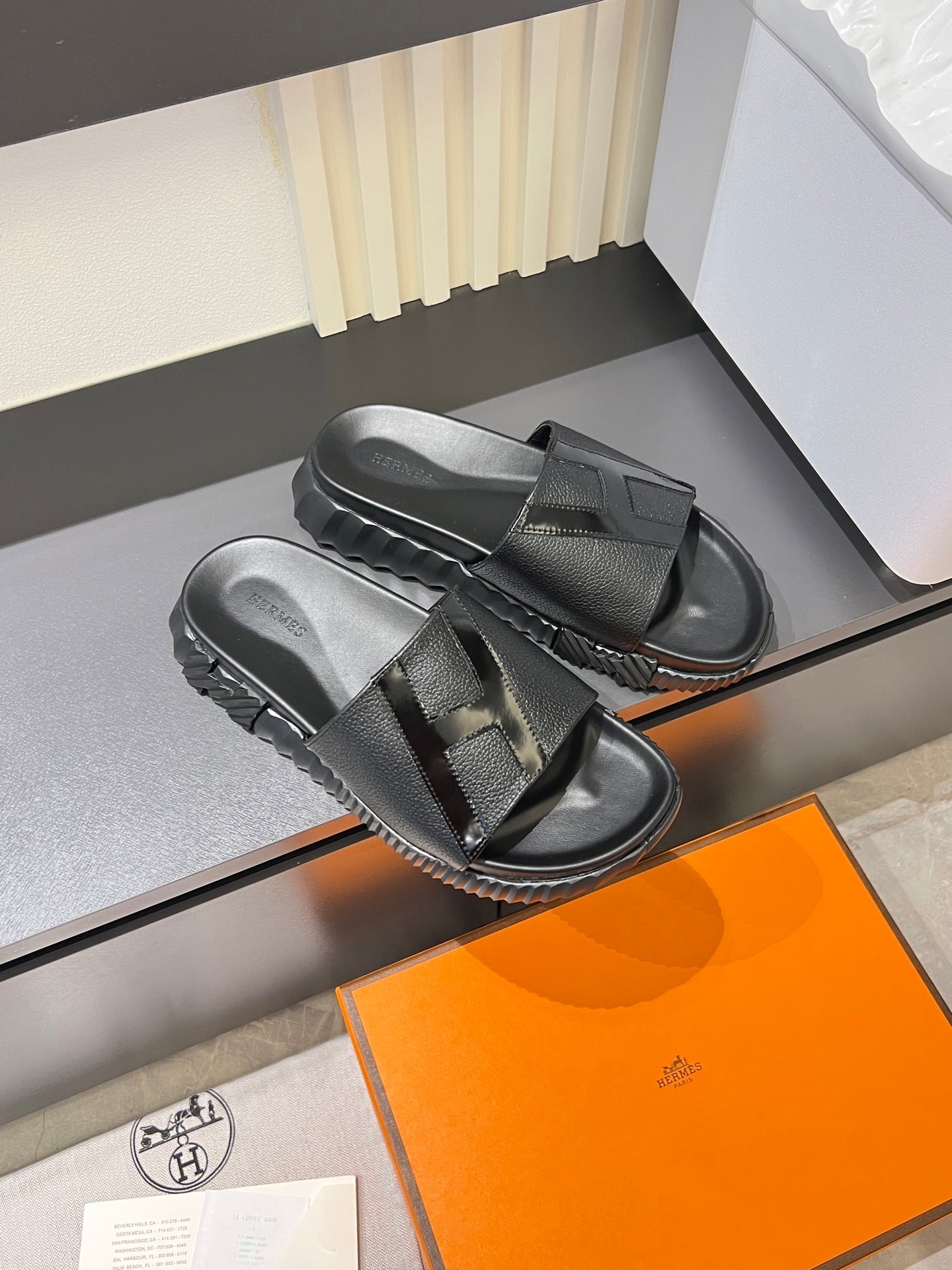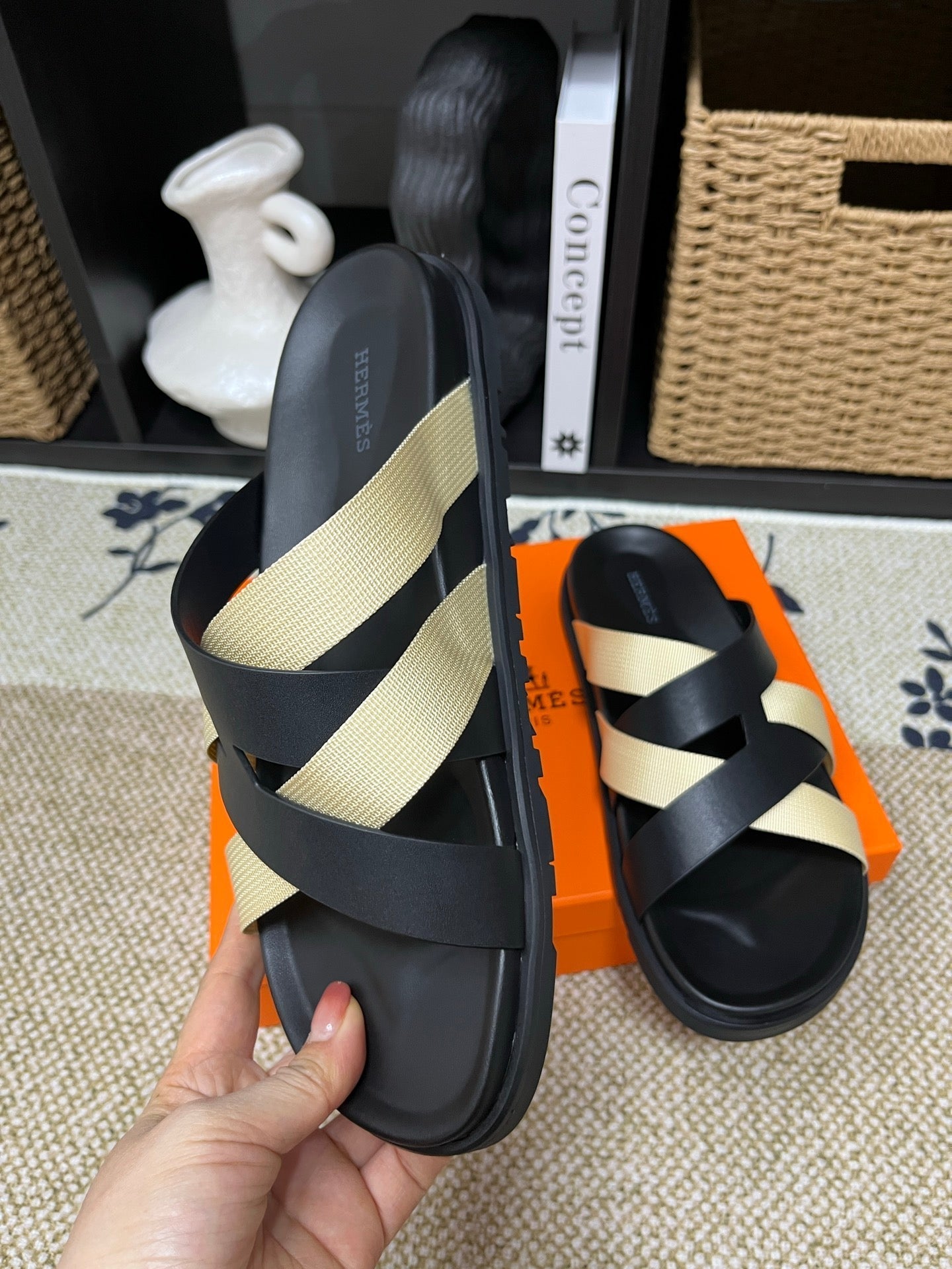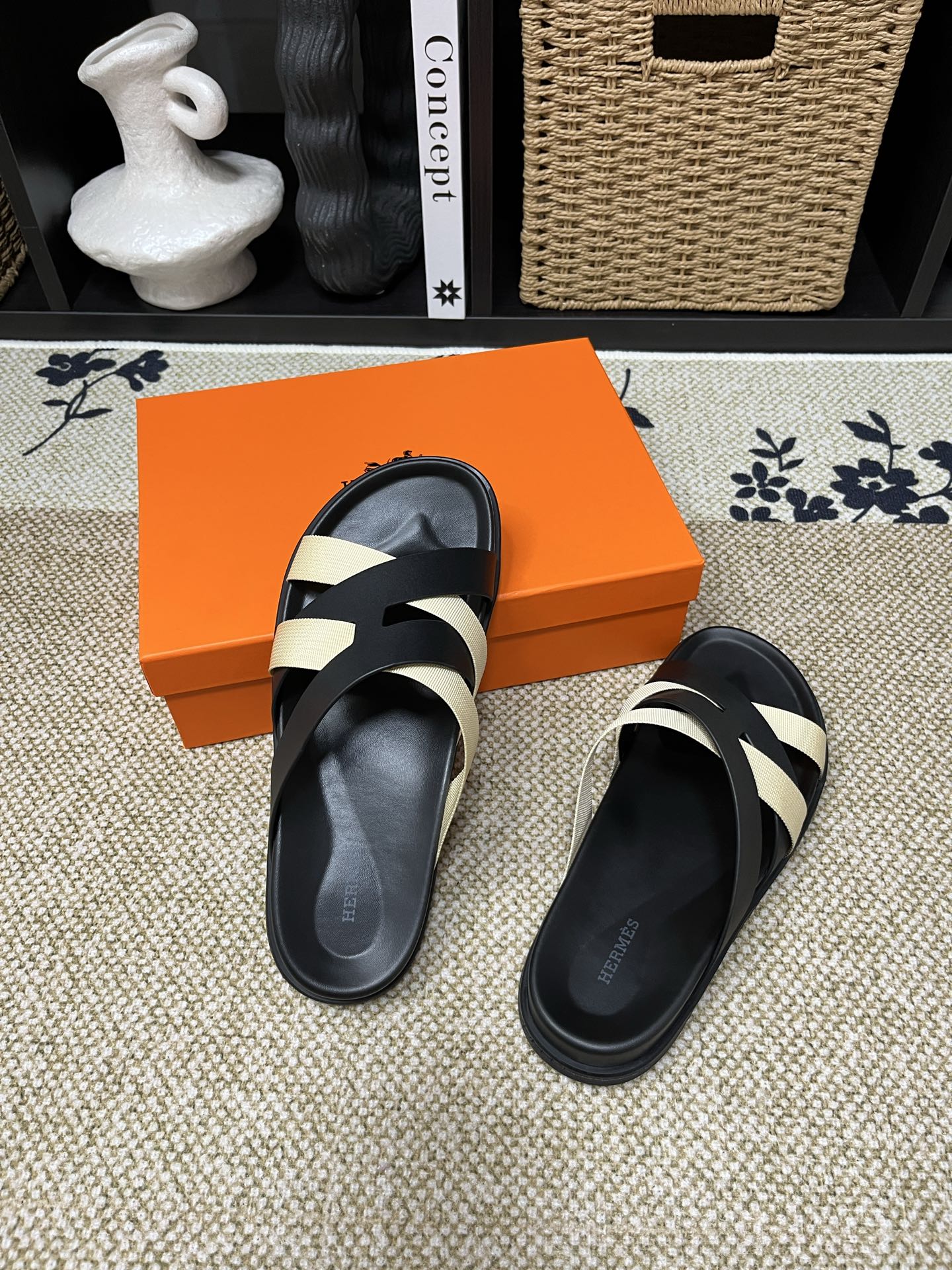 HM Men's Kazimir Slide Black Orange Calfskin 562774