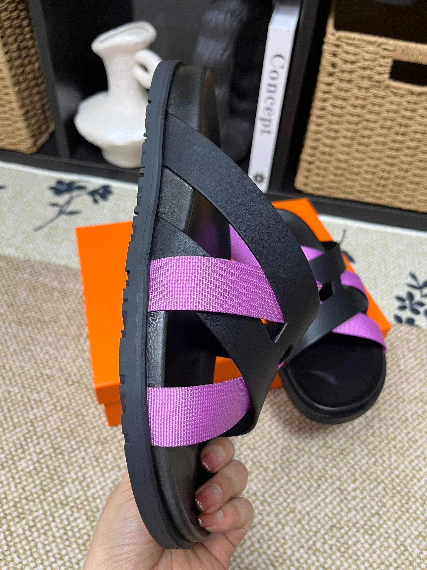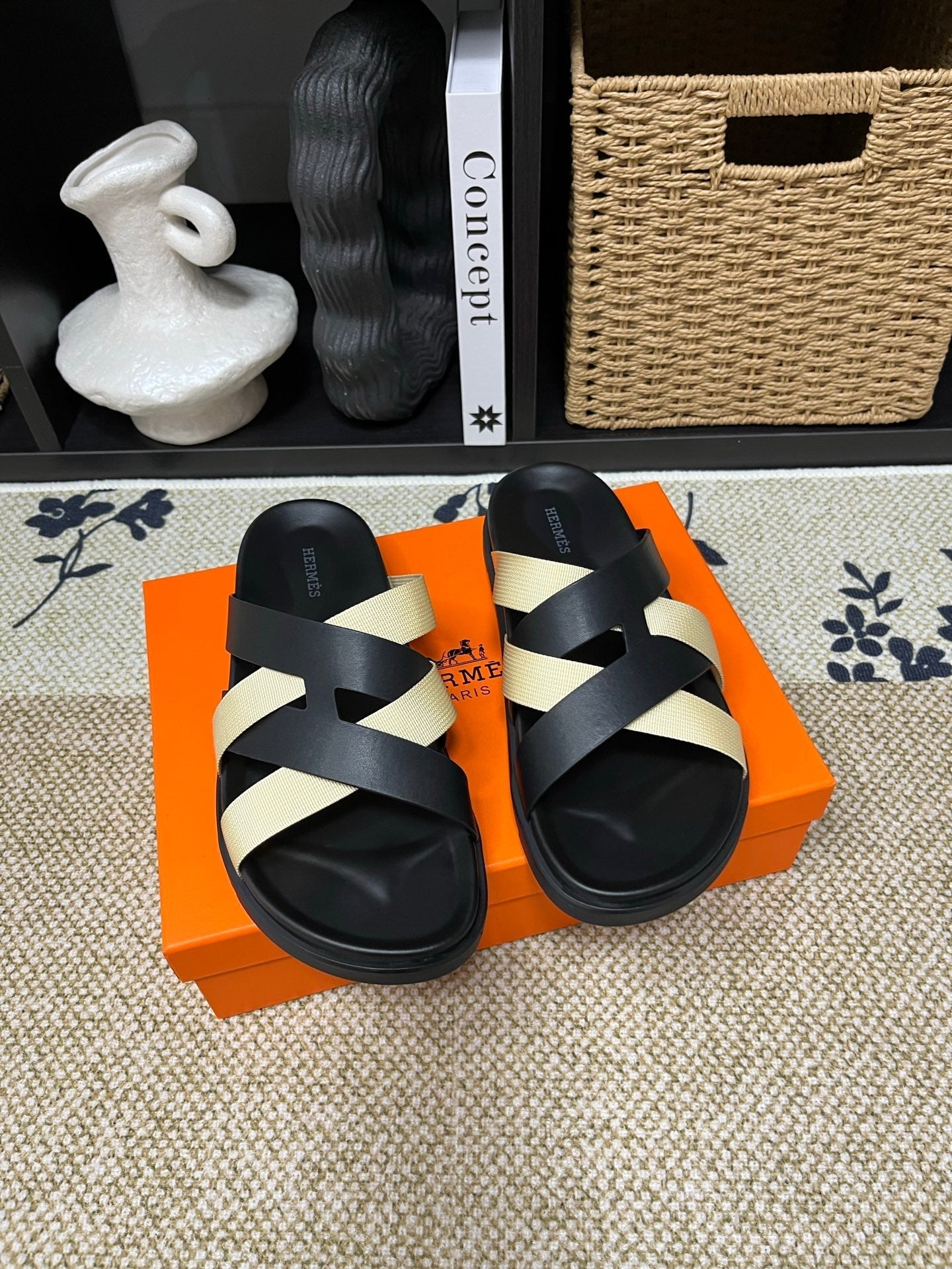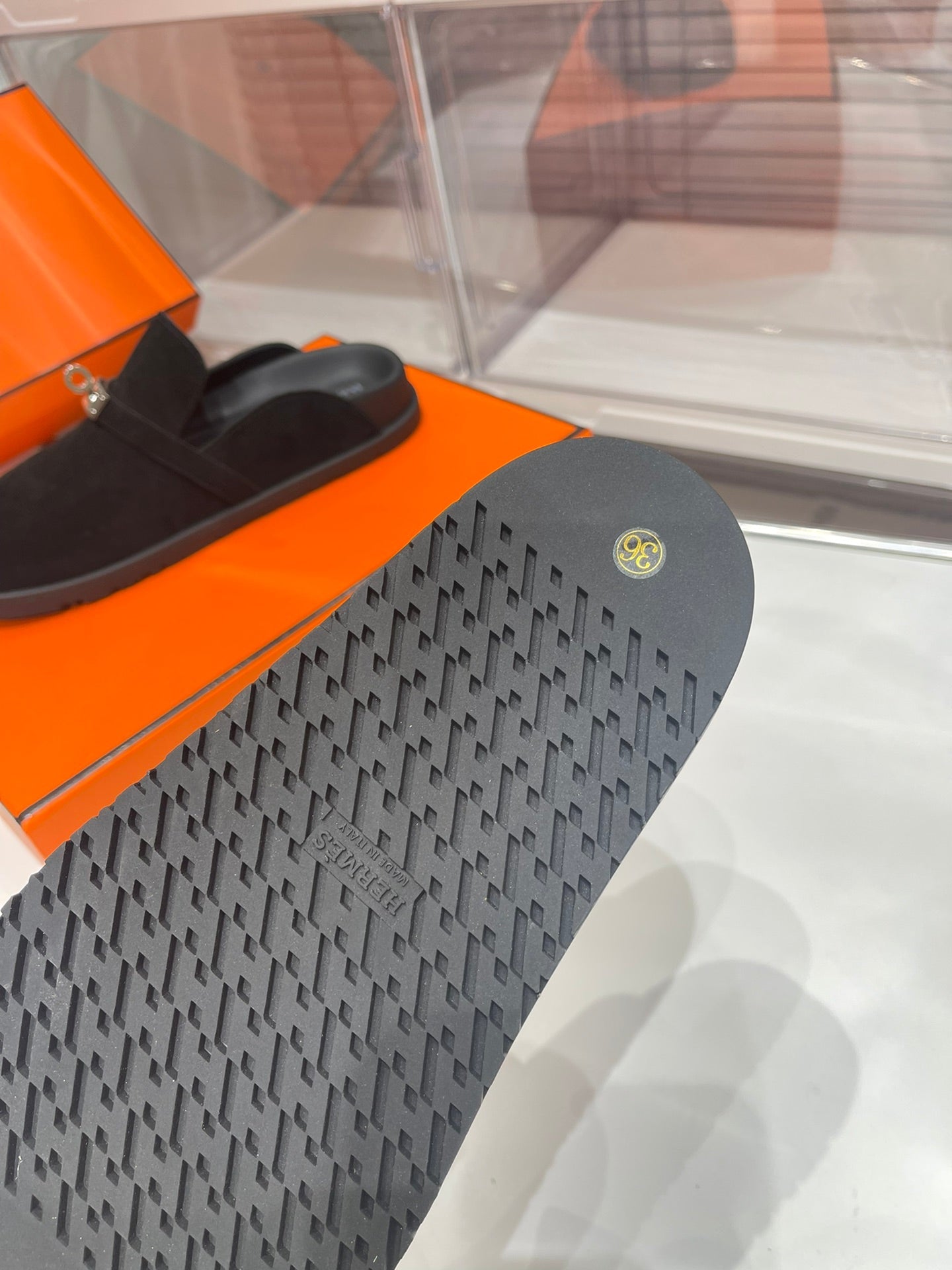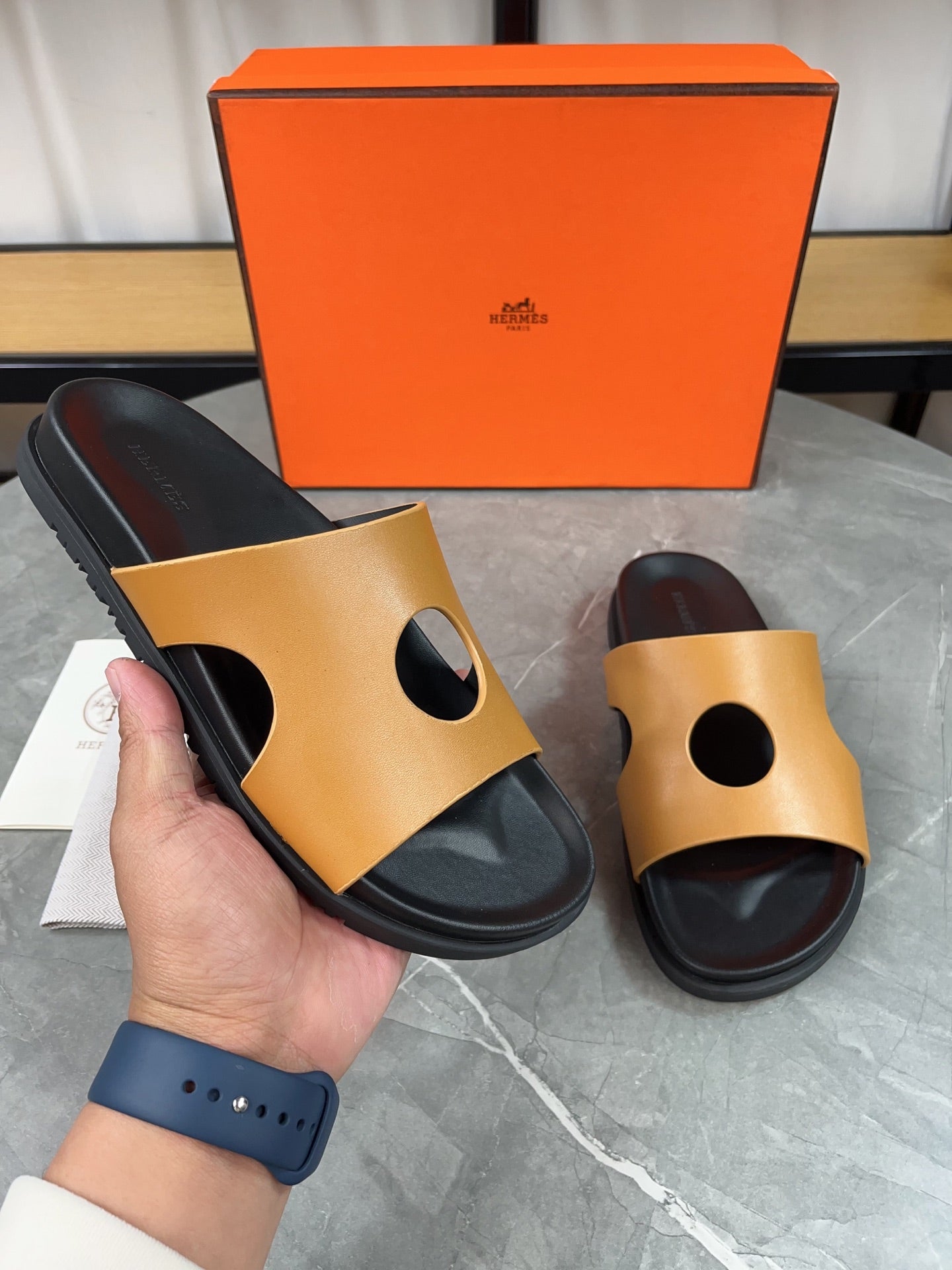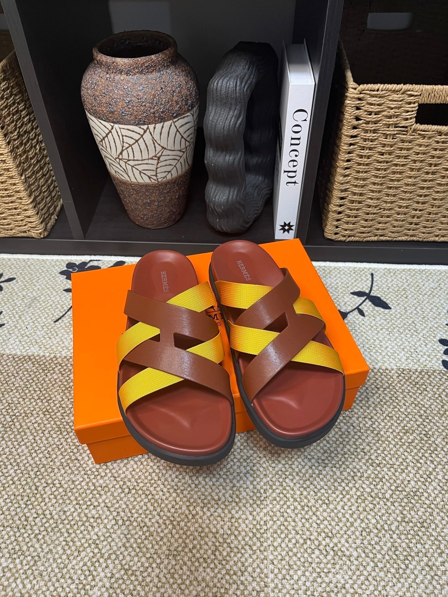 HM Men's Kazimir Slide Black Orange Calfskin 562774