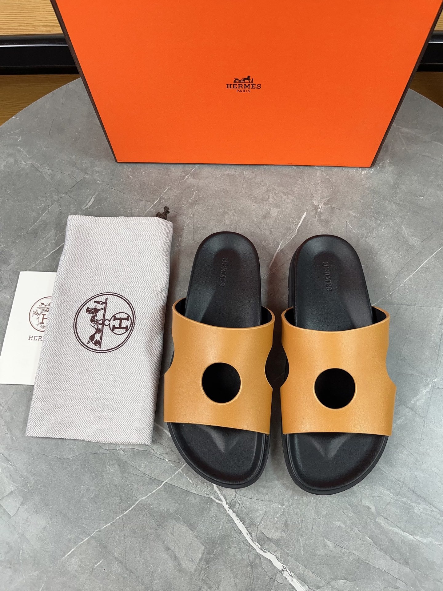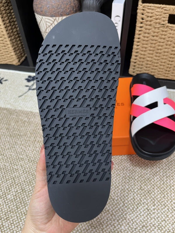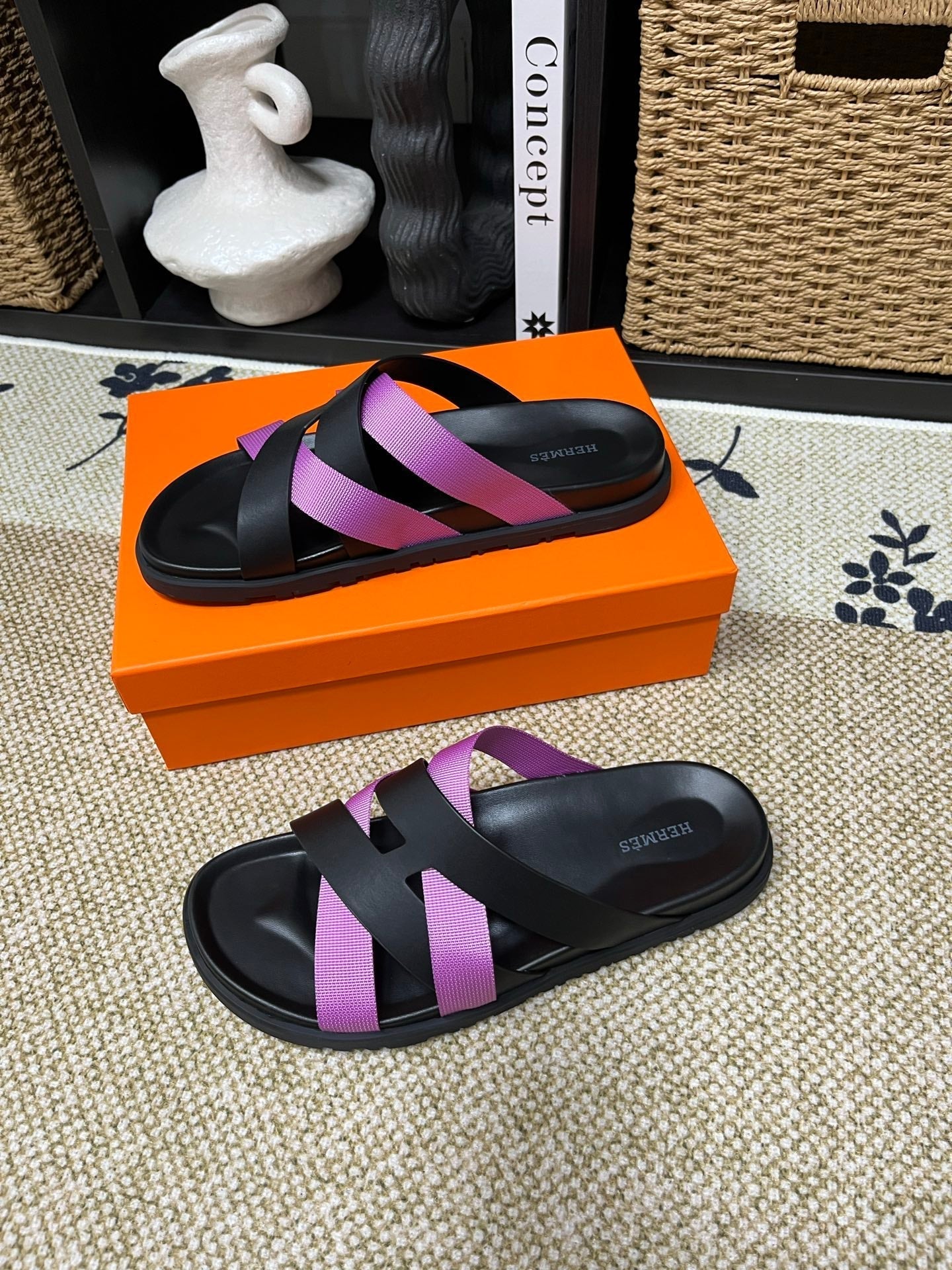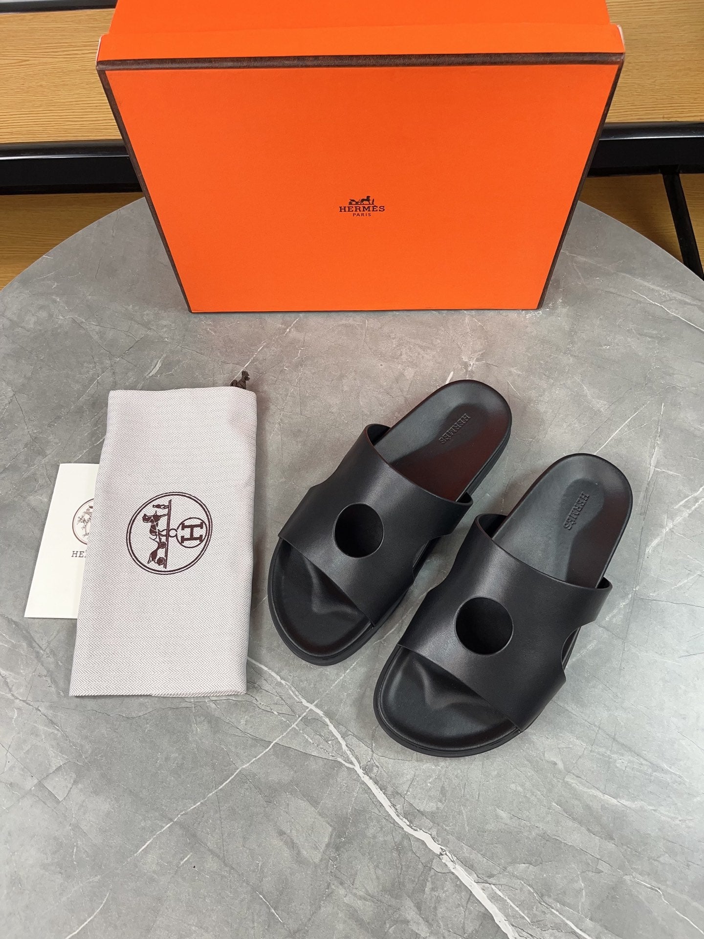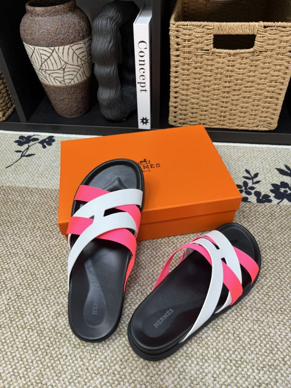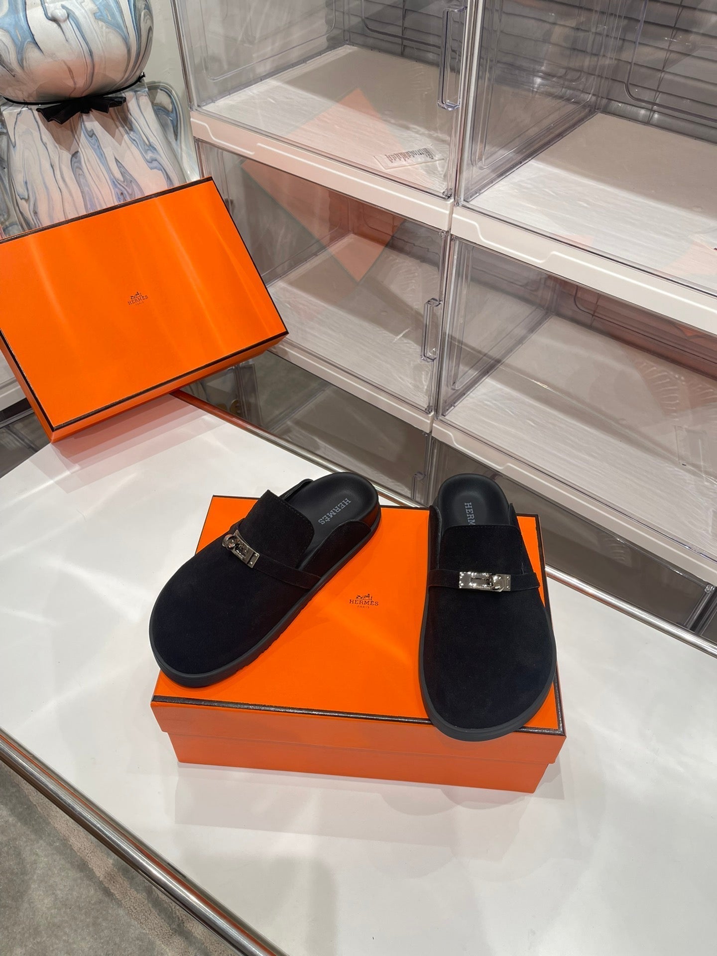 HM Men's Kazimir Slide Black Orange Calfskin 562774
