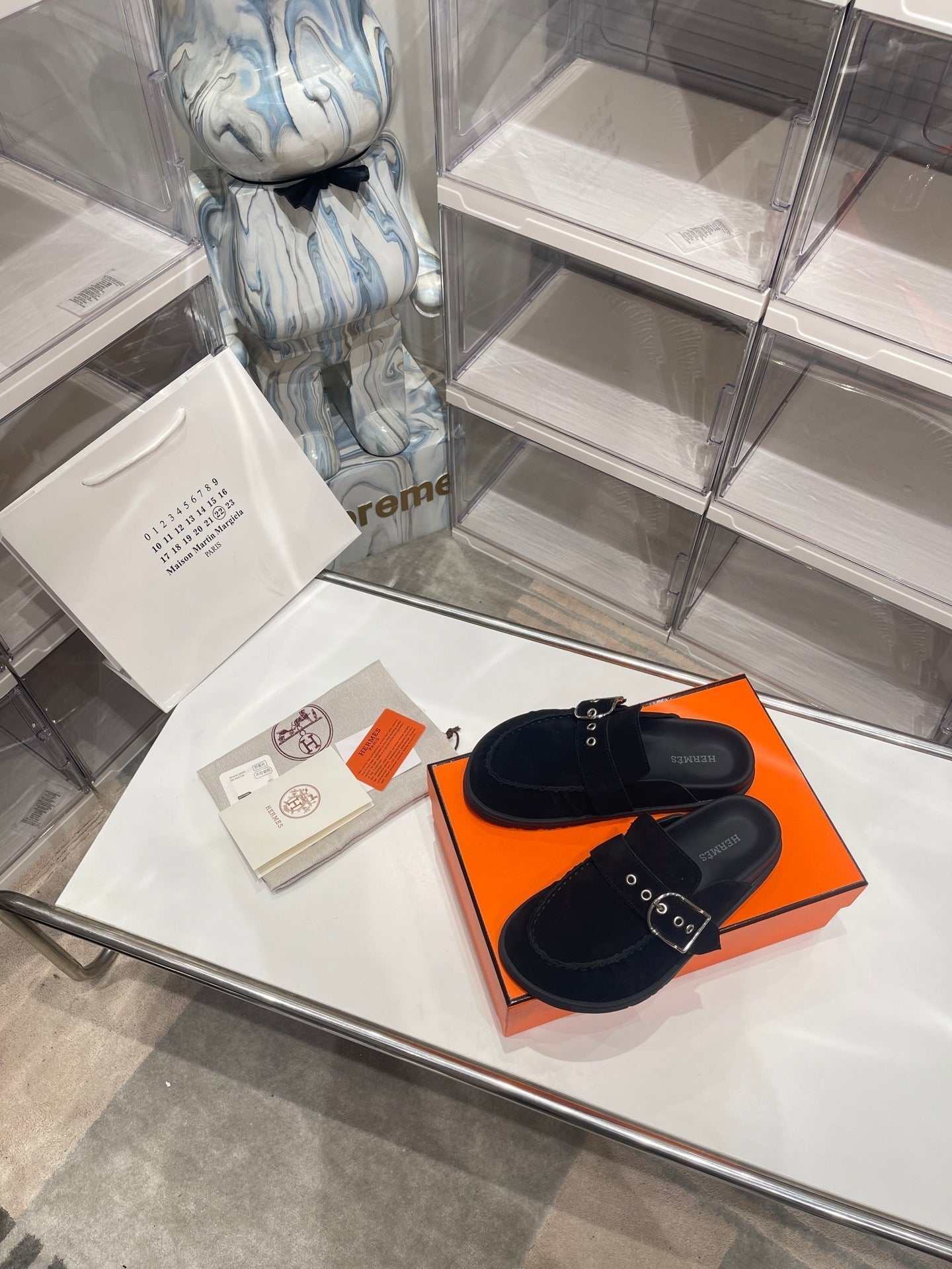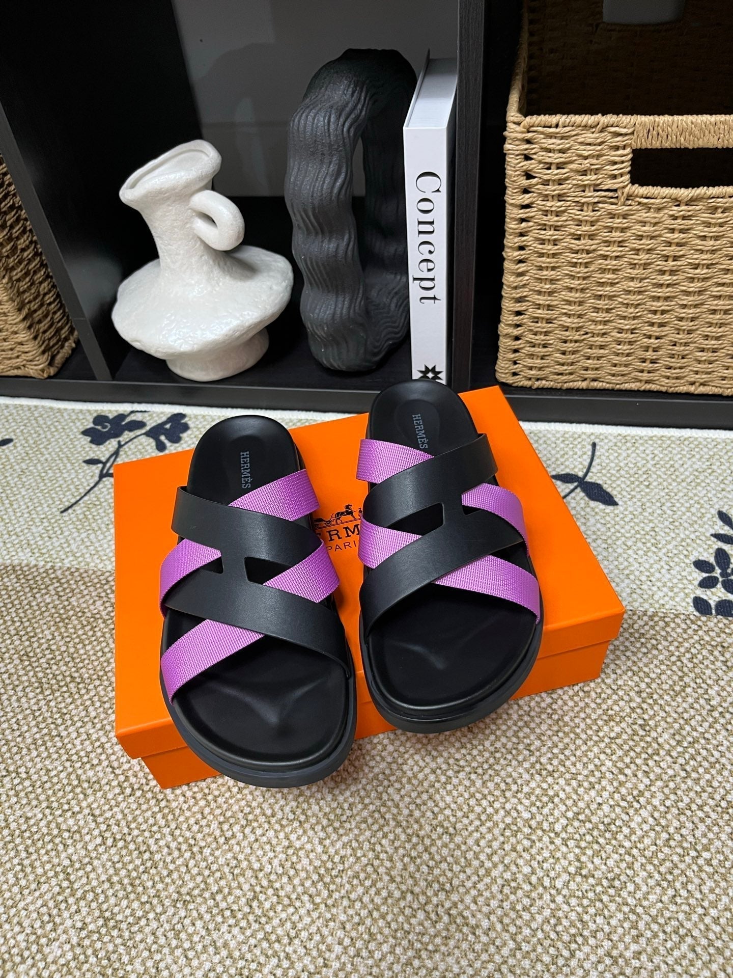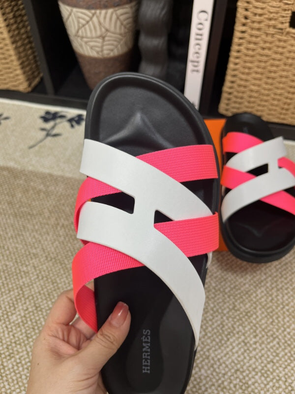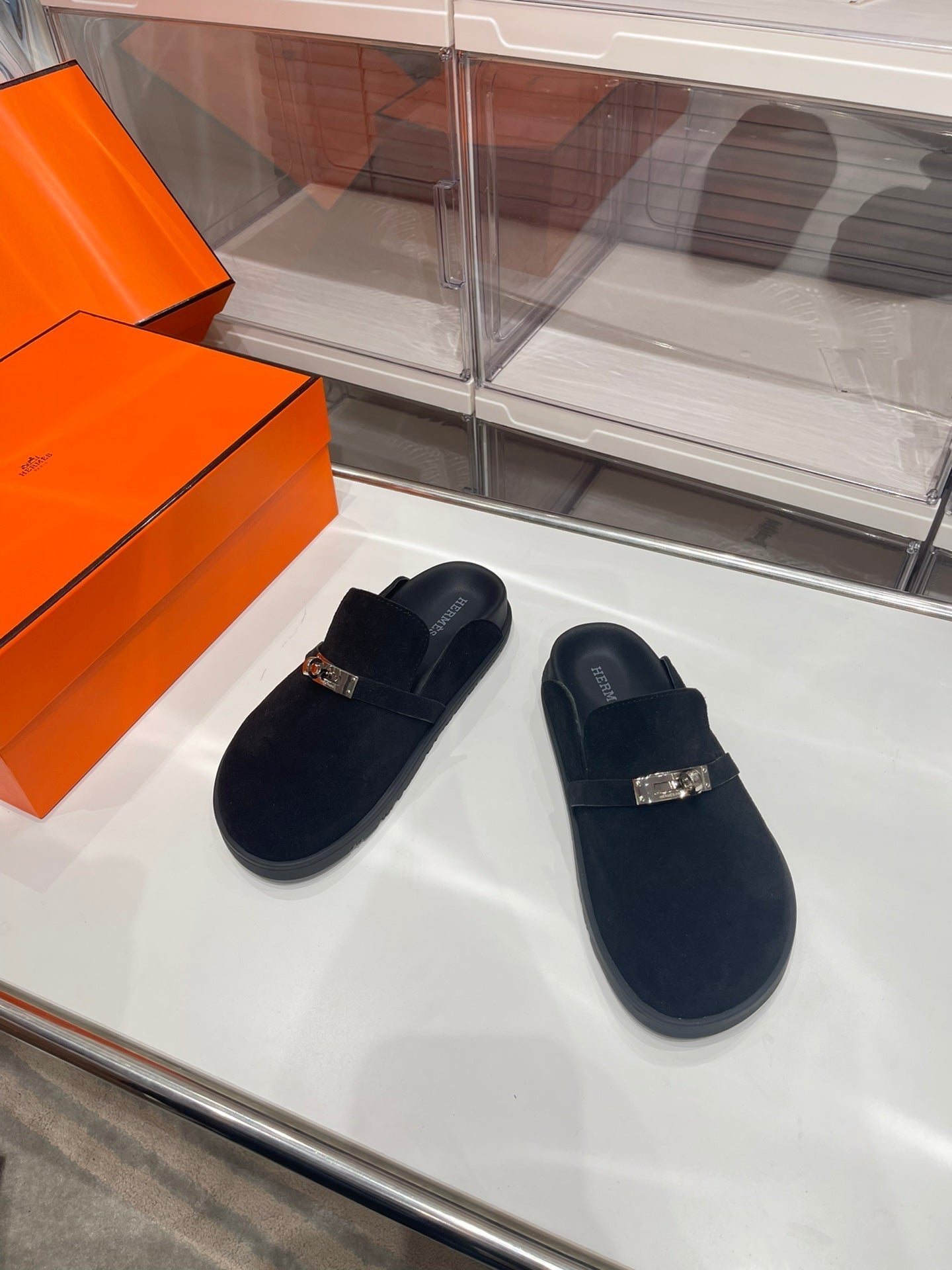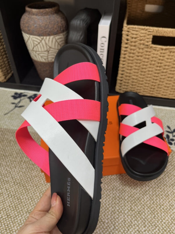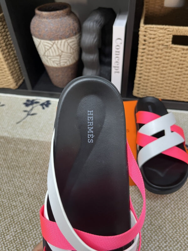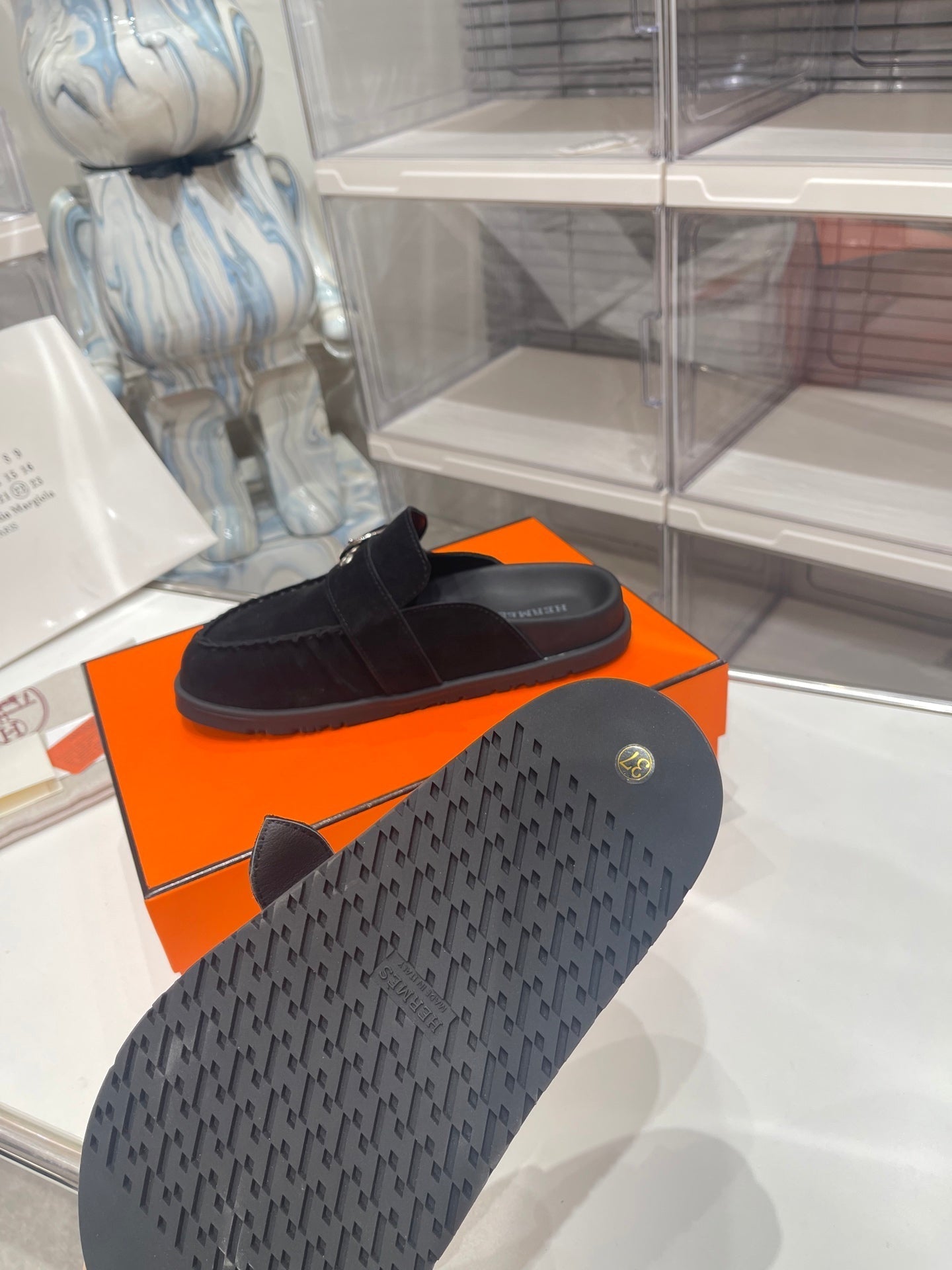 HM Men's Kazimir Slide Black Orange Calfskin 562774