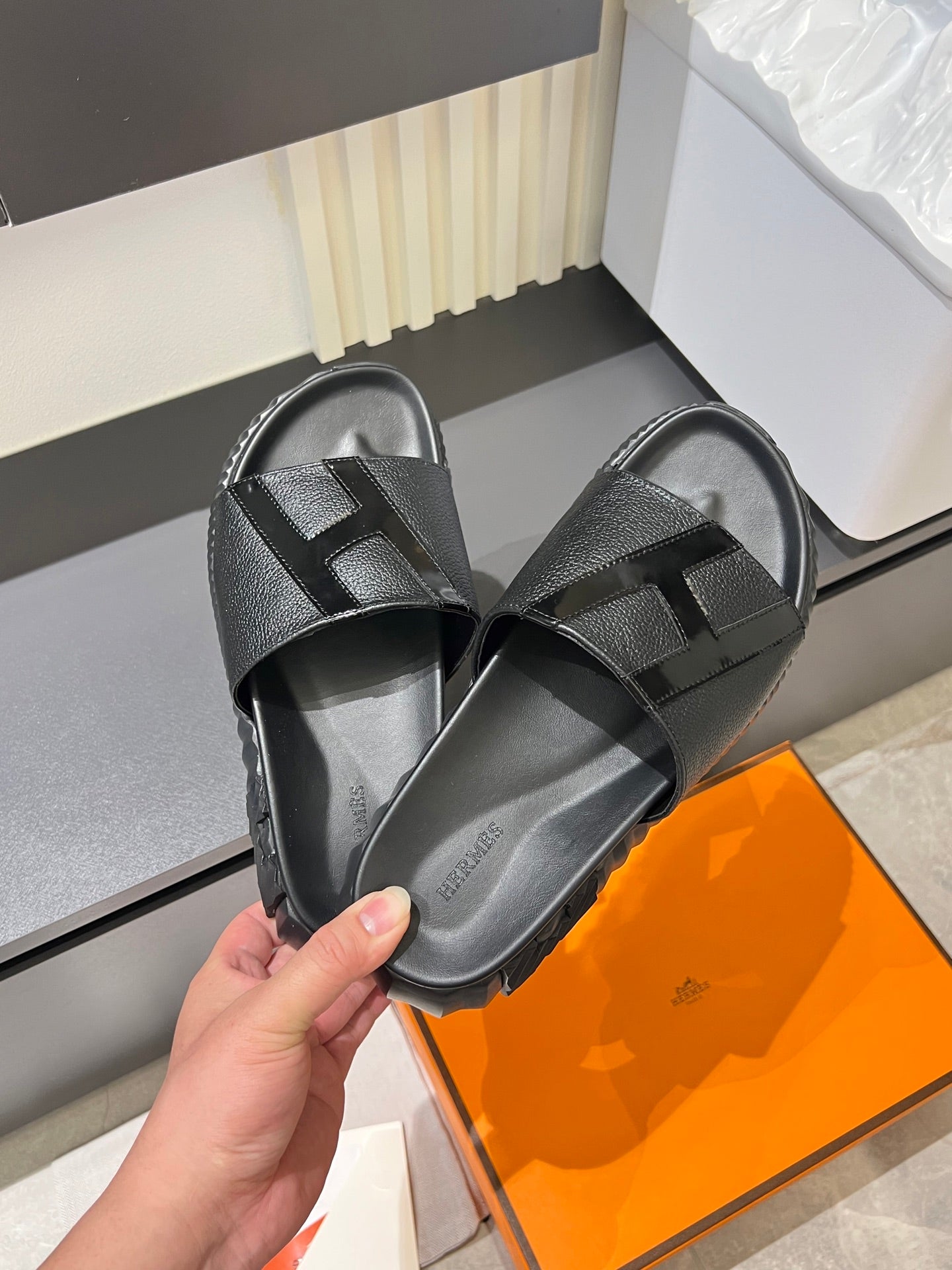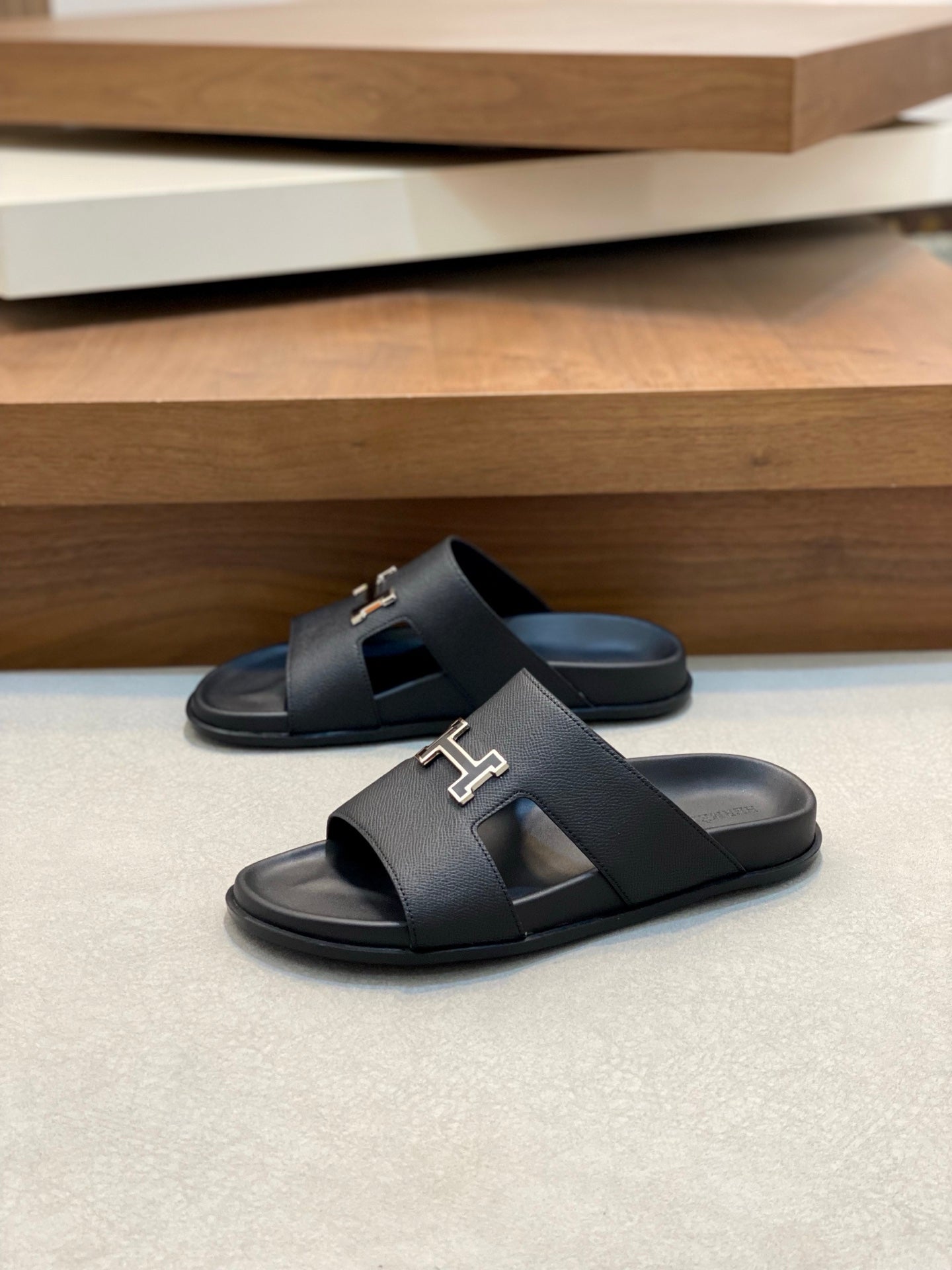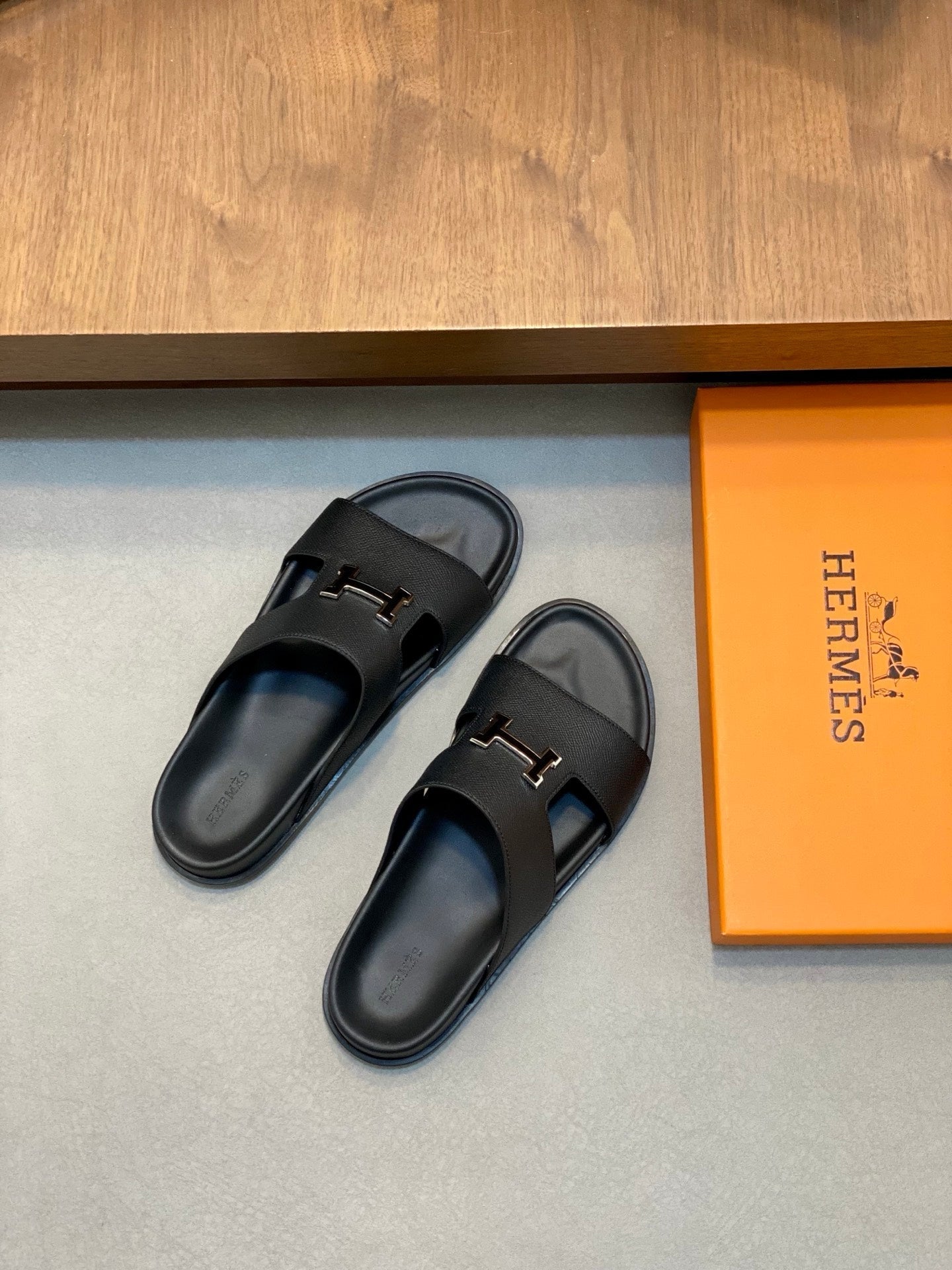 HM Men's Kazimir Slide Black Silver Calfskin 562771