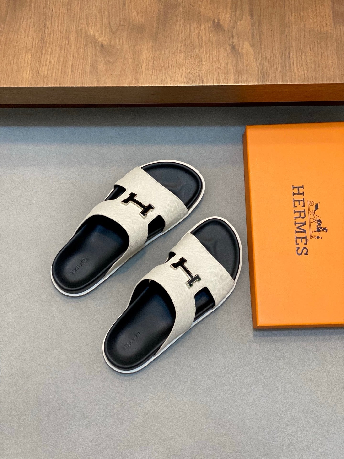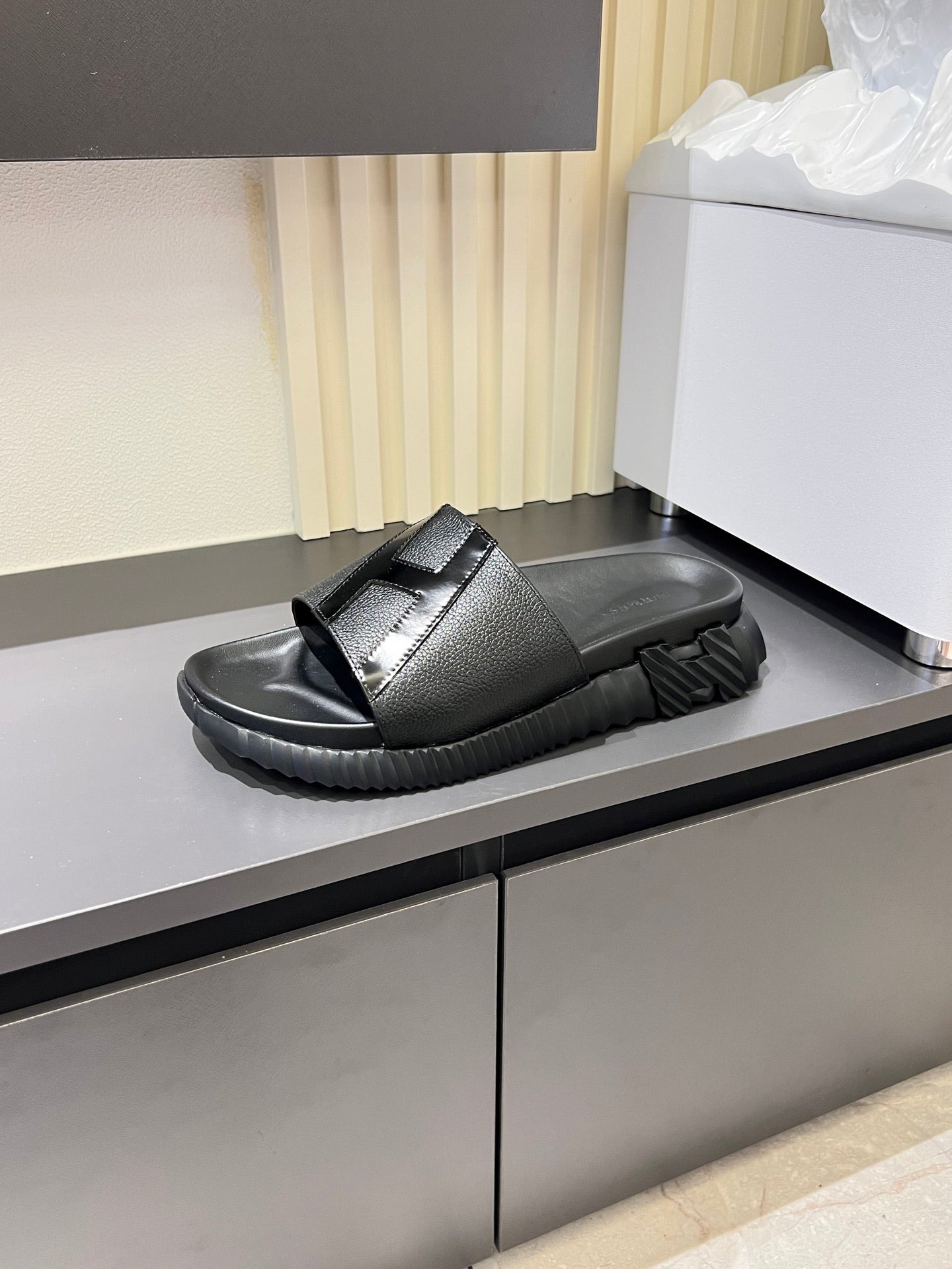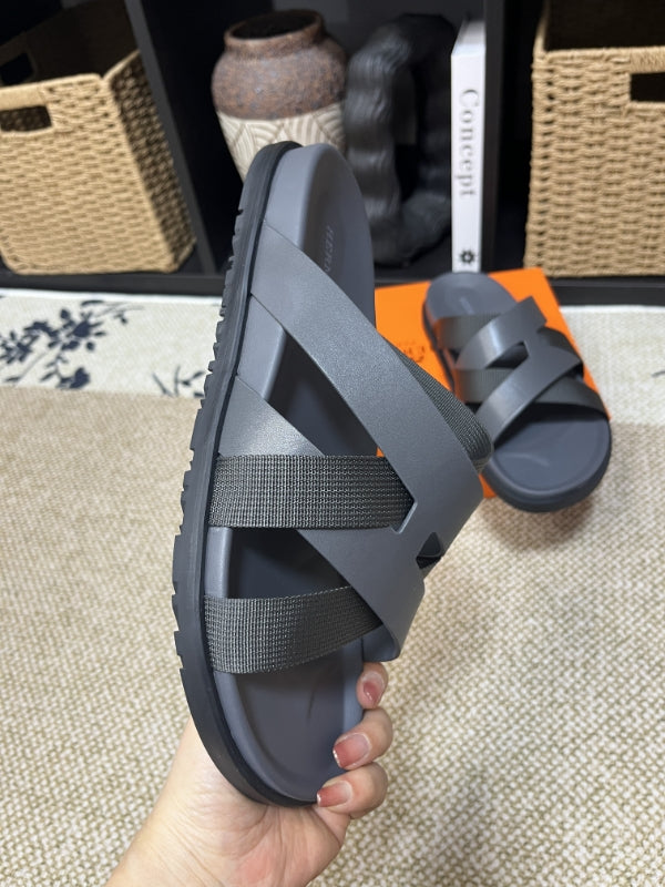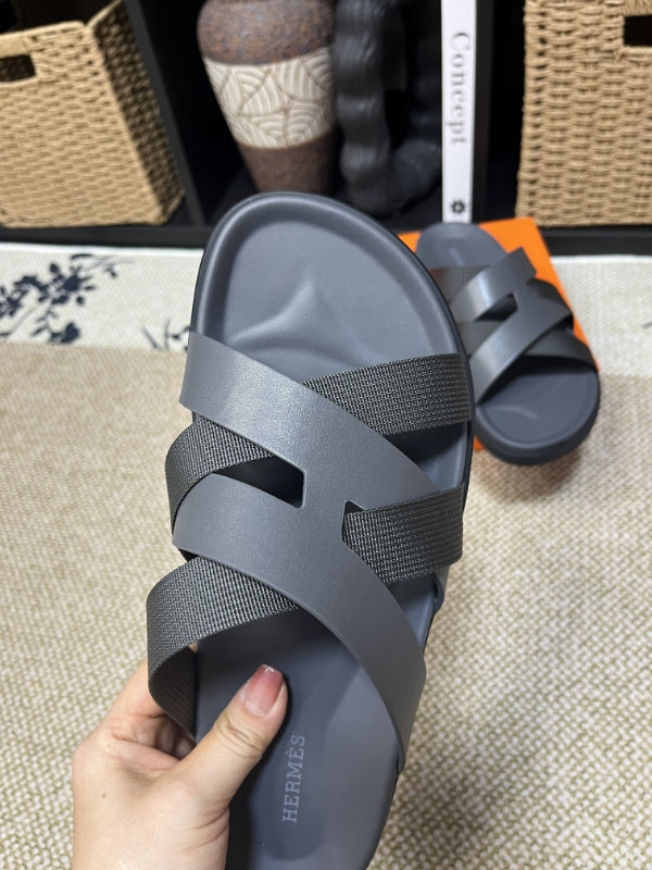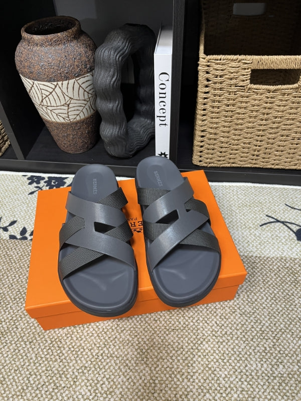 HM Men's Kazimir Slide Black Silver Calfskin 562771