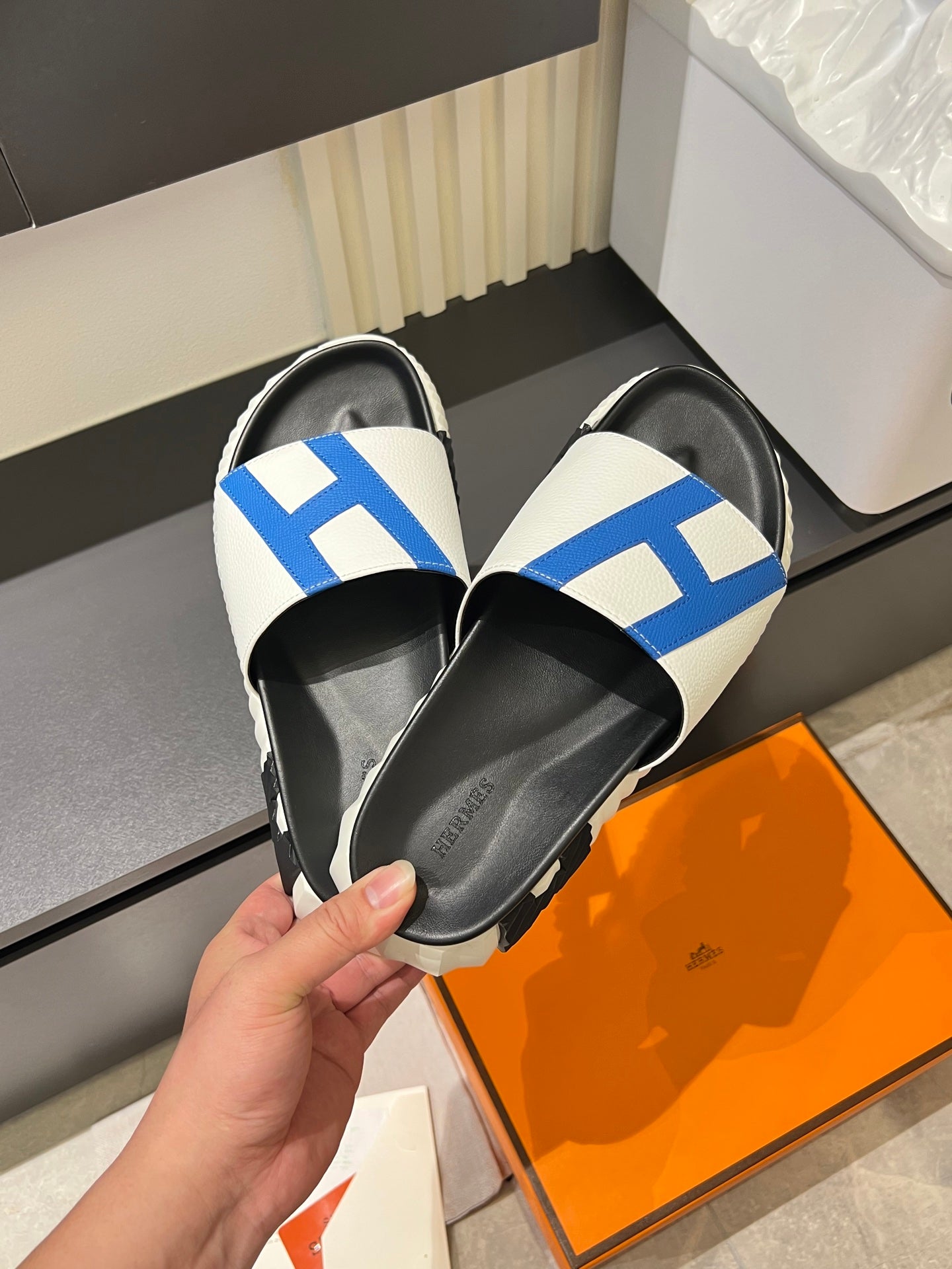 HM Men's Kazimir Slide Blue White Calfskin 562777