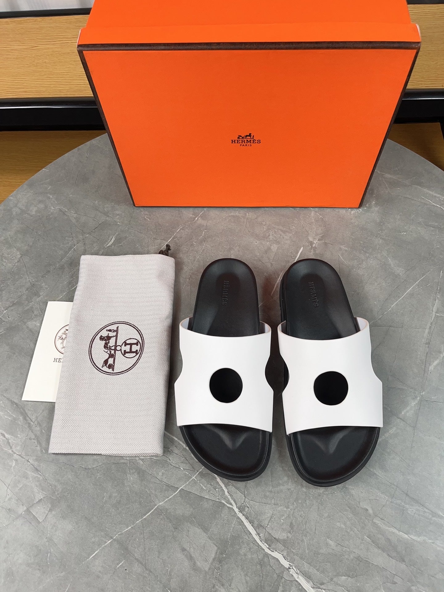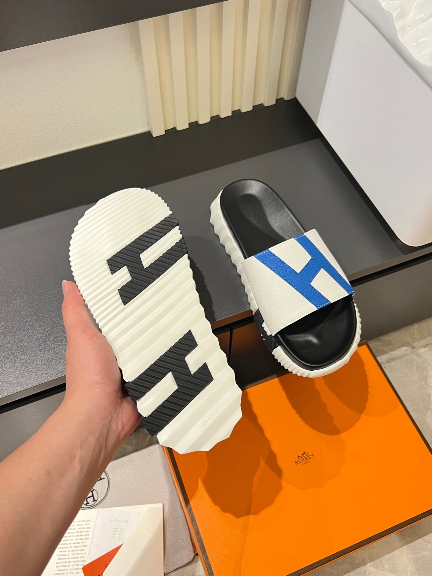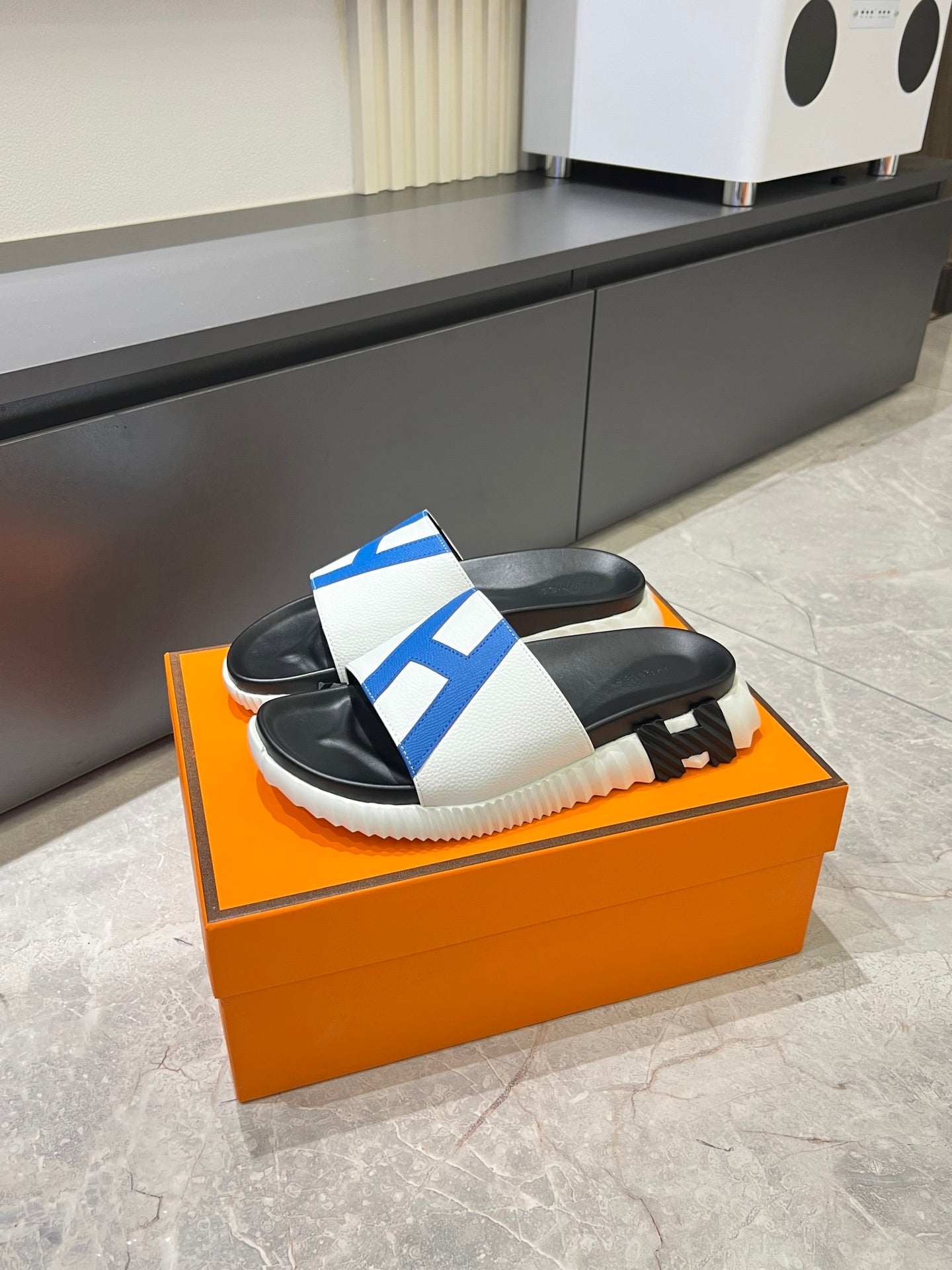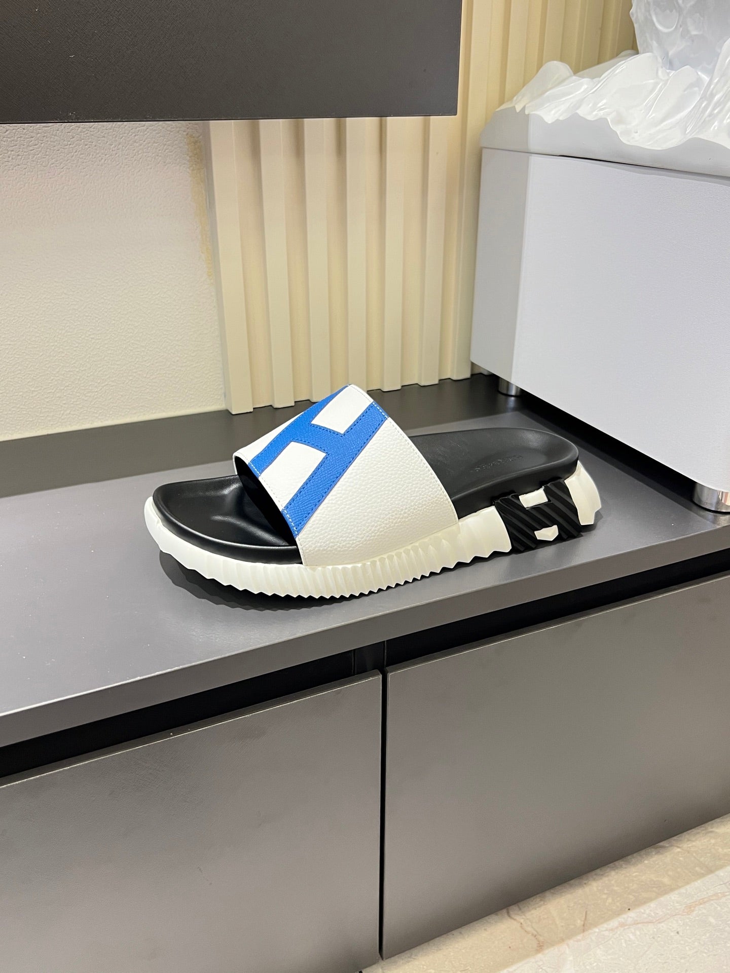 HM Men's Kazimir Slide Navy Blue White Calfskin 562773