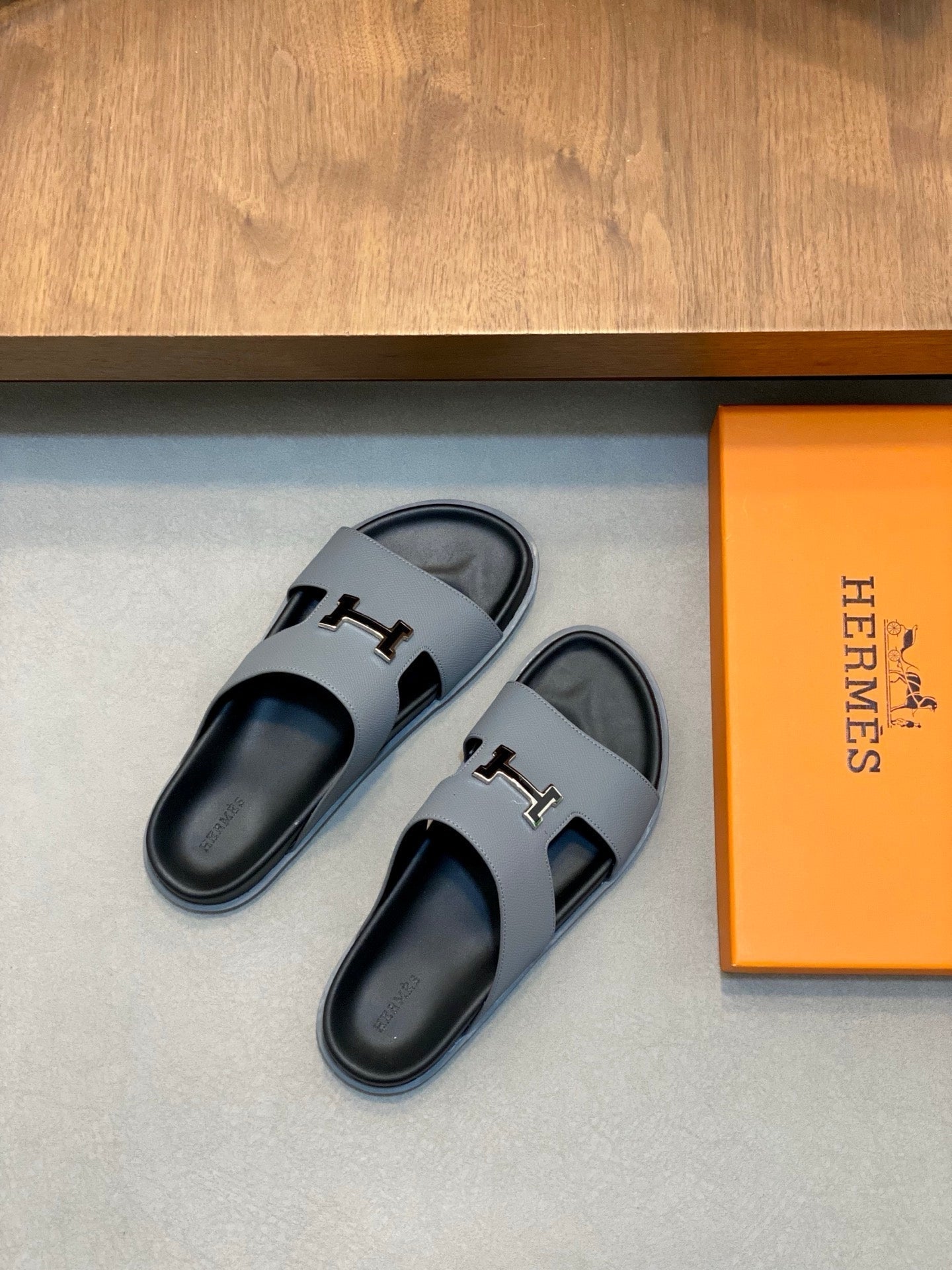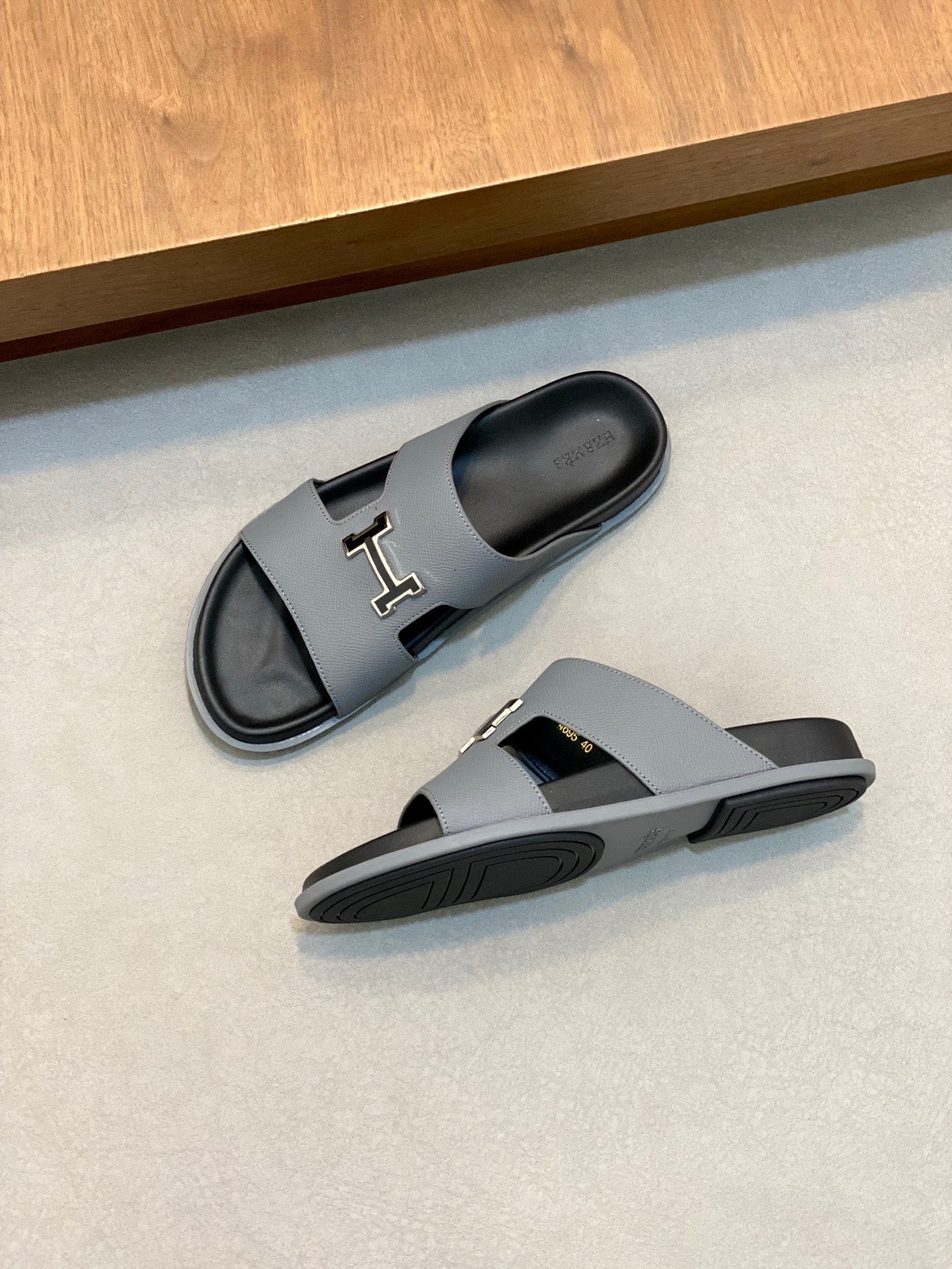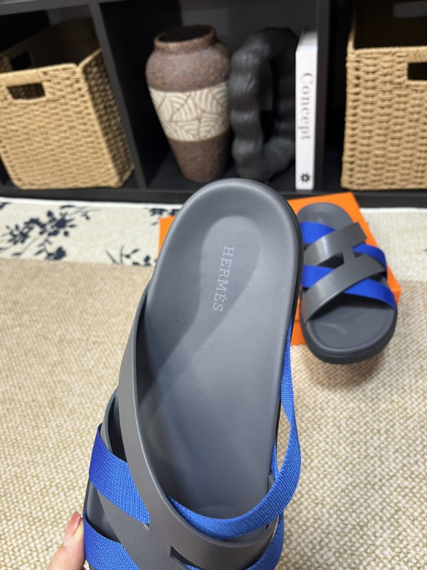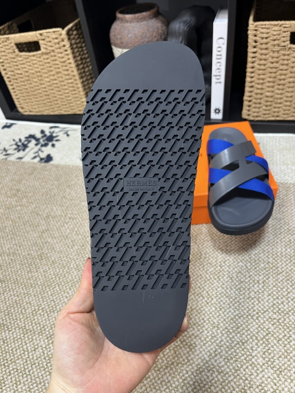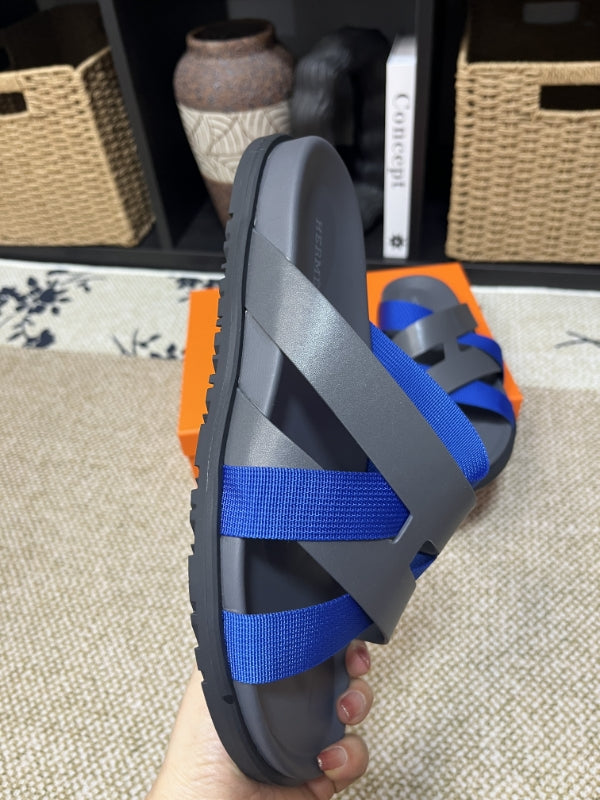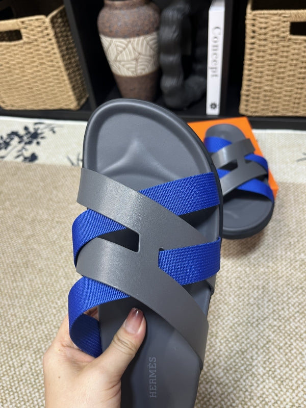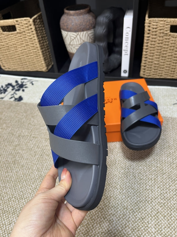 HM Men's Slide Navy Blue Cowhide Leather 588997