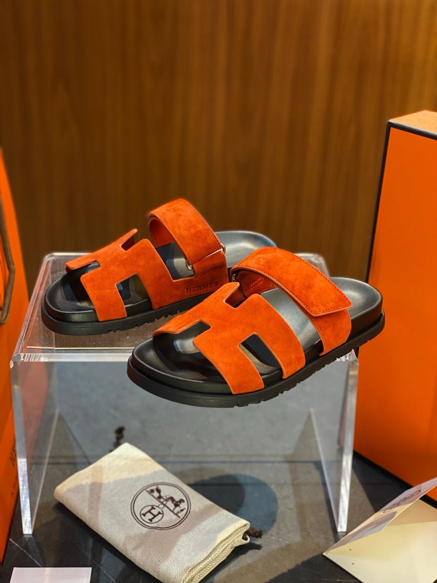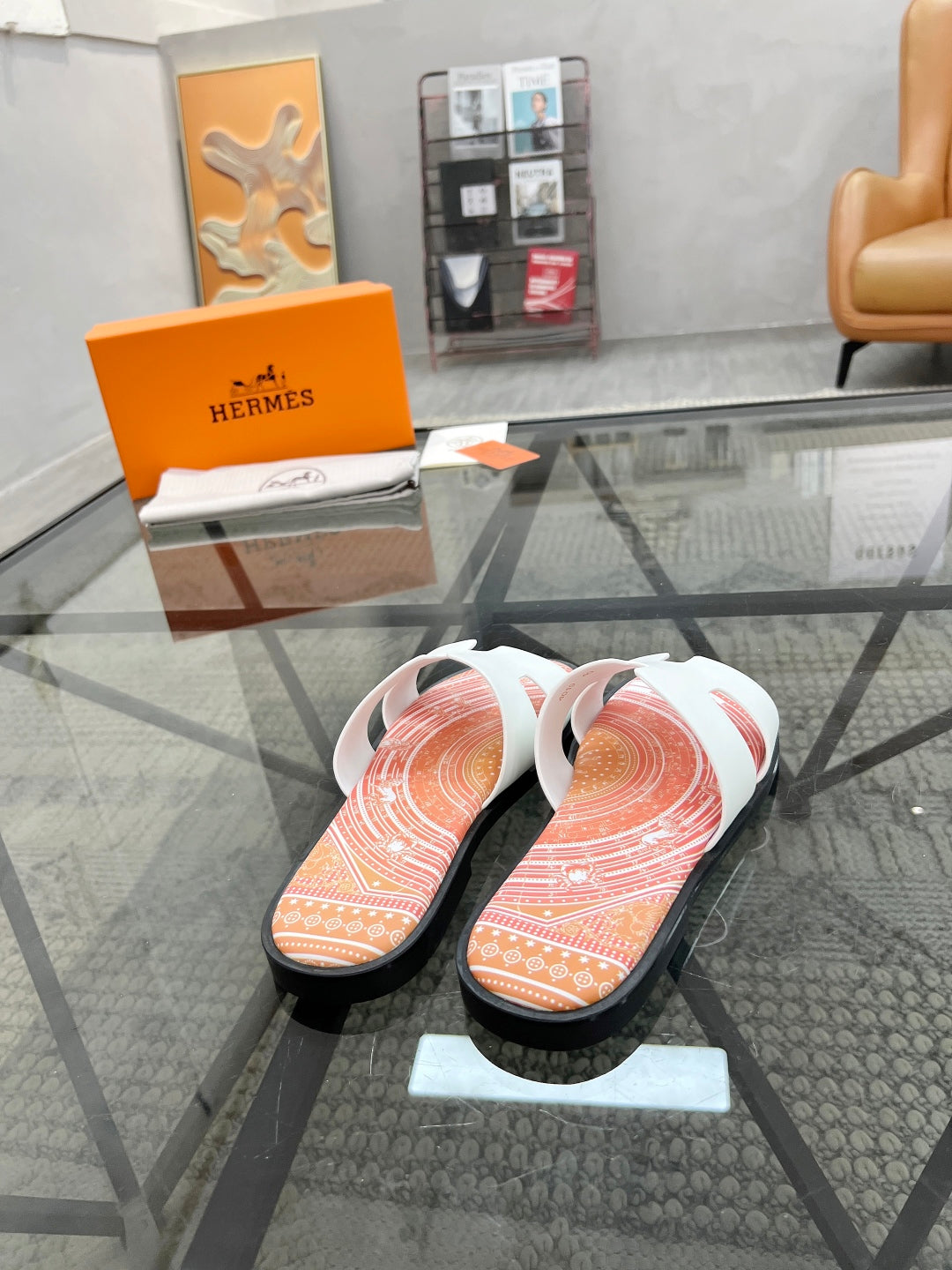 HM Men's Cross Strap Slide Orange Cowhide 544098