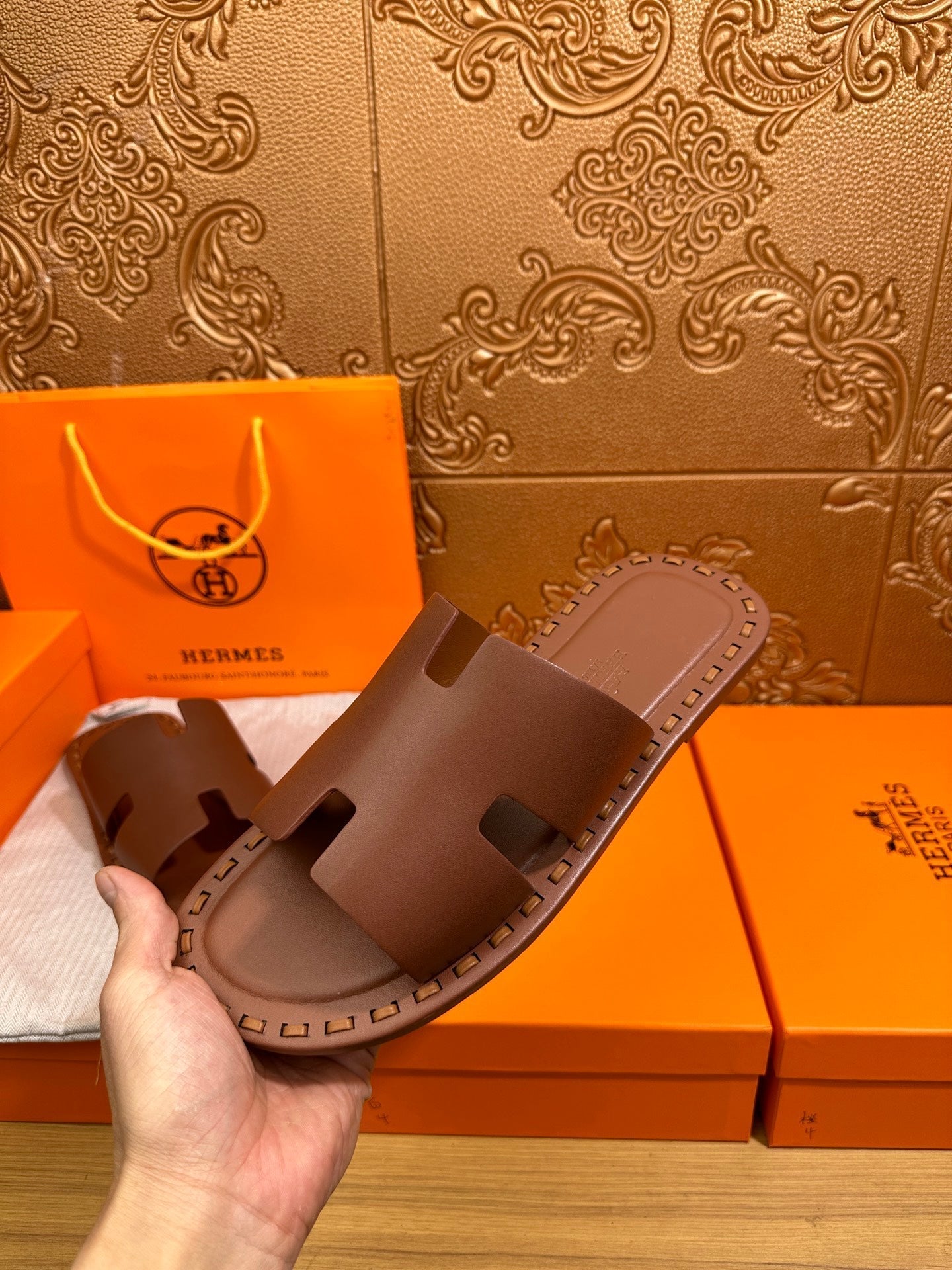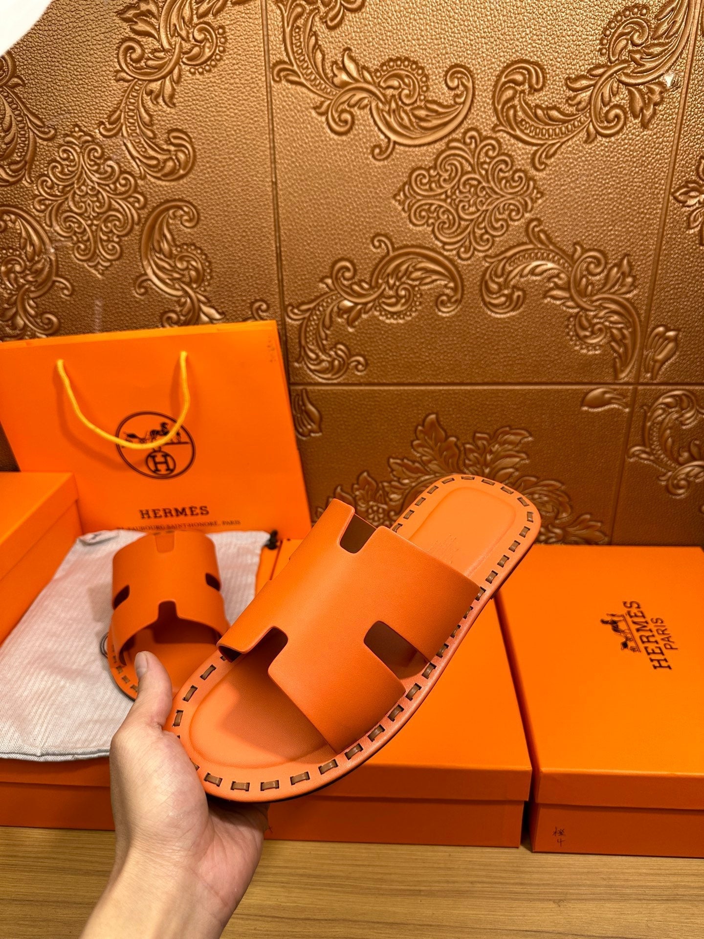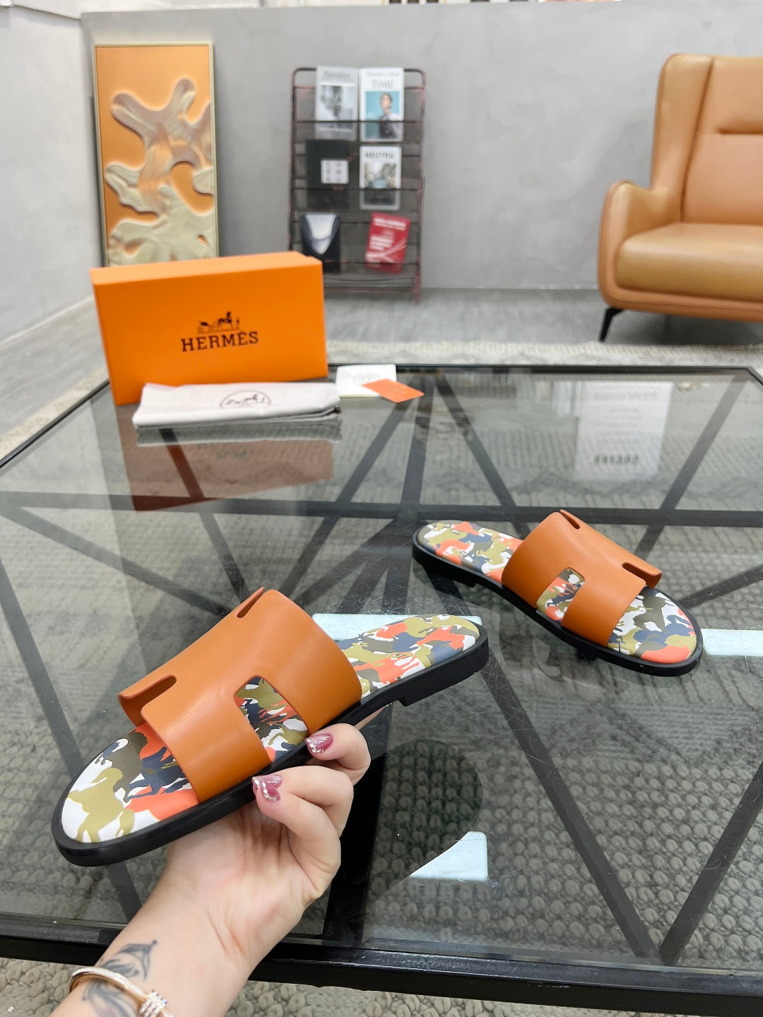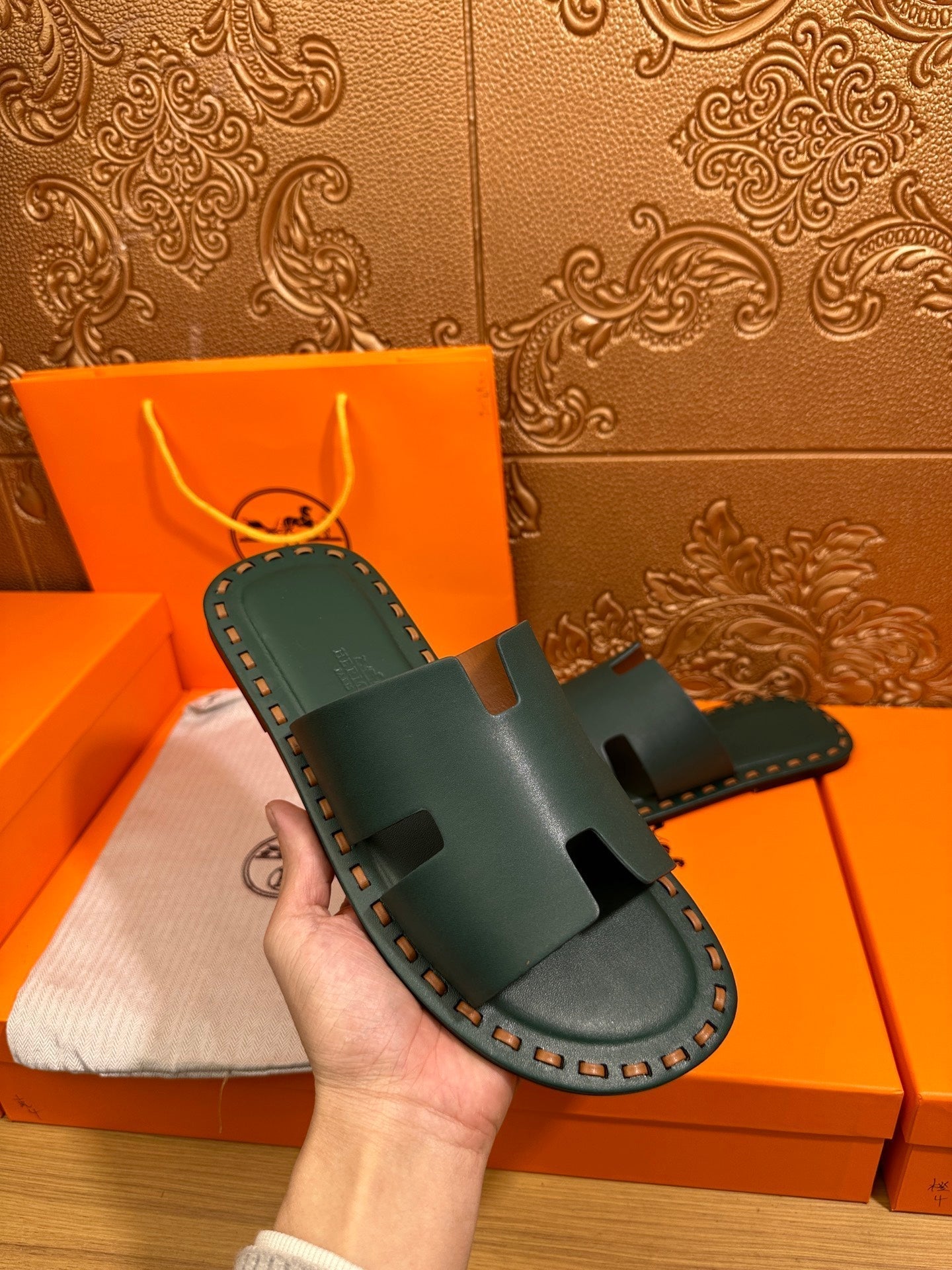 HM Men's Izmir Slide Orange Cowhide 544058