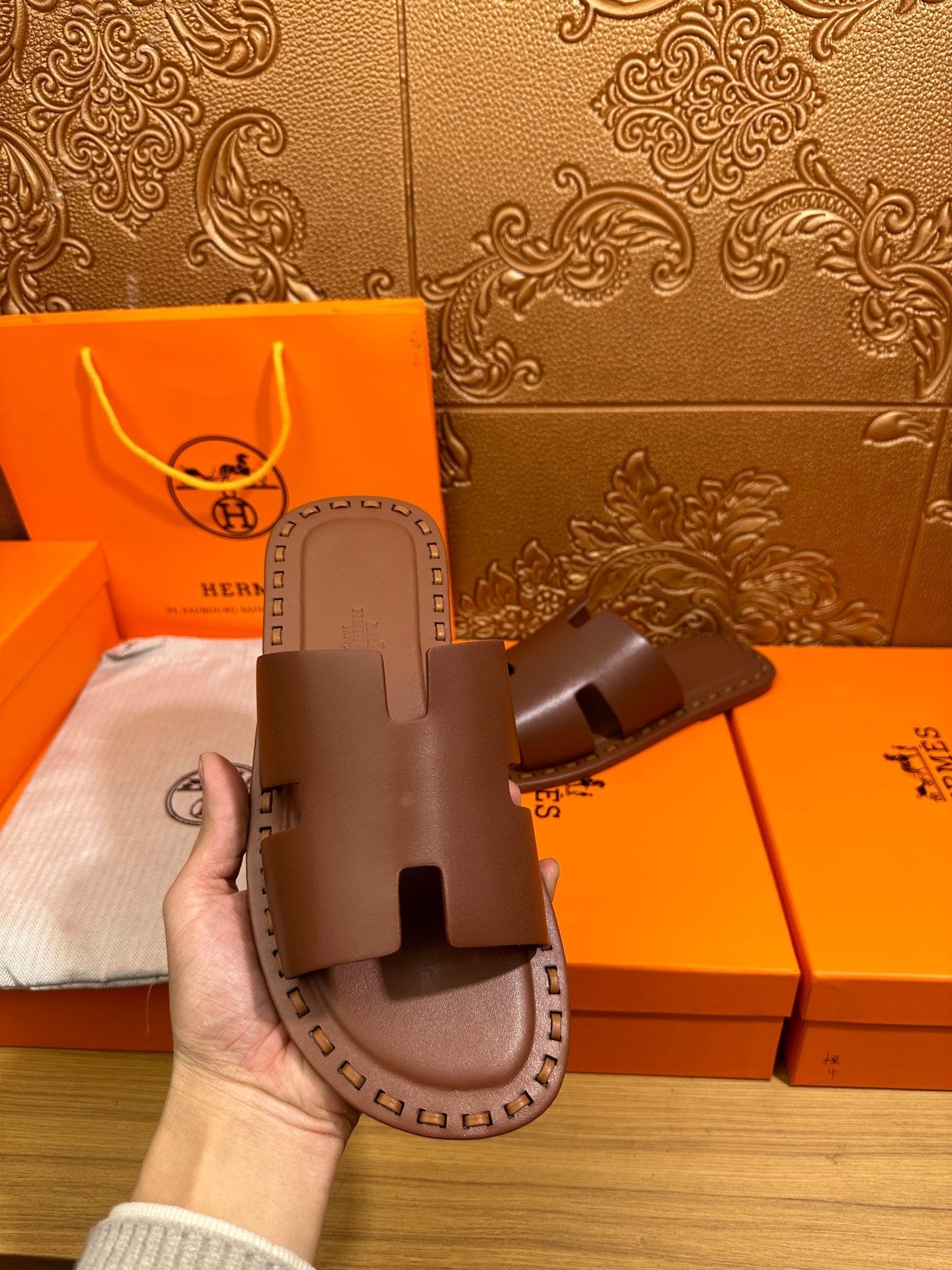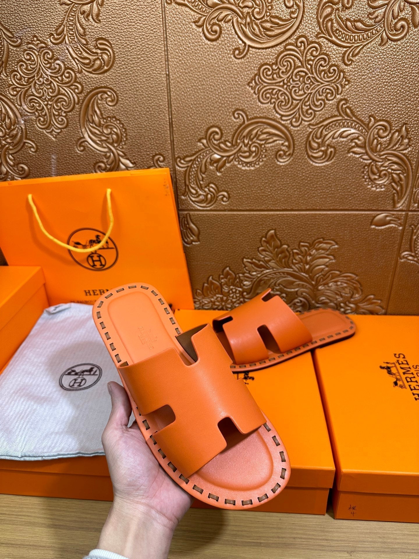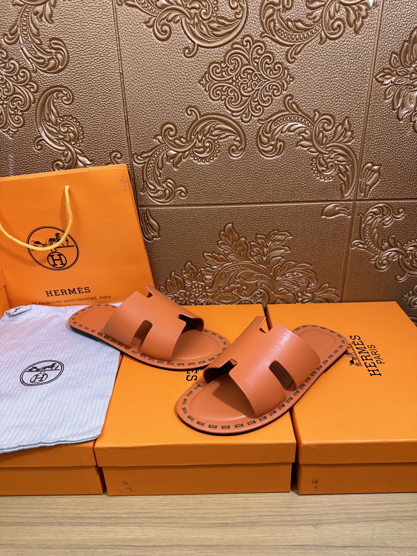 HM Men's Izmir Slide Orange Cowhide 544058