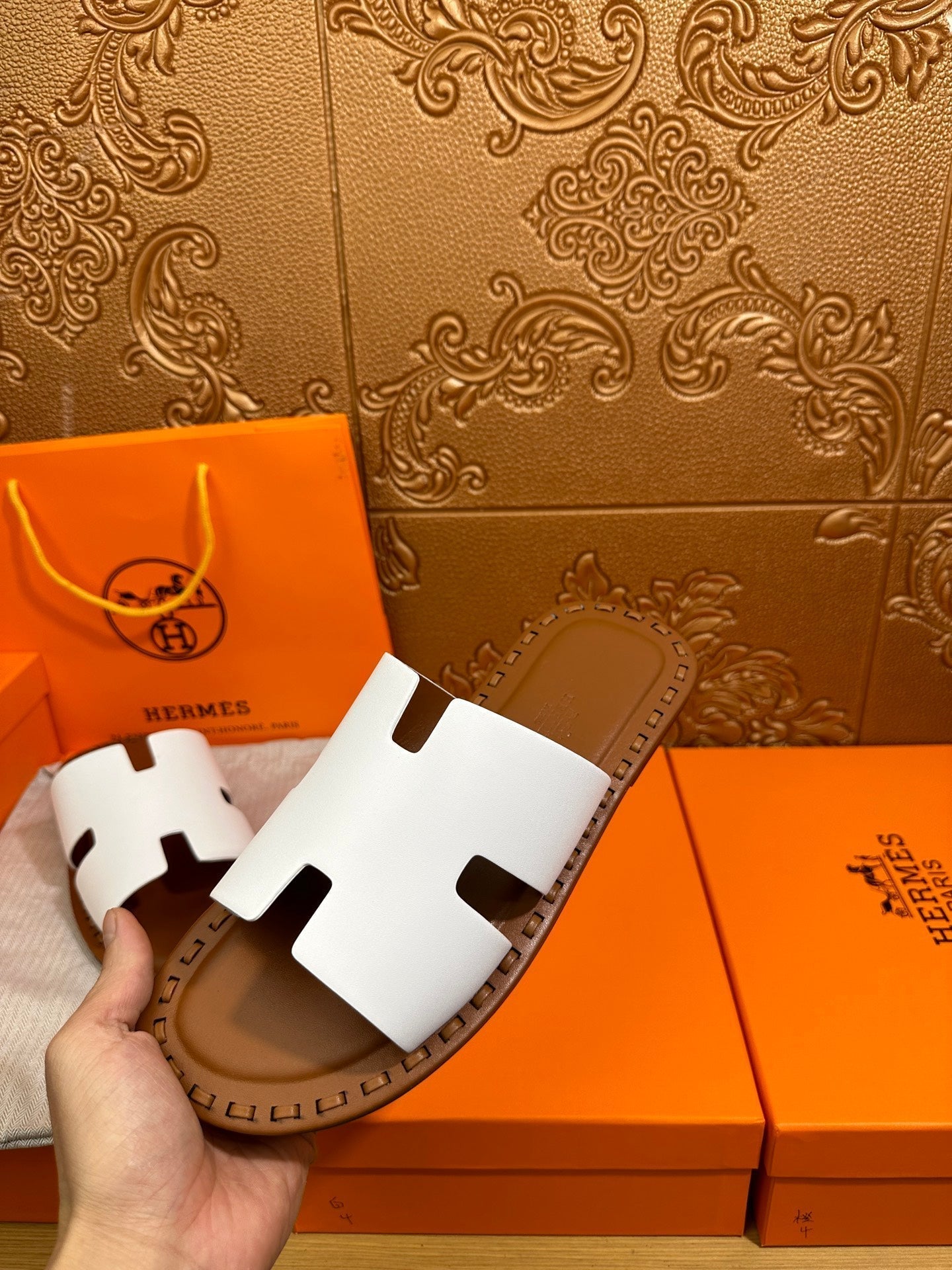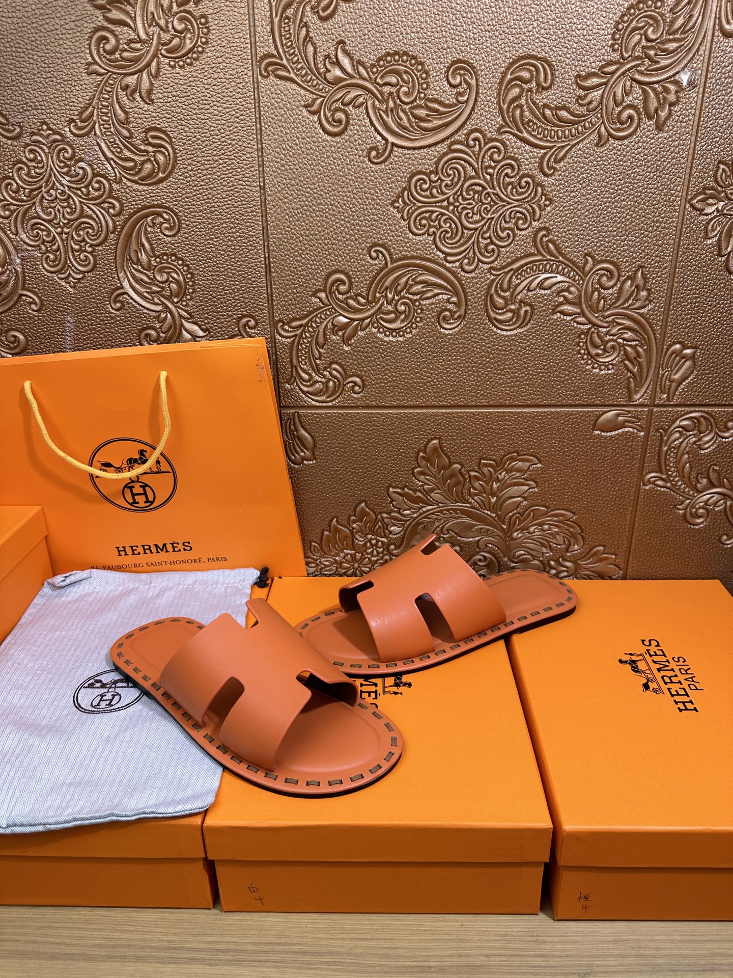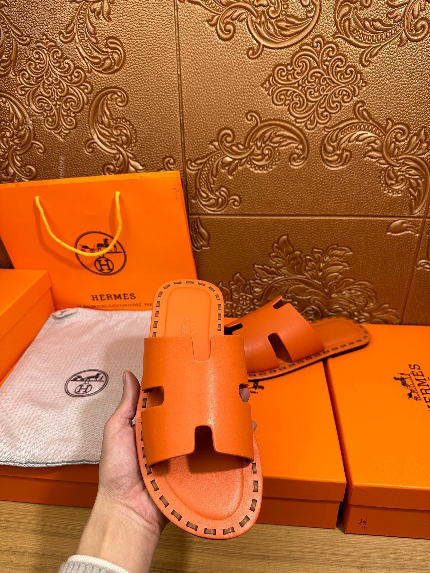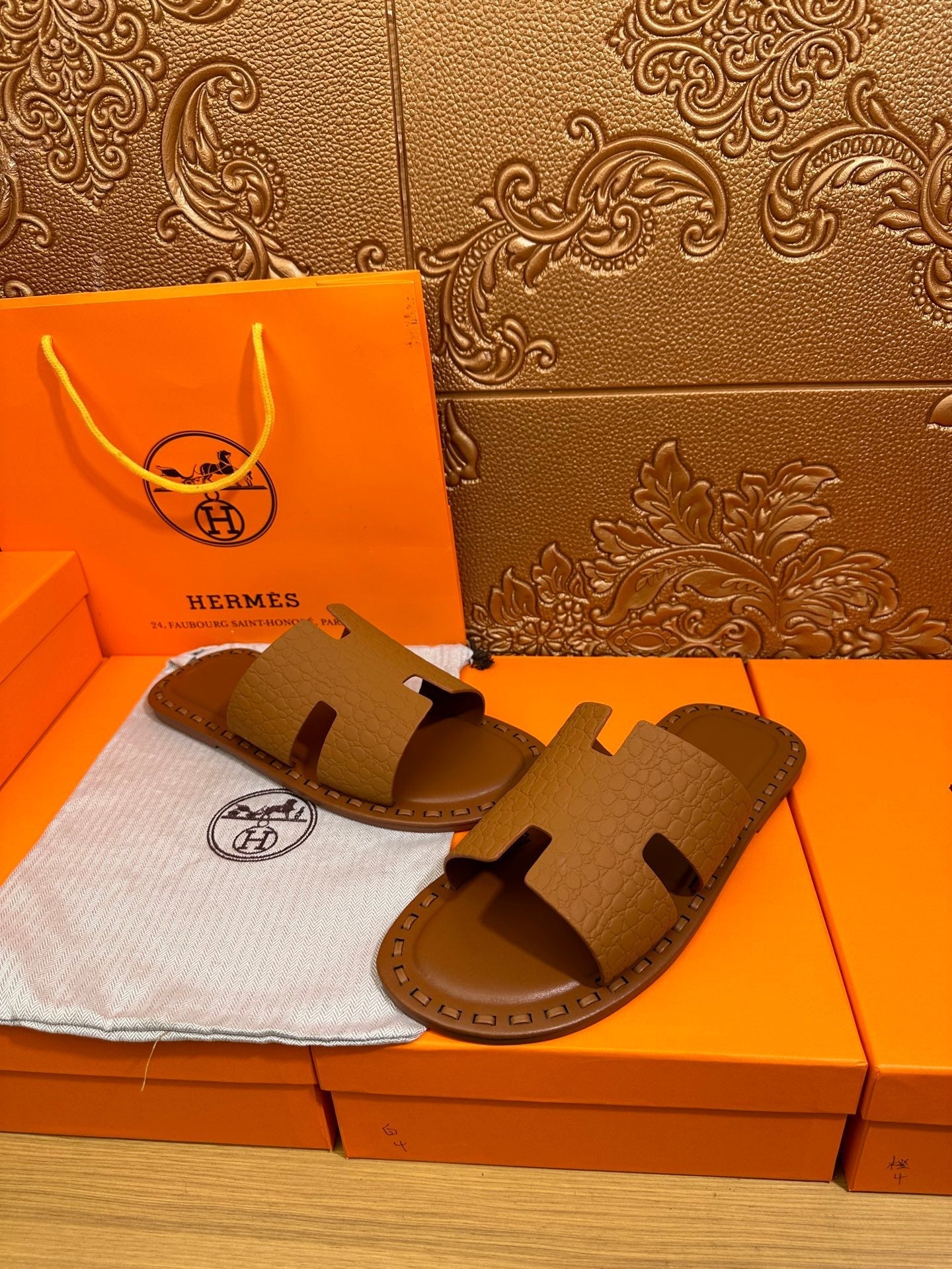 HM Men's Izmir Slide Orange Cowhide 544058