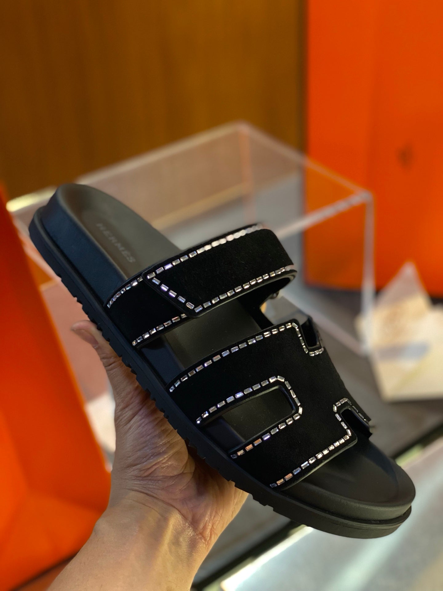 HM Men's Electric Sandals Black Calfskin 547685