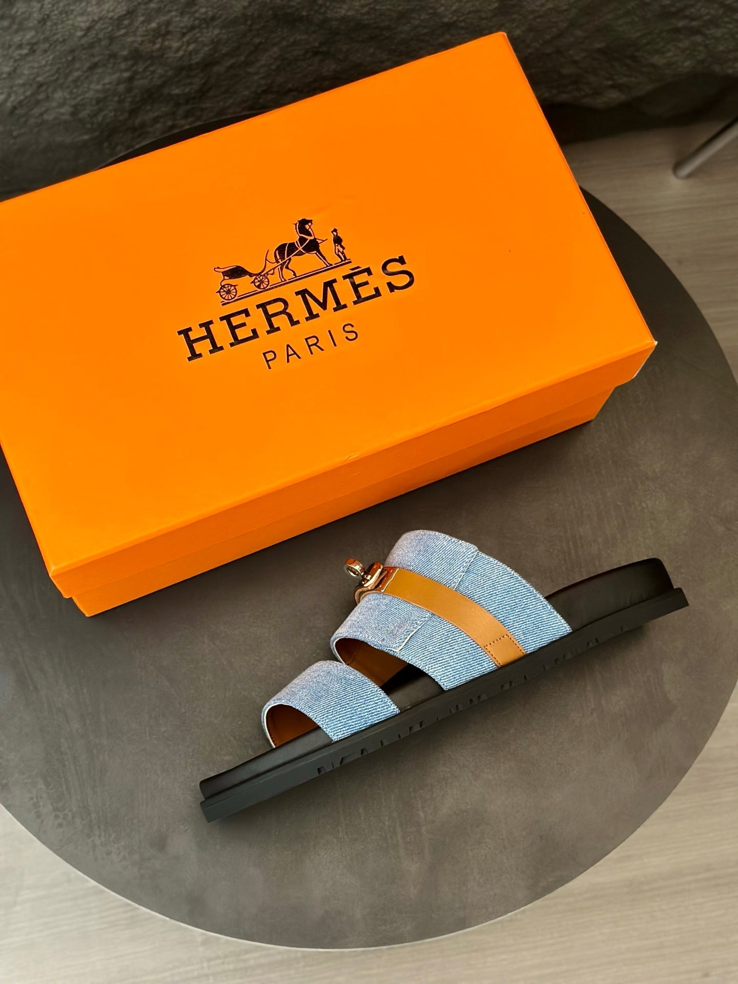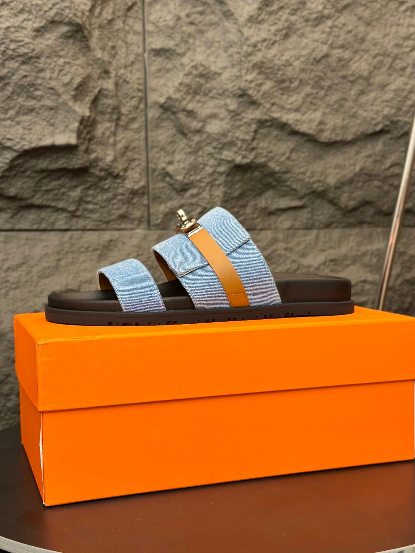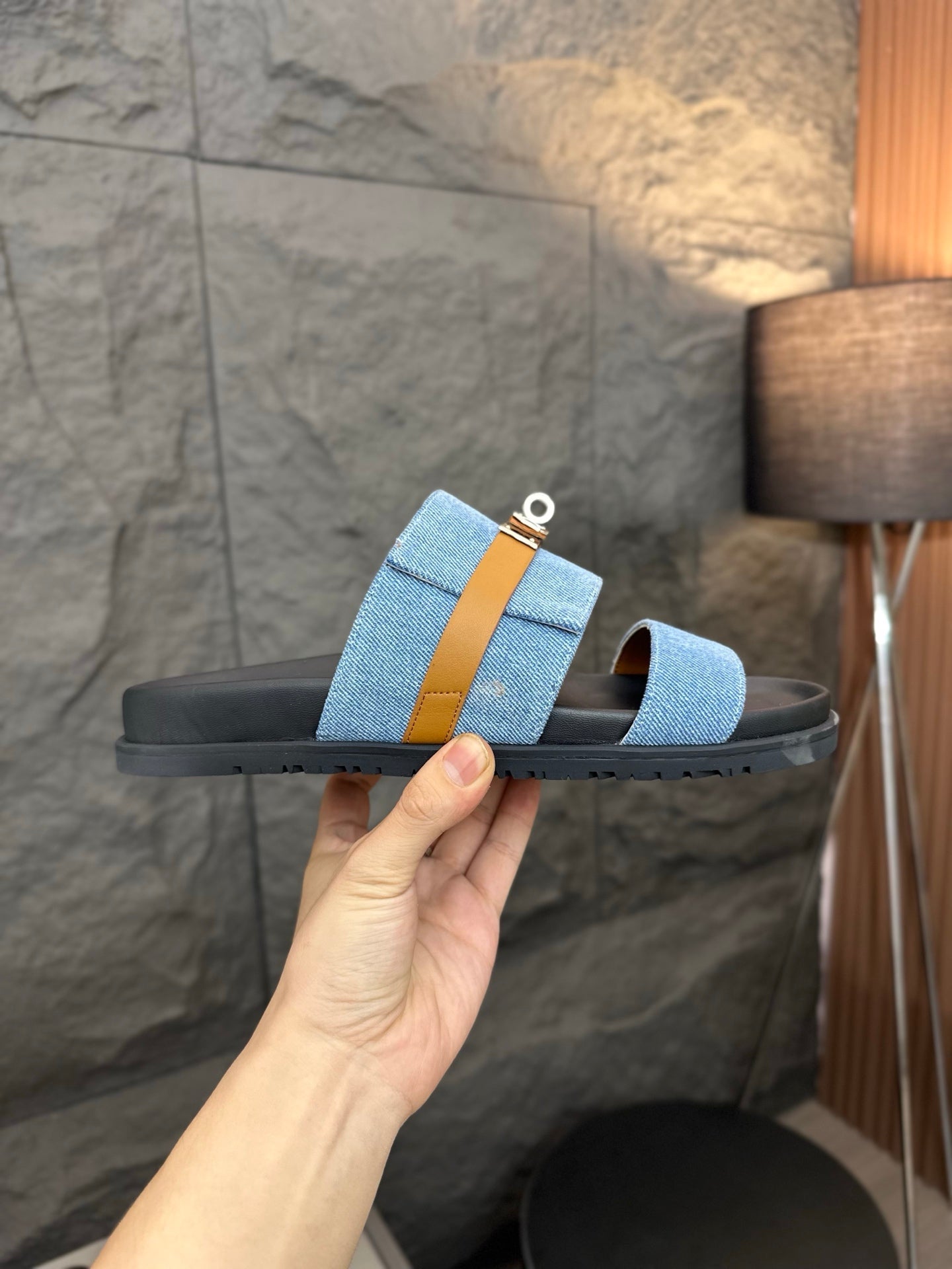HM Men's 25 Genius Sandals Navy Blue Calfskin 673759