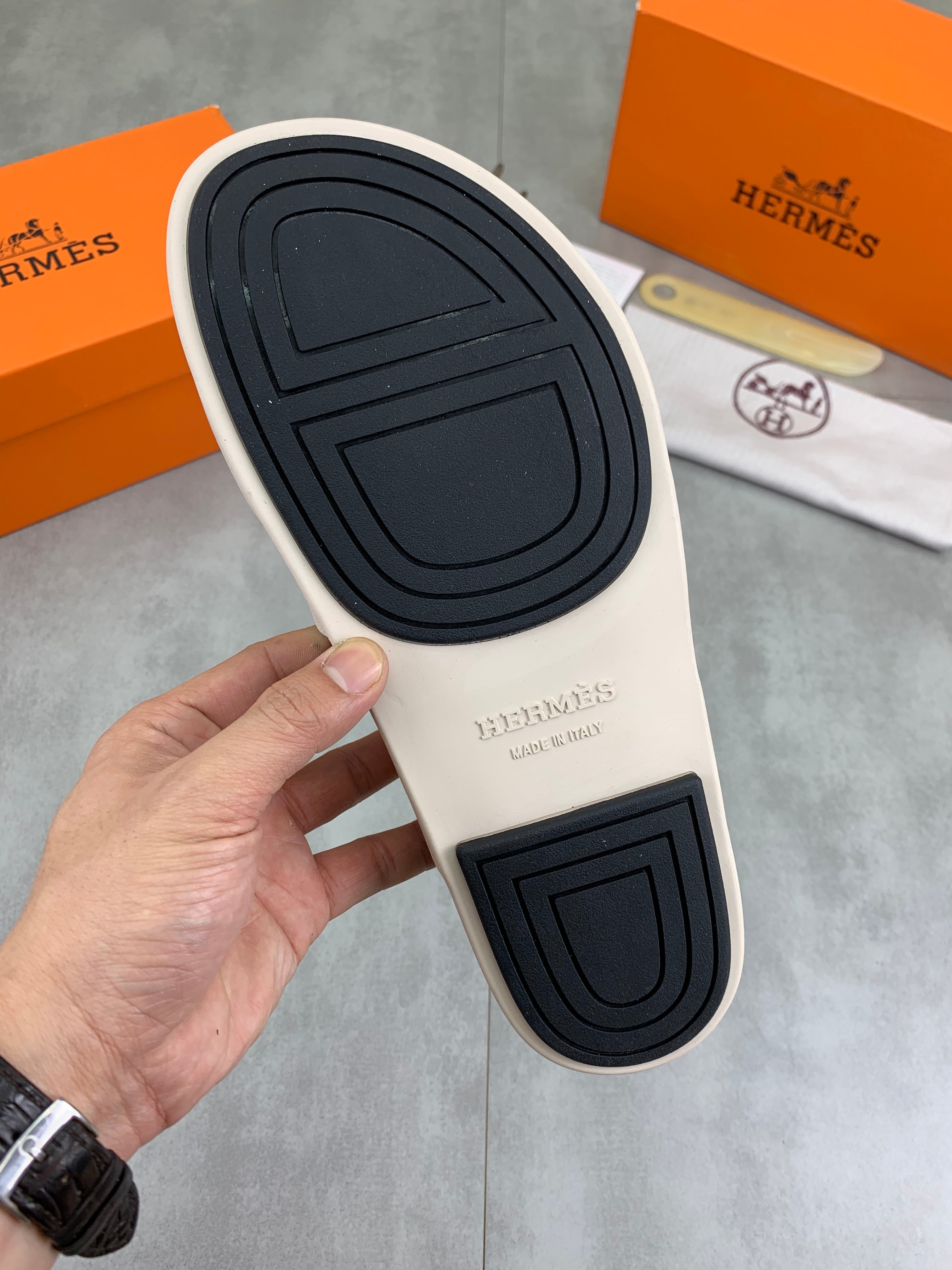 HM Men's Junior Sandal Black White Calfskin 643241
