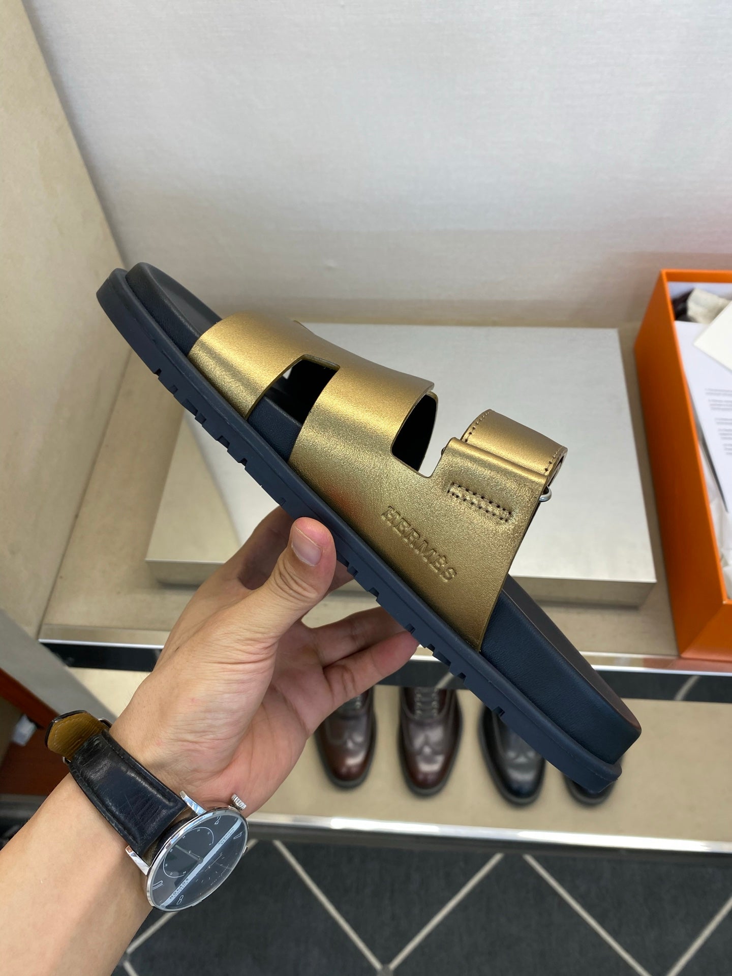 HM Men's Chypre Sandals Gold Calfskin 647574