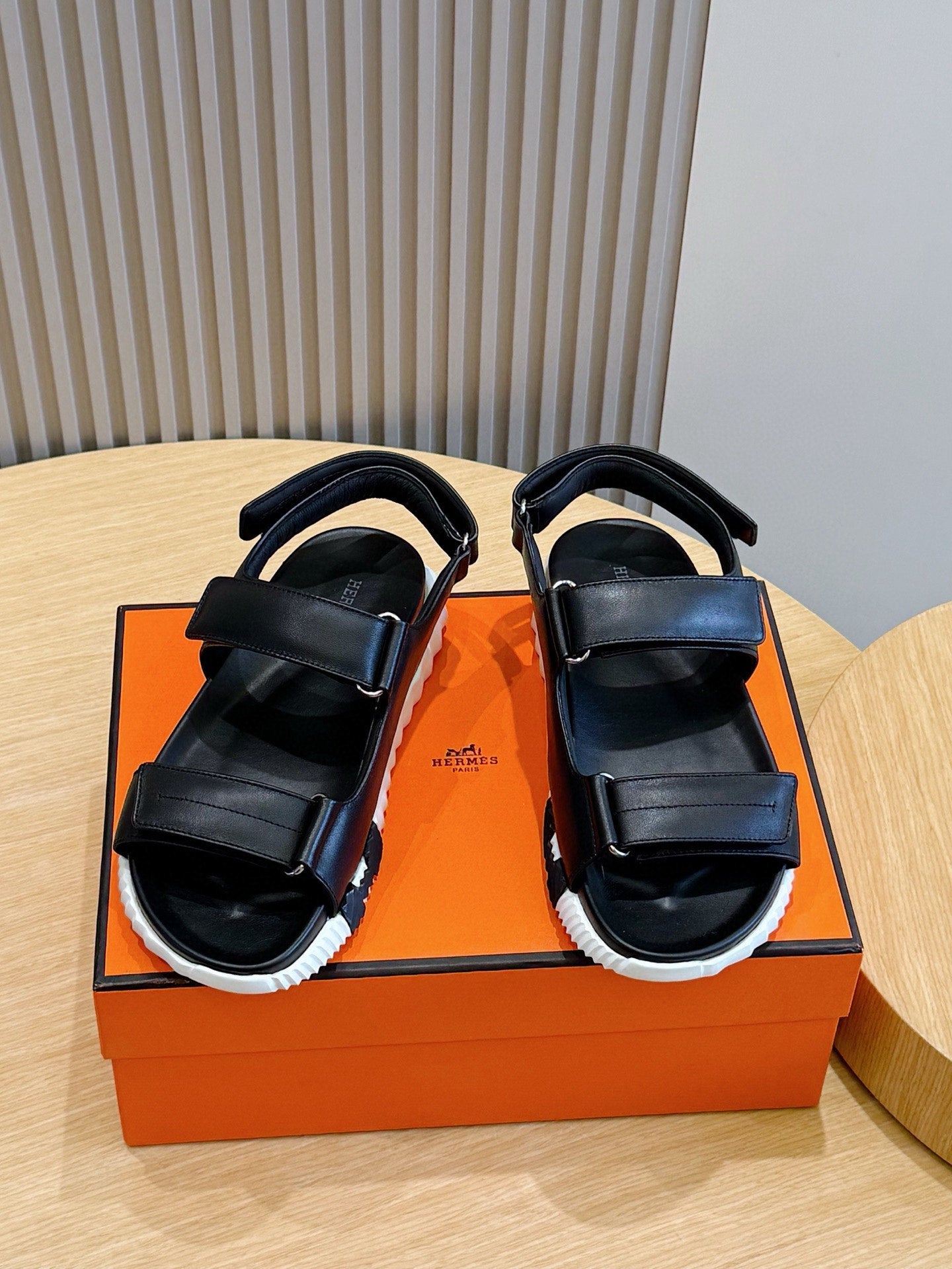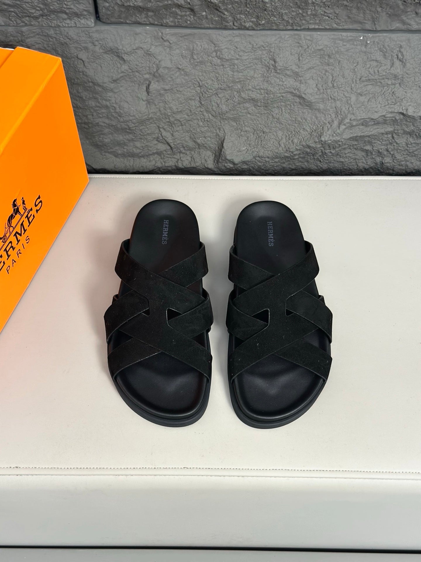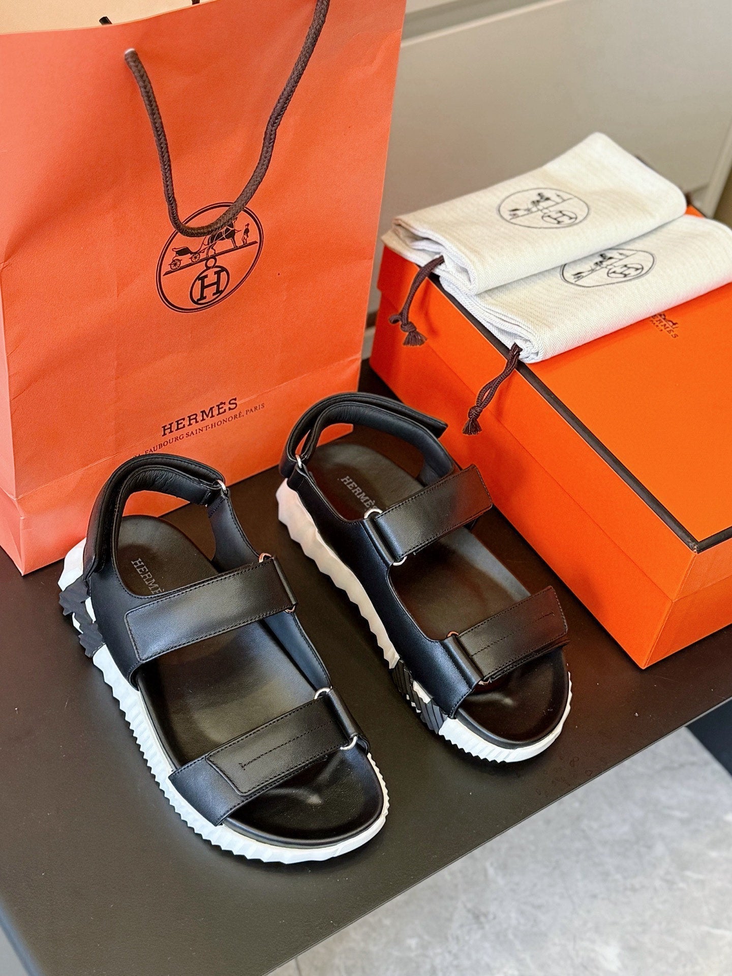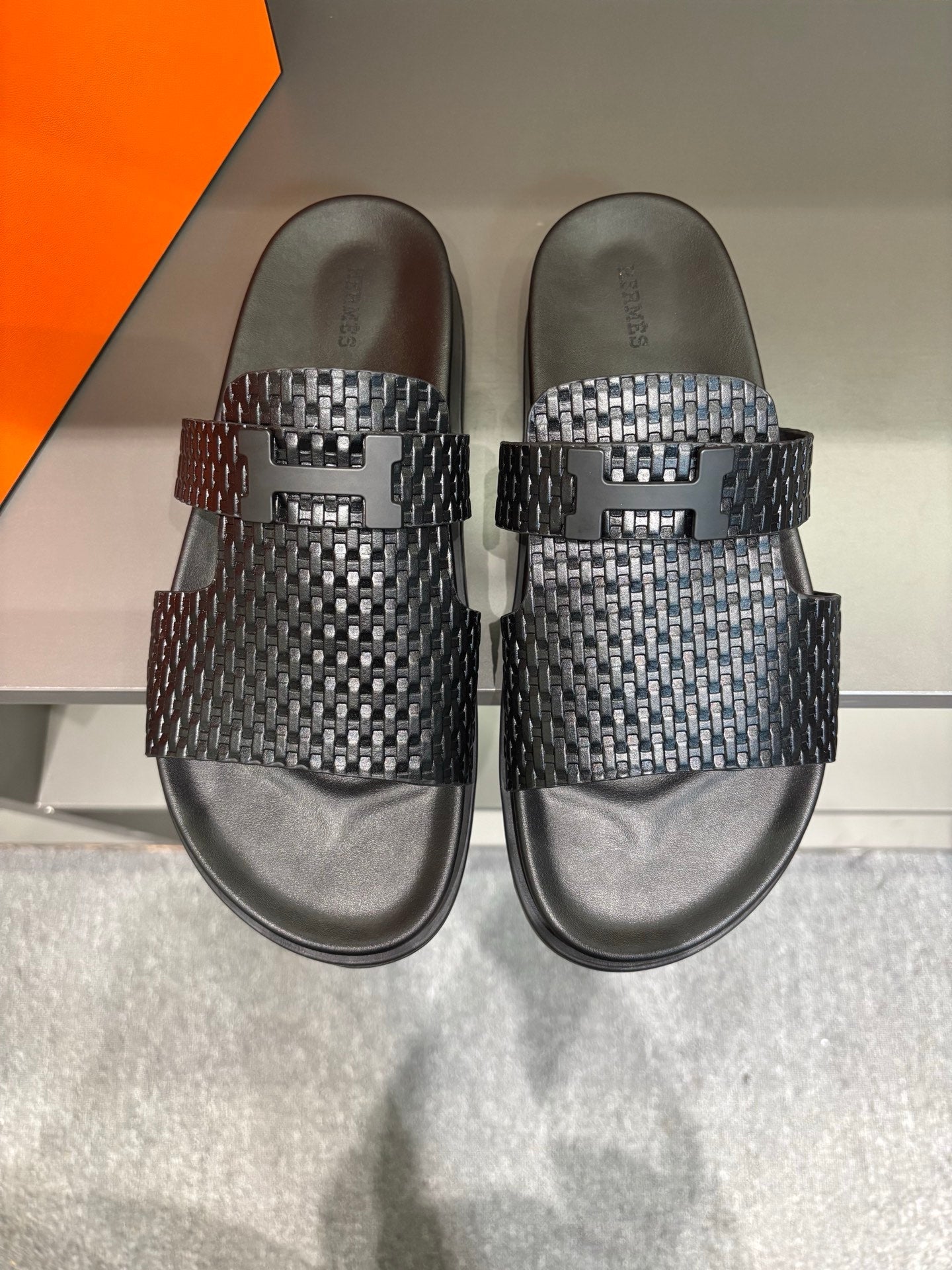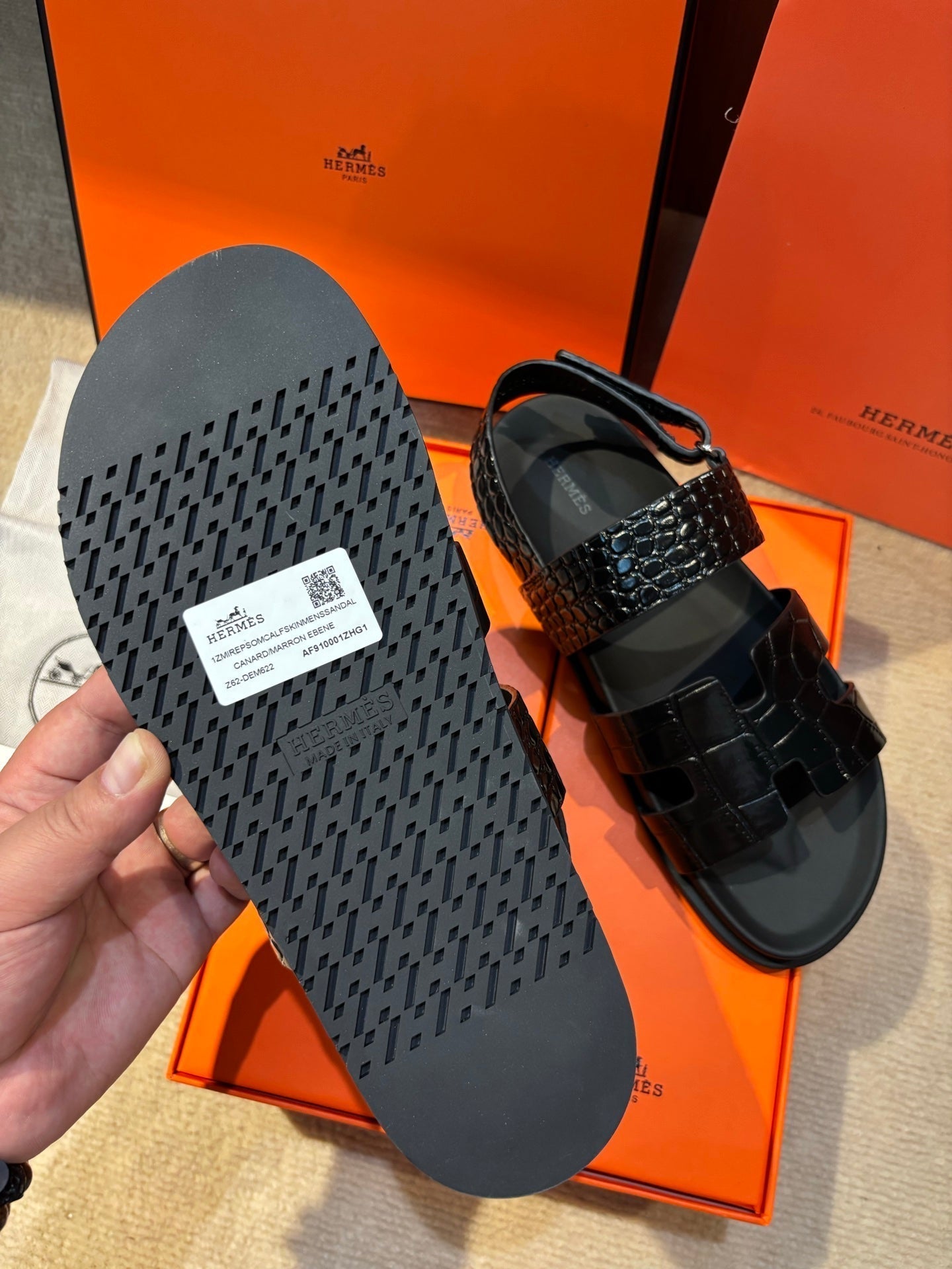 HM Men's 25 Chypre Sandals Black Calfskin 673762