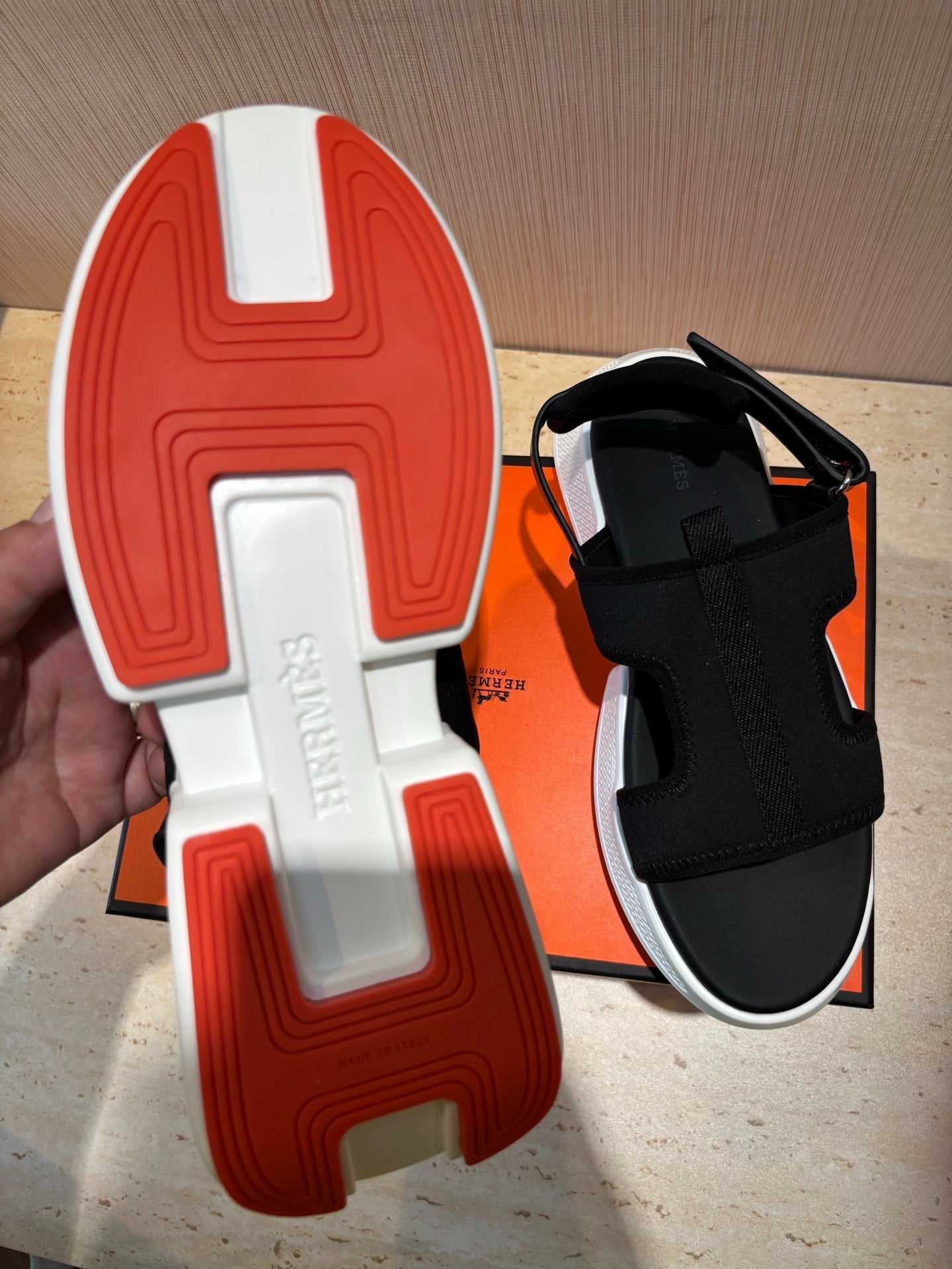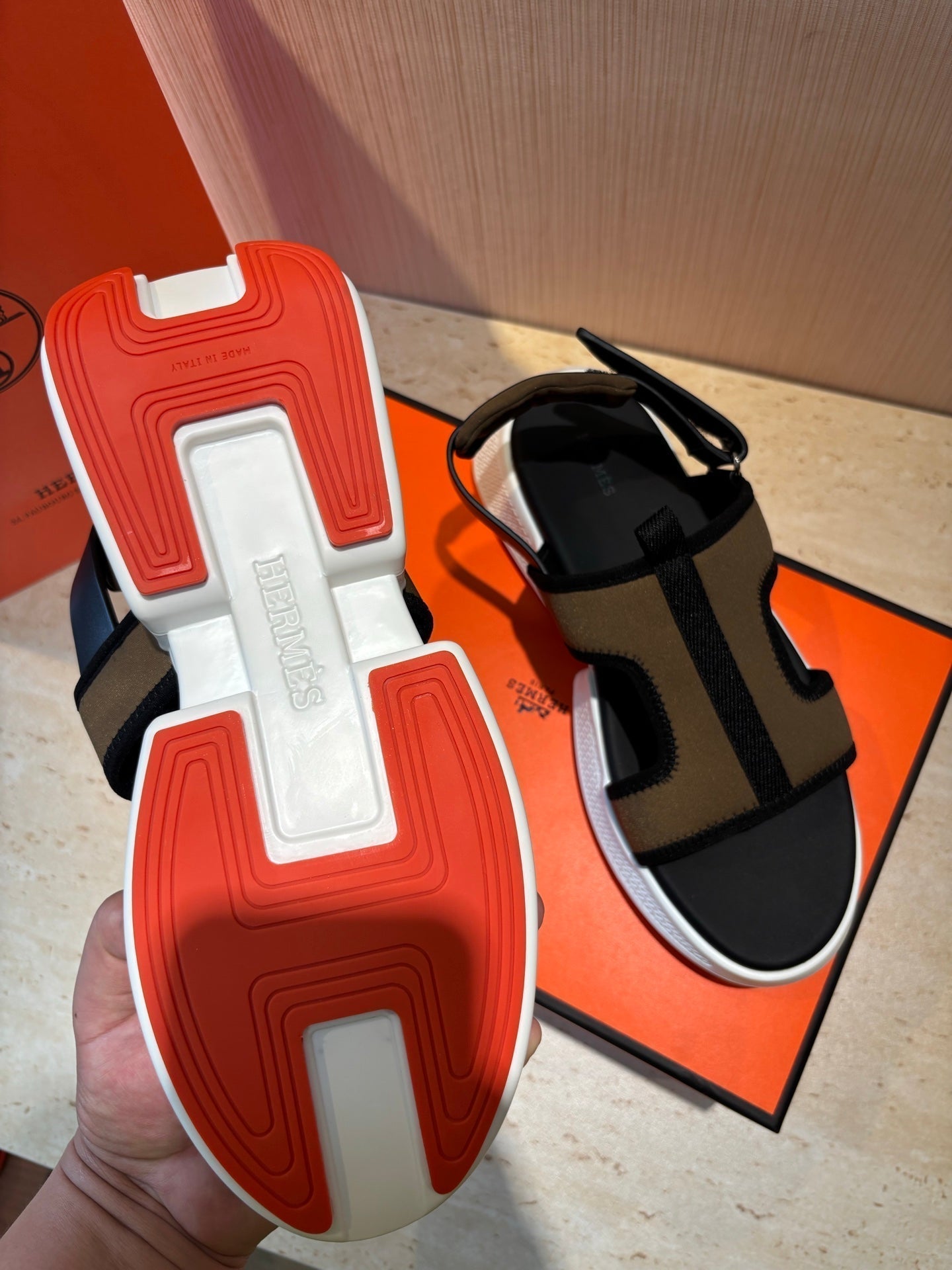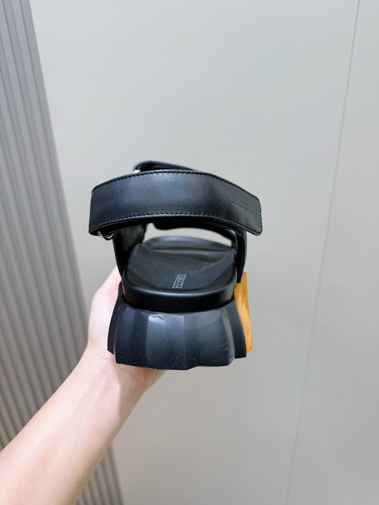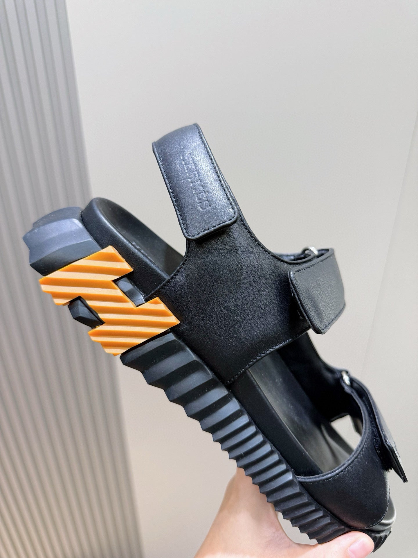 HM Men's Junior Sandal Black Orange Calfskin 643235