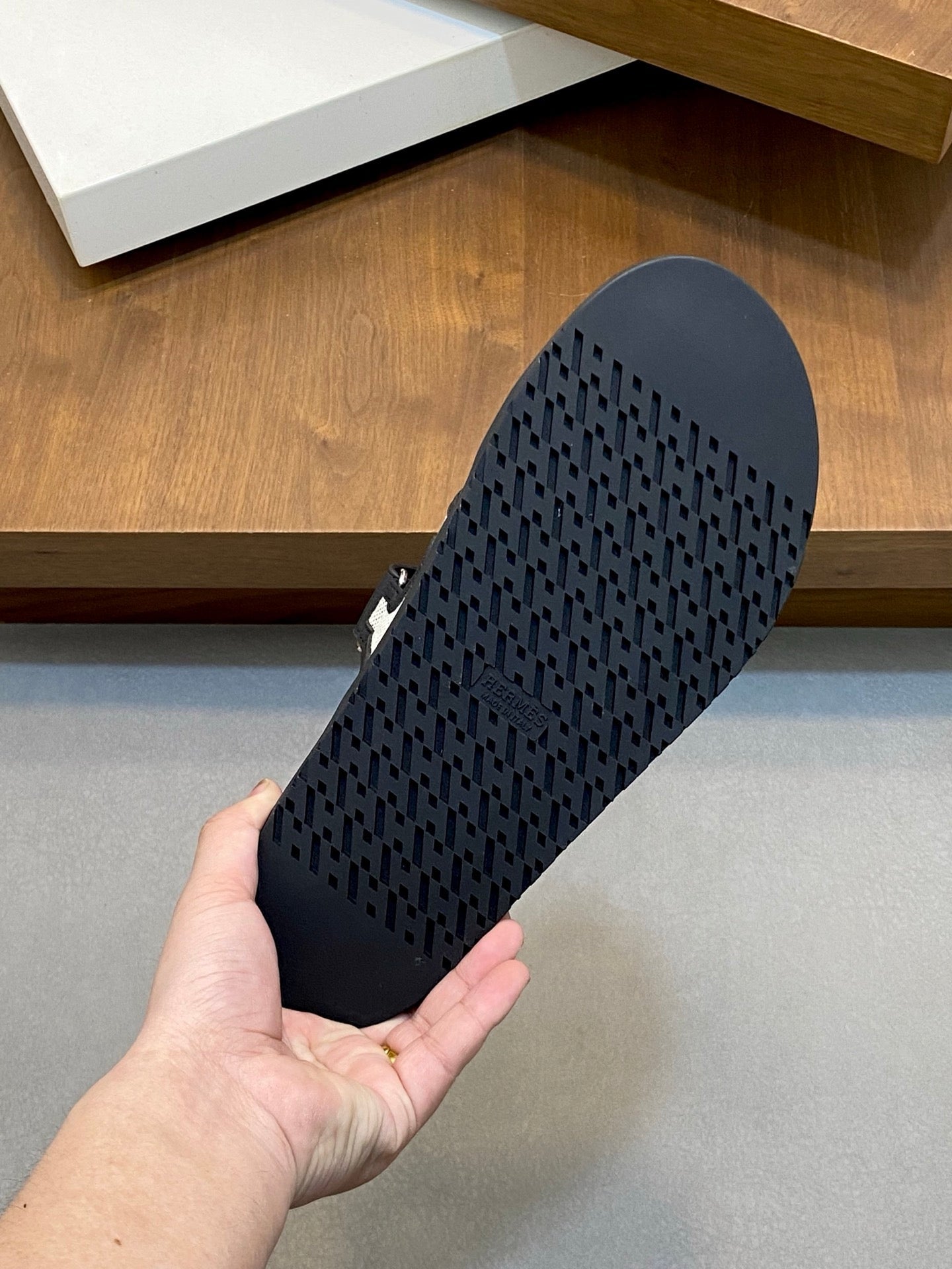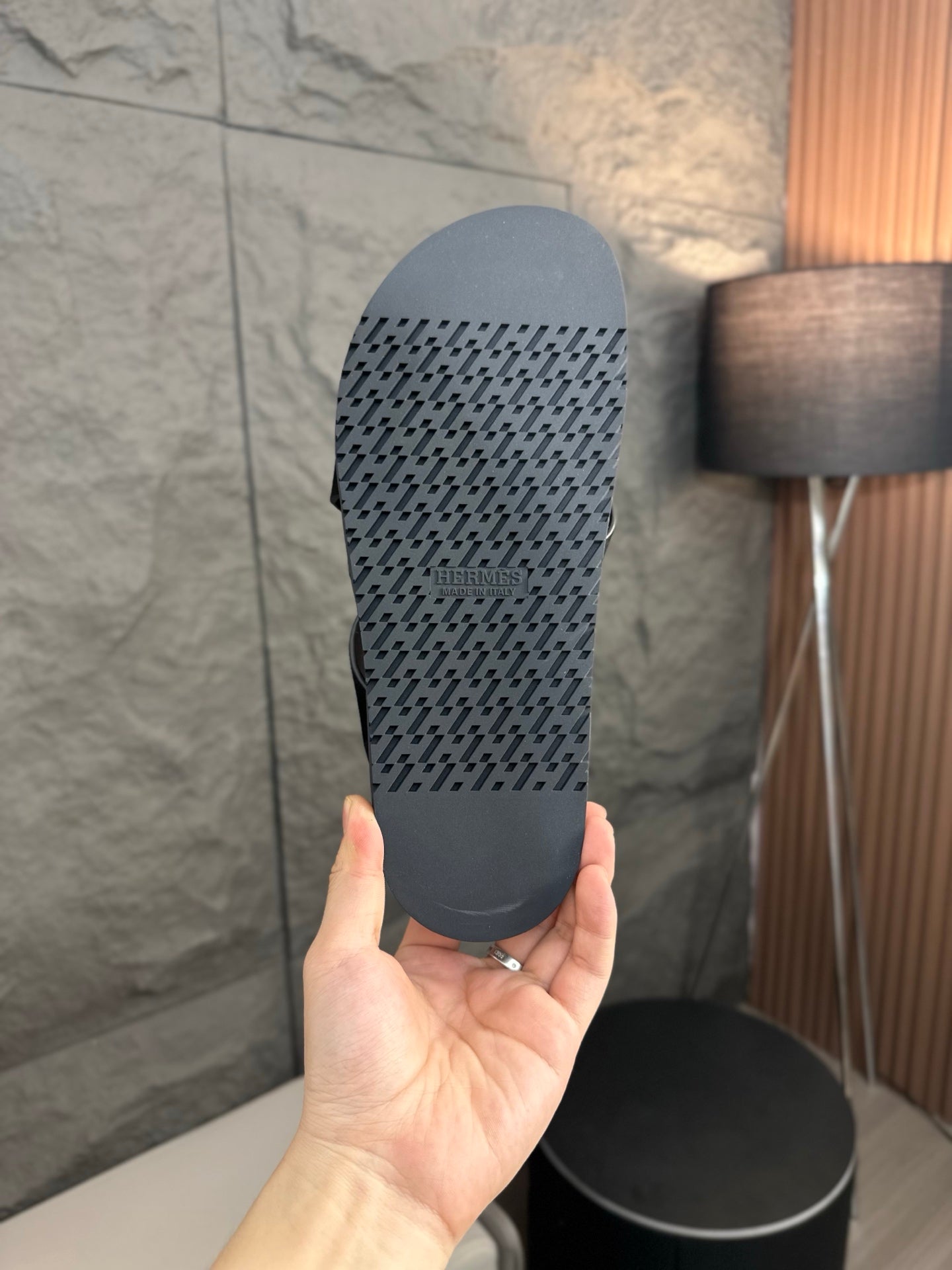 HM Men's Thong Sandals Black Rubber Sheepskin 561664