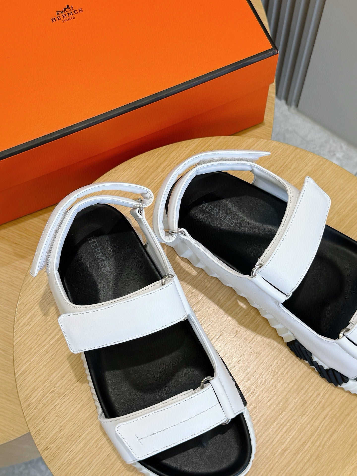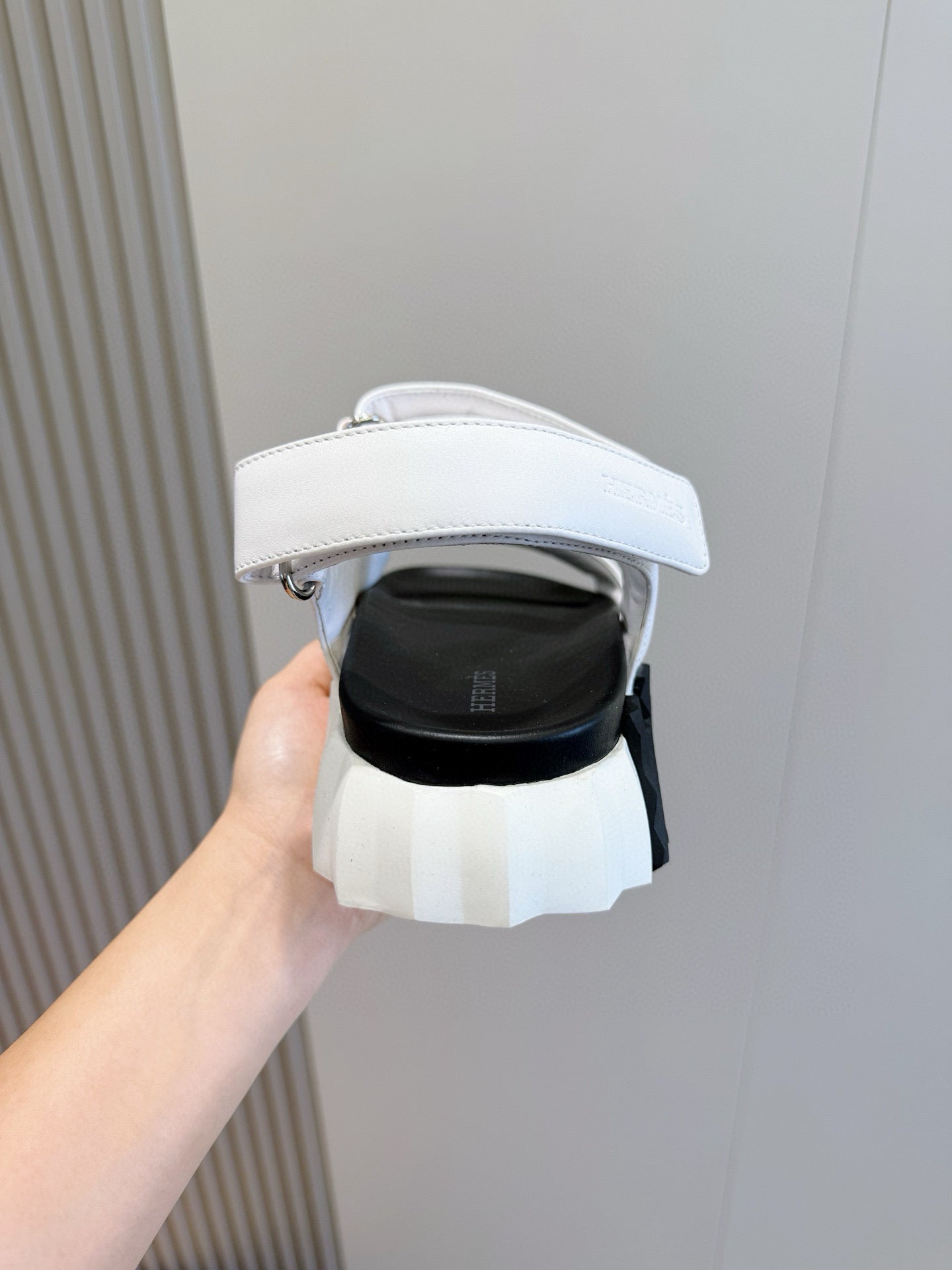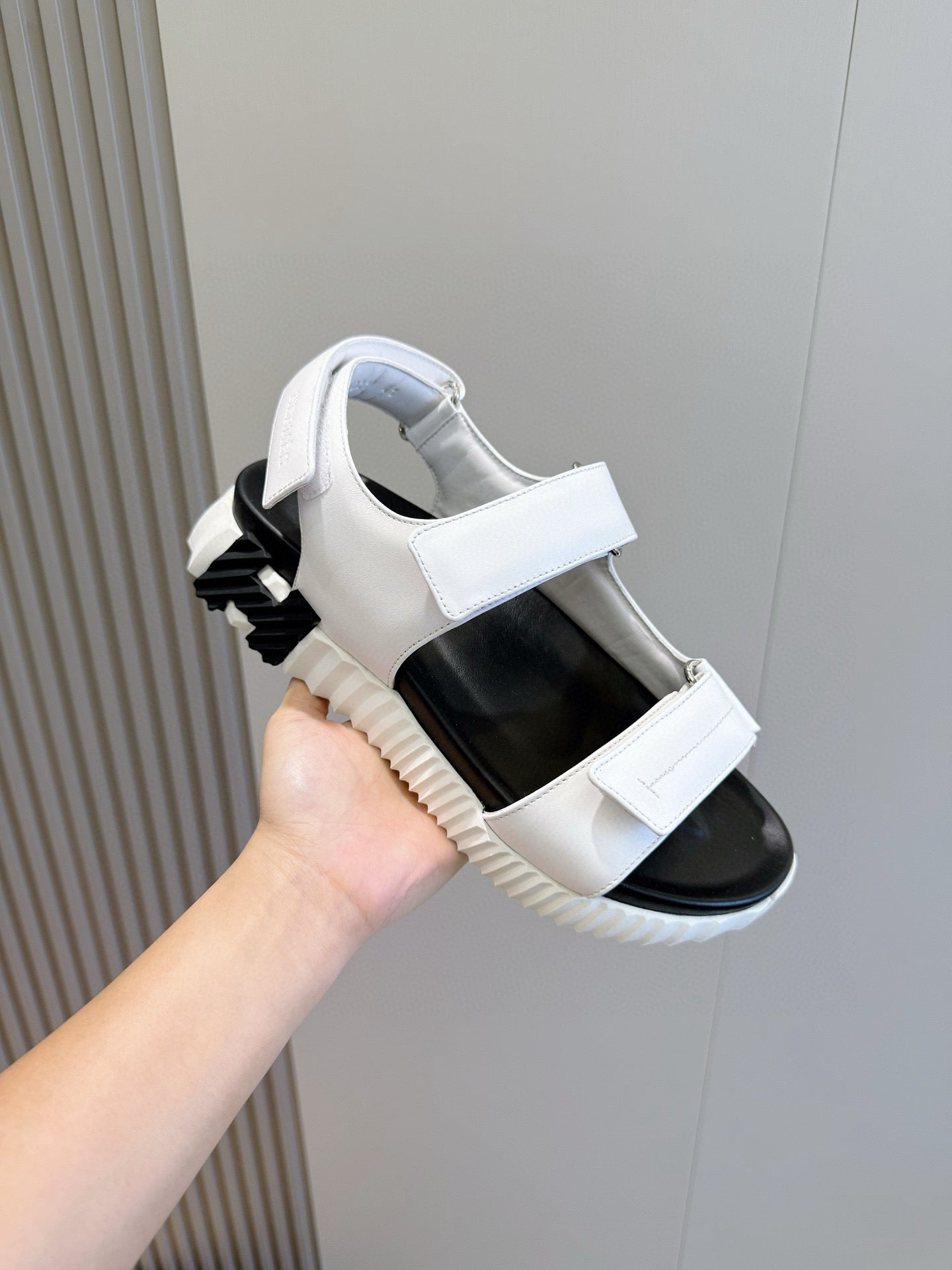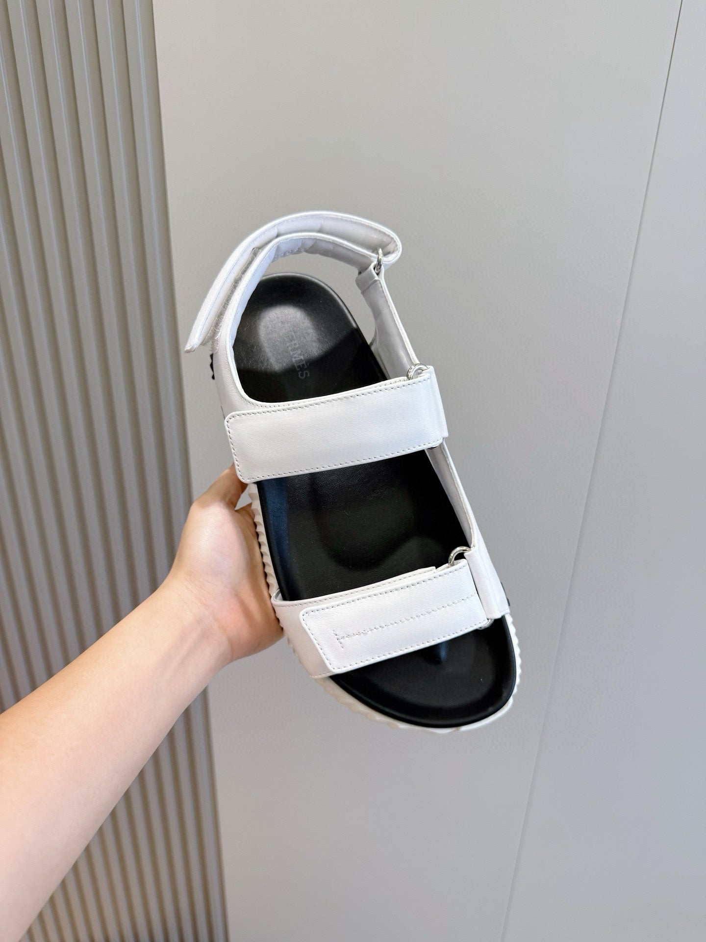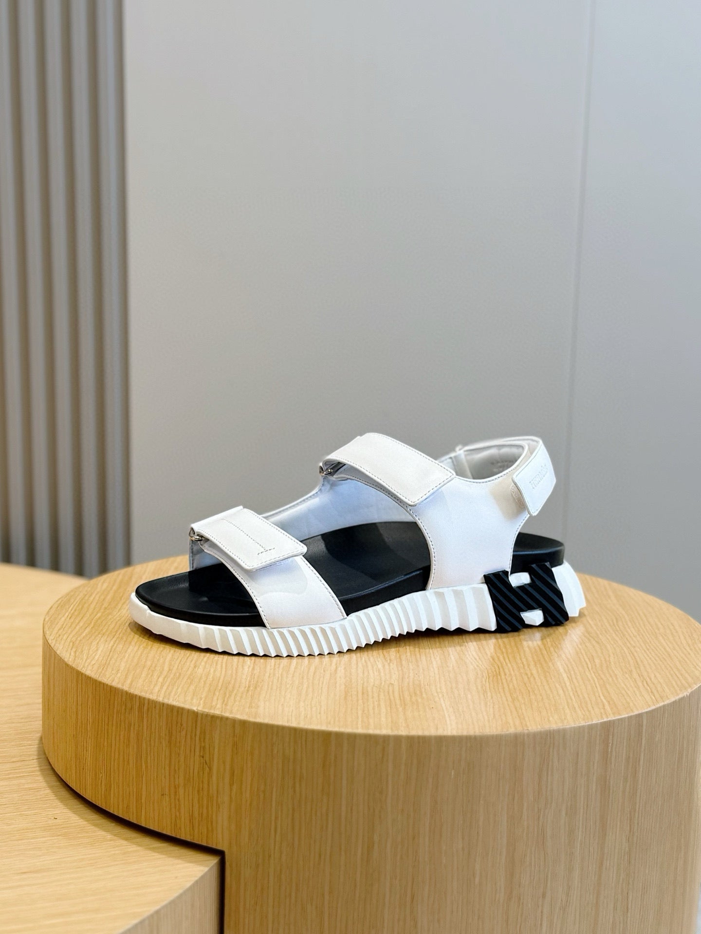 HM Men's Chypre Sandals White Black Cowhide 642697