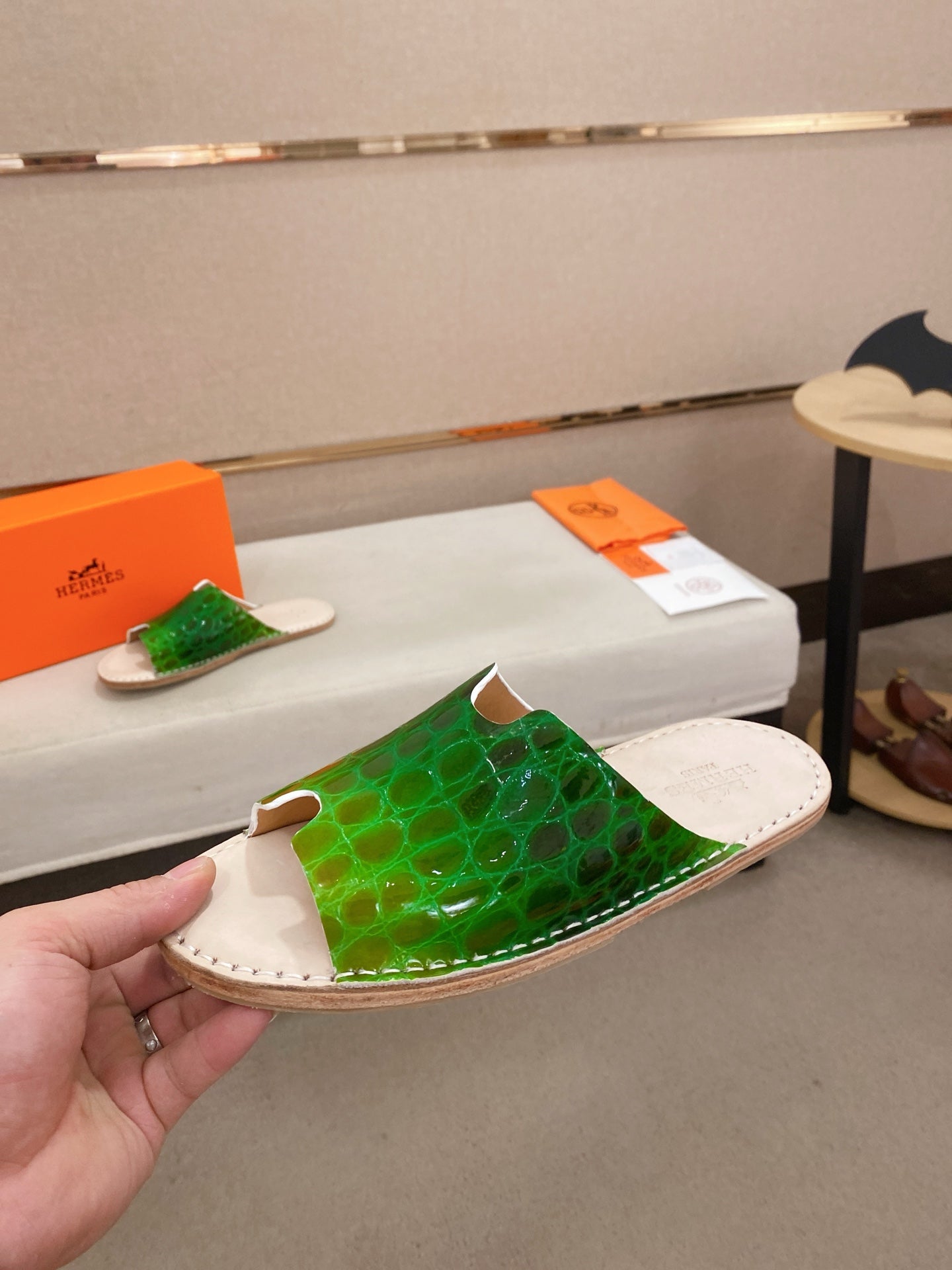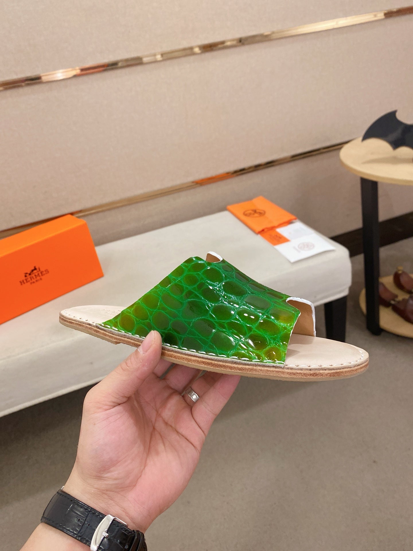 HM Men's Slide Green Cowhide 645105