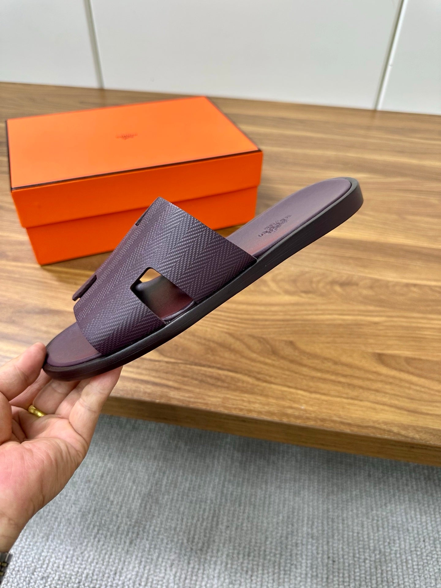 HM Men's Izmir Slide Sandals Purple Calfskin 672023