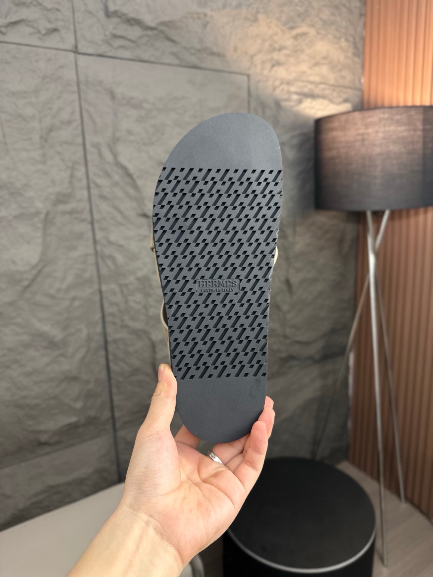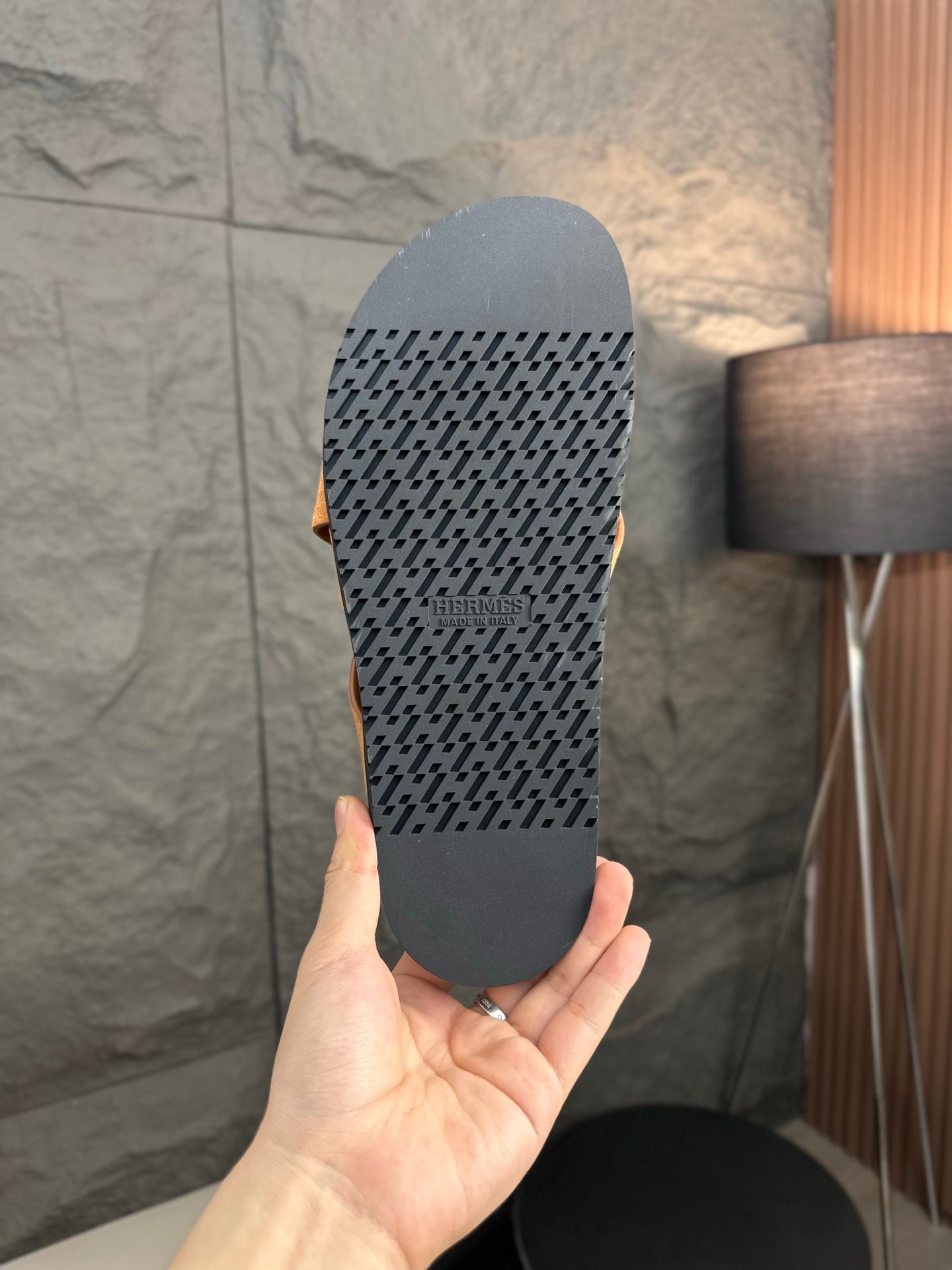 HM Men's Thong Sandals Brown Rubber Sheepskin 561669