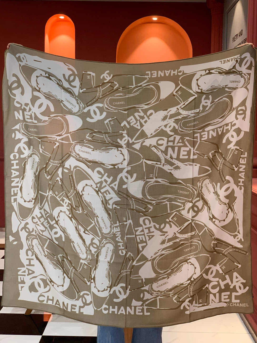 CC 25 Reversible Scarf 135cm Beige White Cashmere 970902
