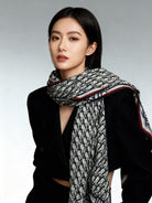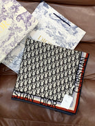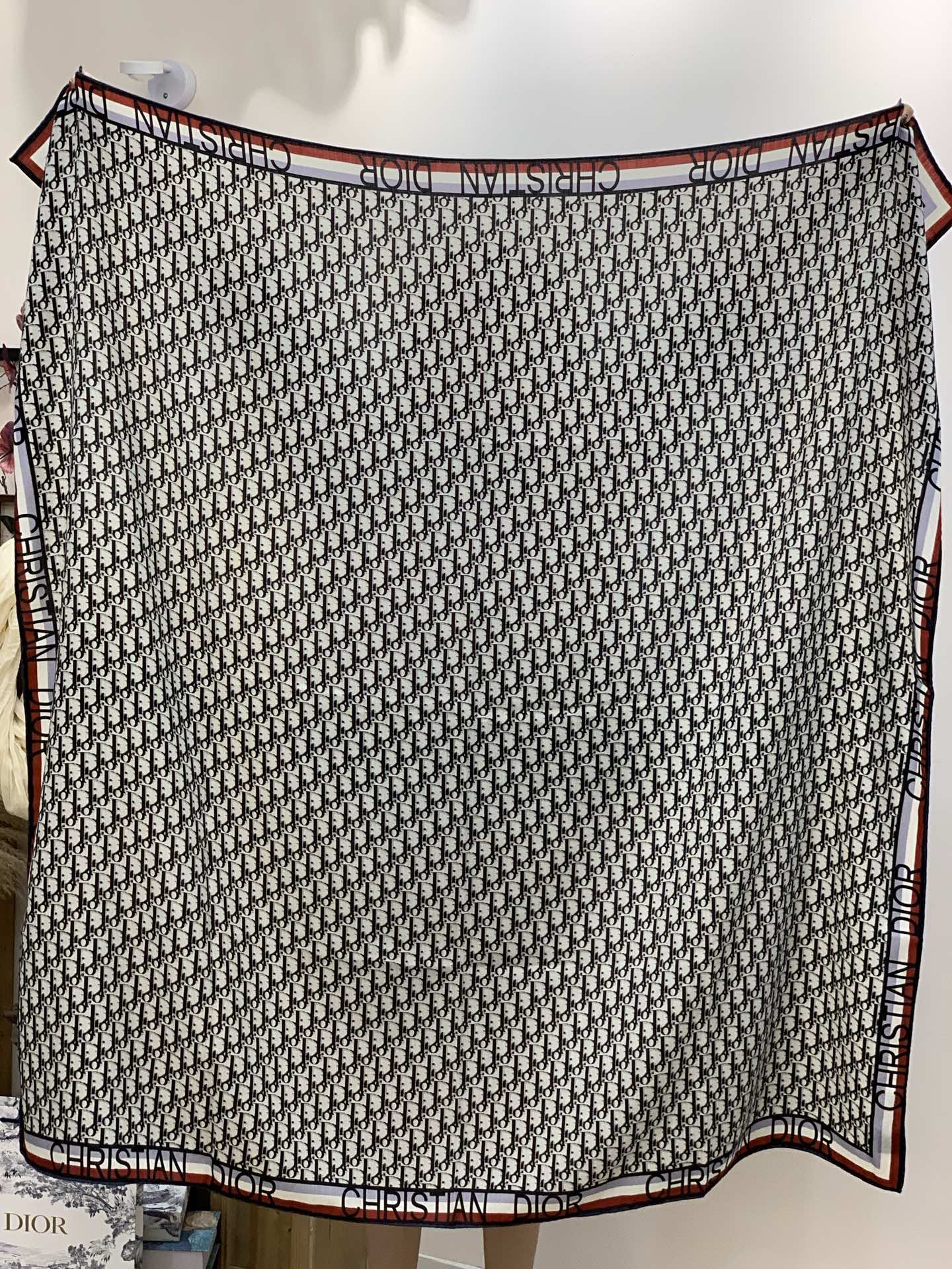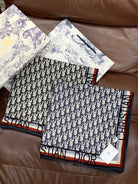 CD Monogram Scarf 140CM Dark Blue Cream Cashmere 293188