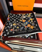 LV Double-Sided 140cm Black Colorful Silk Cashmere 967343