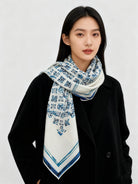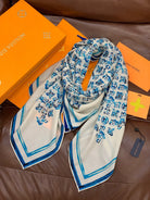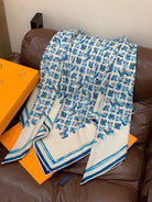 LV Double-Sided Shawl Scarf 135cm Ivory Blue Cashmere 968793