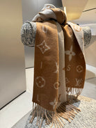 LV Reykjavik Scarf 220cm Brown Beige Cashmere 967214