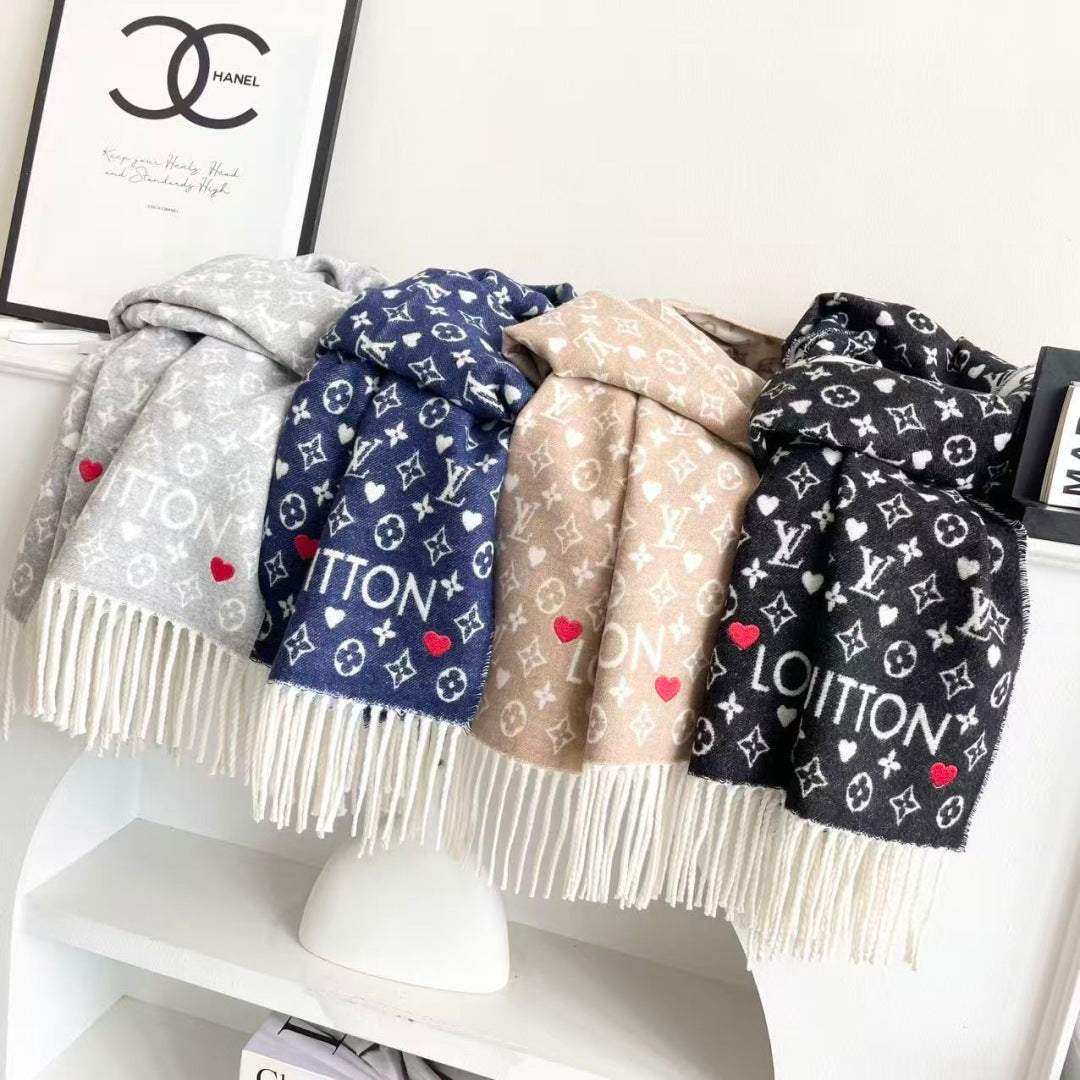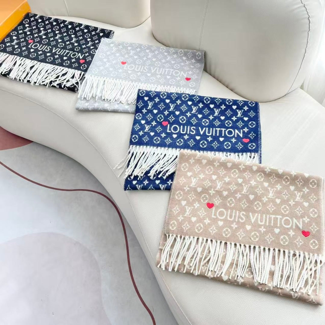 LV Reykjavik Scarf 220cm Brown Beige Cashmere 967214