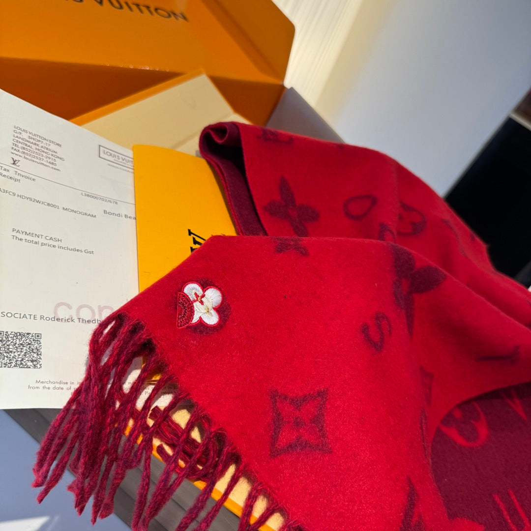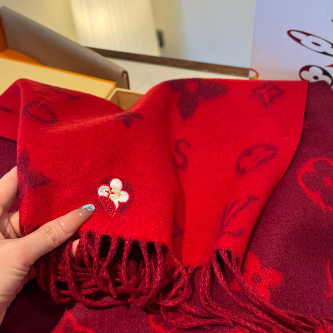 LV Reykjavik Scarf 220cm Red Cashmere 973487